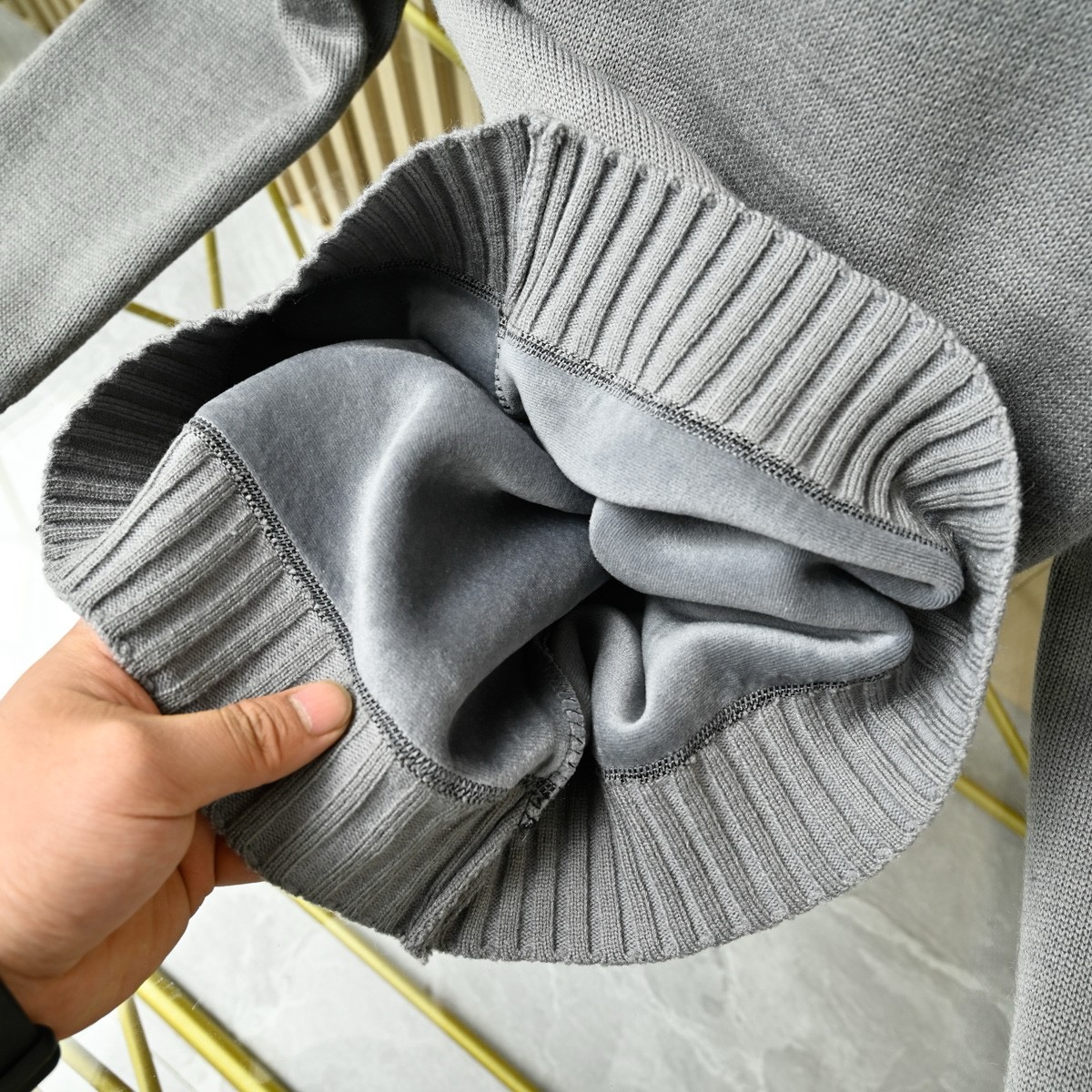普家三角标新款男士高领加绒加厚一体绒针织毛衣打底衫