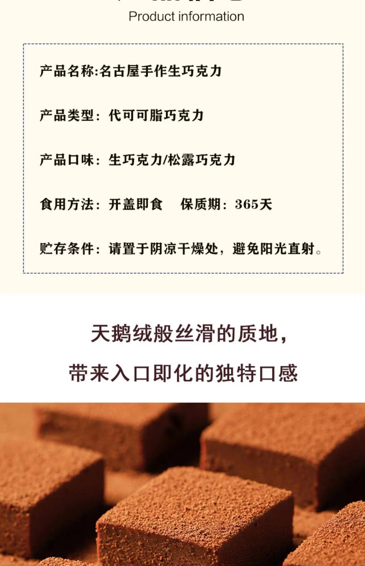 良品生活名古屋生巧克力168g盒装巧克力松露