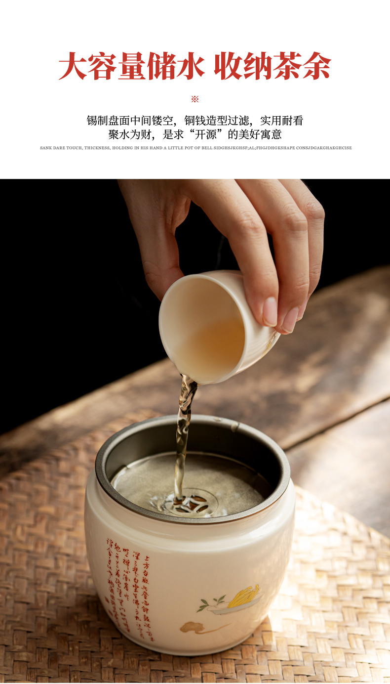 永利汇陶瓷建水日式过滤茶渣缸家用办公茶水缸茶盂功夫茶道茶海