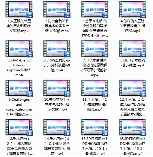 本U盘视频完全源自授课内容,共有15个相关视频可供关节外科医生和研究生学习。清晰的学术大餐,将给您身临其境的绝佳感受。