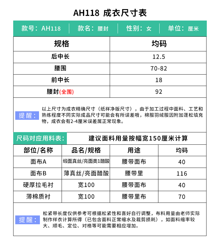 裁缝学苑AH118腰封纸样女装配裙子毛衣束腰高级感宽腰带装饰样板