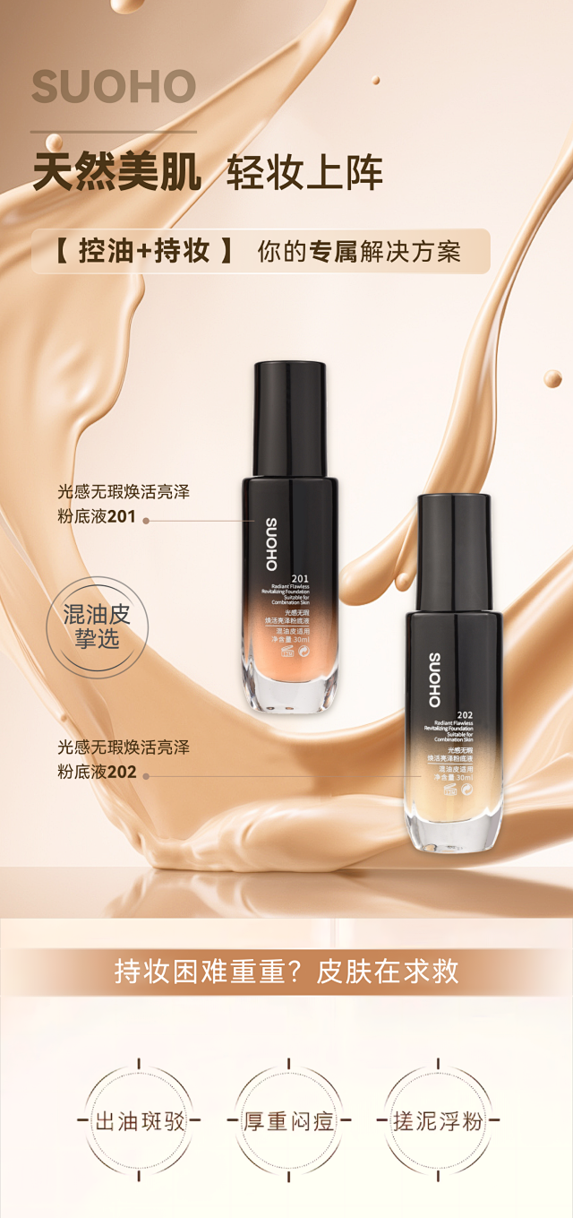 【干性皮肤/混油皮】光感无暇润泽裸感粉底液 滋润不假白 很服帖 加送土豆泥卸妆膏小样