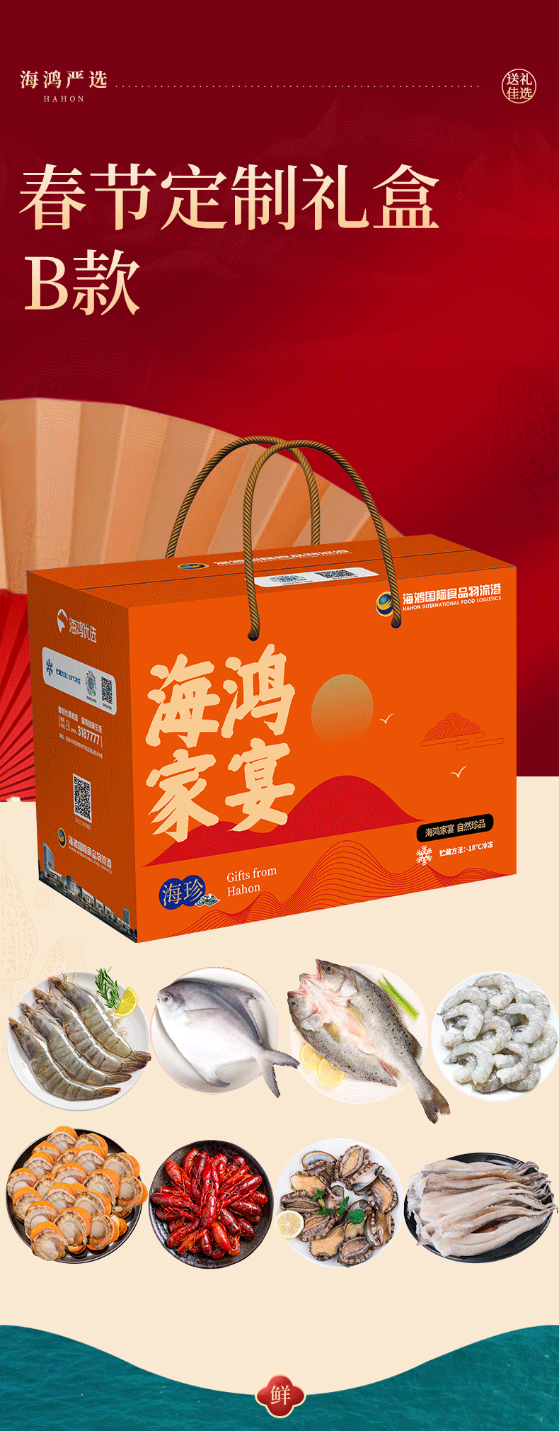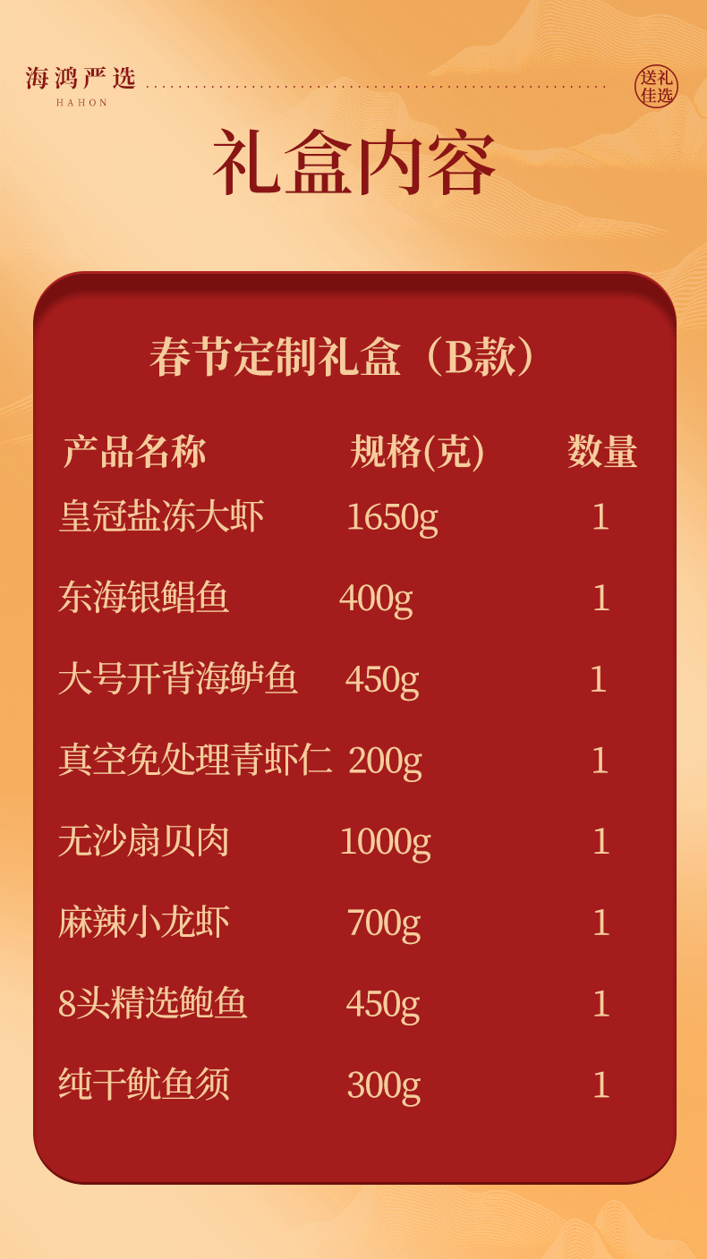 海鸿优选 新年定制礼盒B款8种海鲜食材 送礼佳品