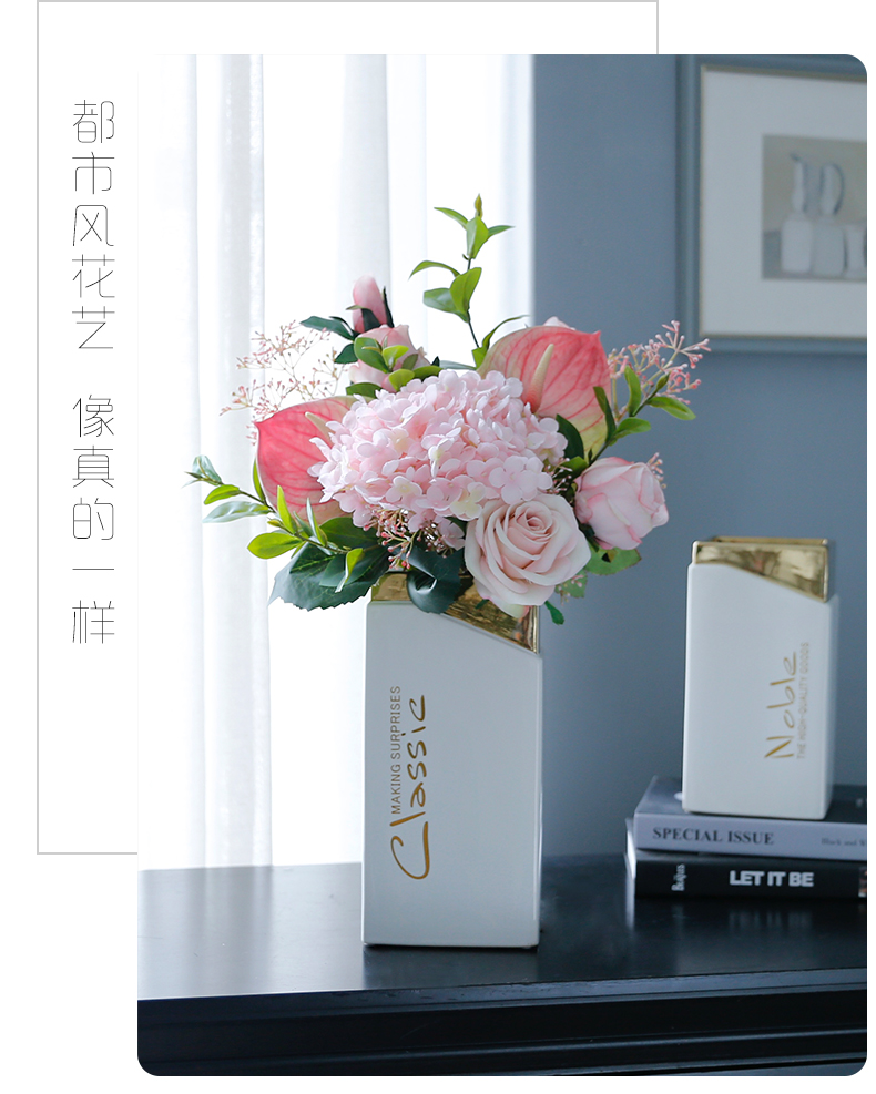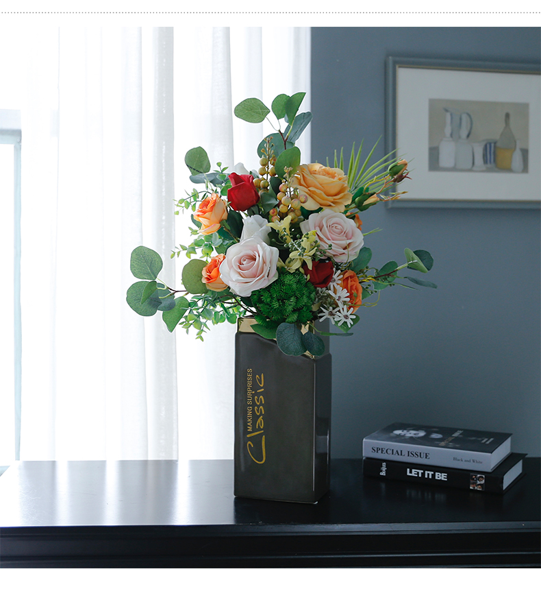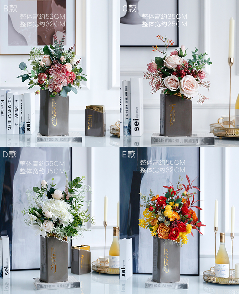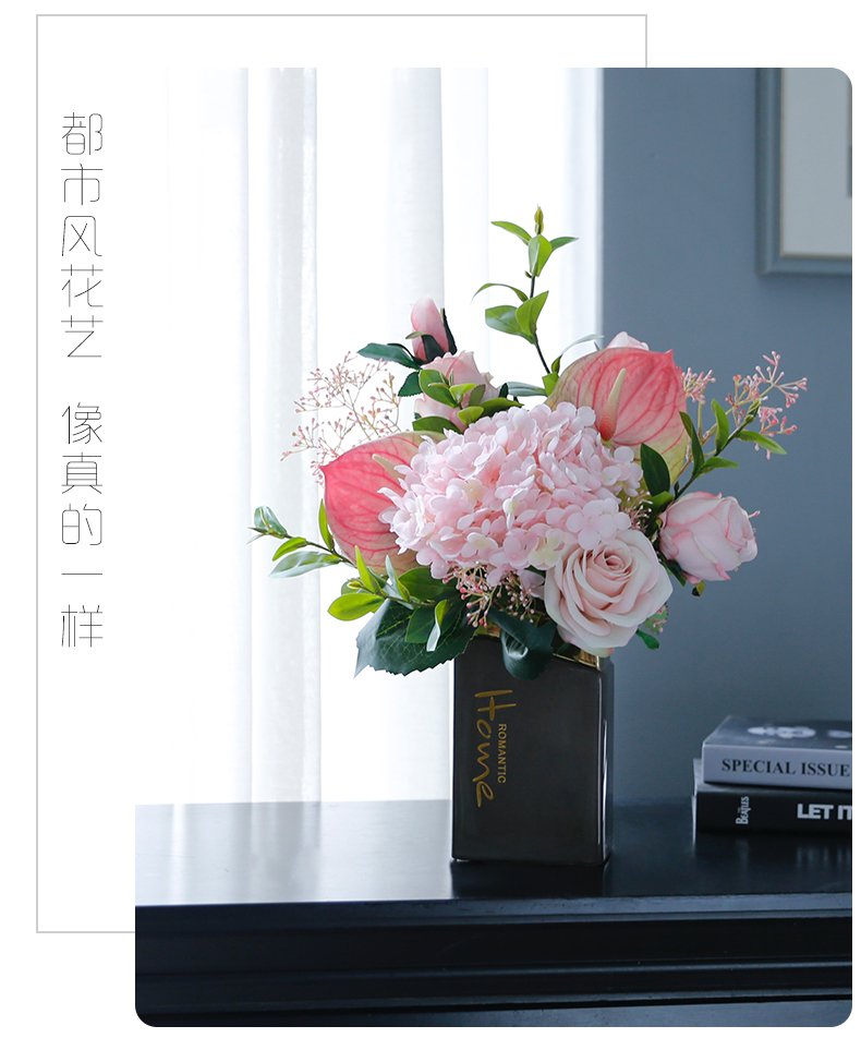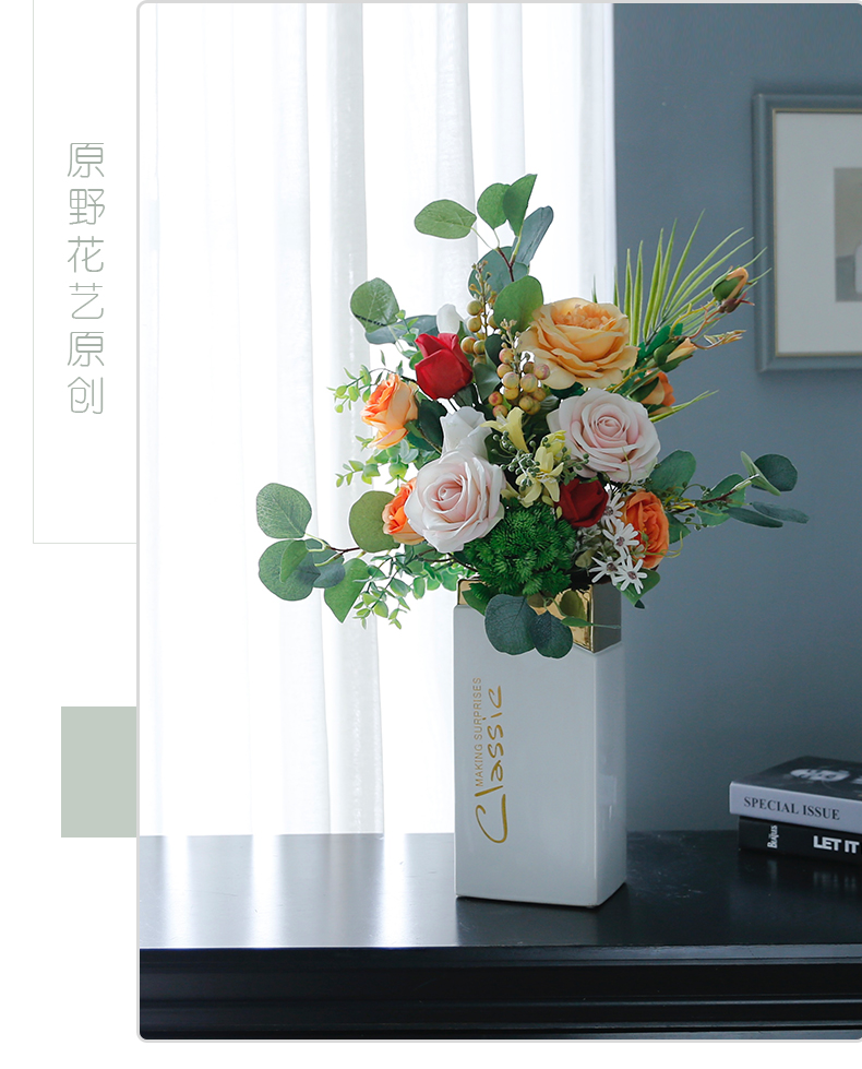 高档轻奢现代仿真花假花绢花玄关酒店客厅玄关卧室茶几摆设件装饰