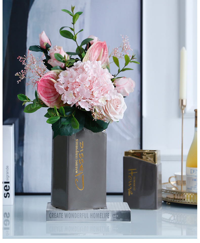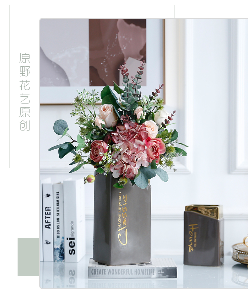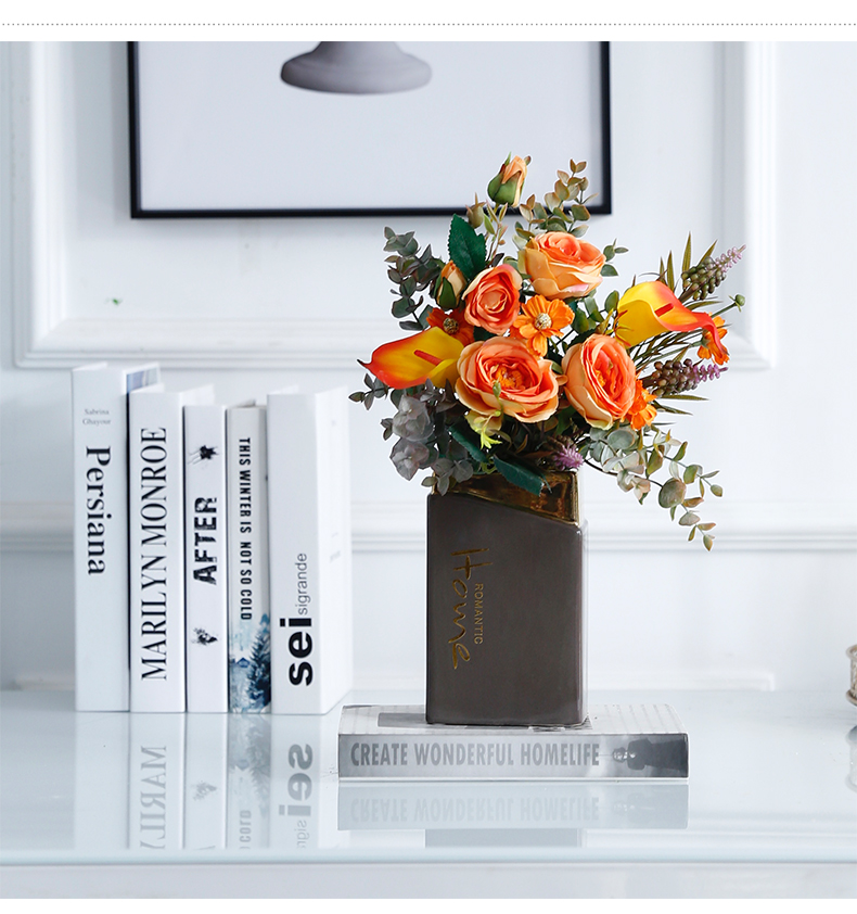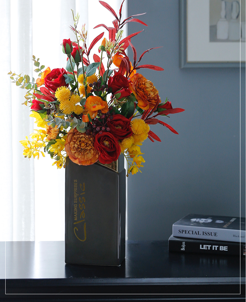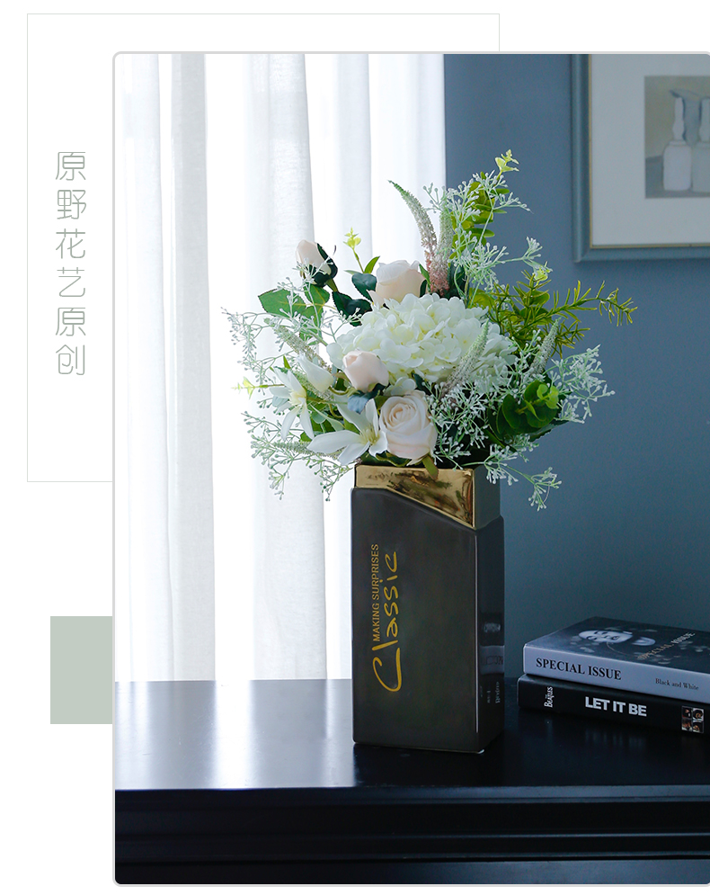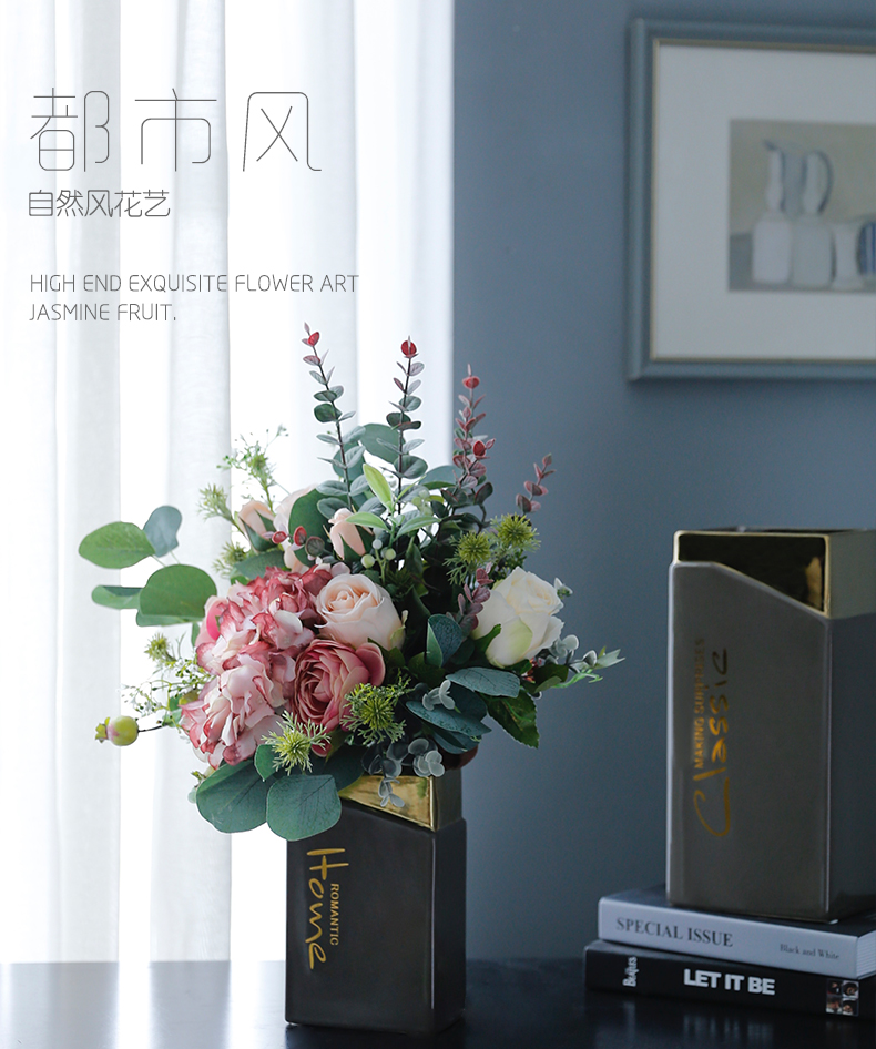 高档轻奢现代仿真花假花绢花玄关酒店客厅玄关卧室茶几摆设件装饰
