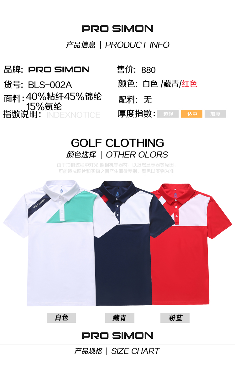 BLS-002A(PROSIMON高尔夫男款春夏拼接短袖翻领Polo衫)