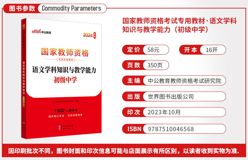 教师资格证教资初中语文中公2024国家教师资格考试专用教材语文学科知识与教学能力(初级中学)(中公教育教师资格考试研究院)