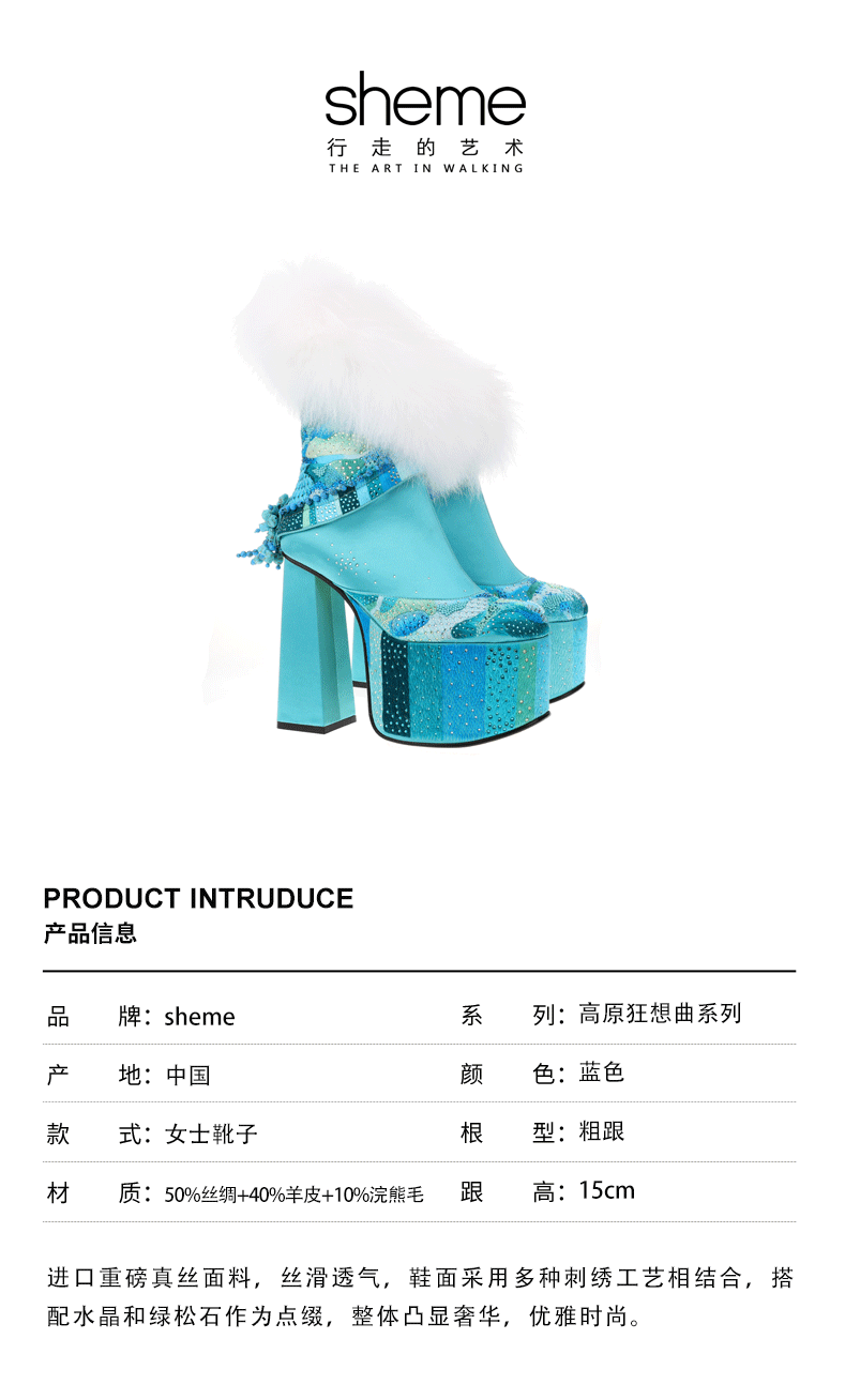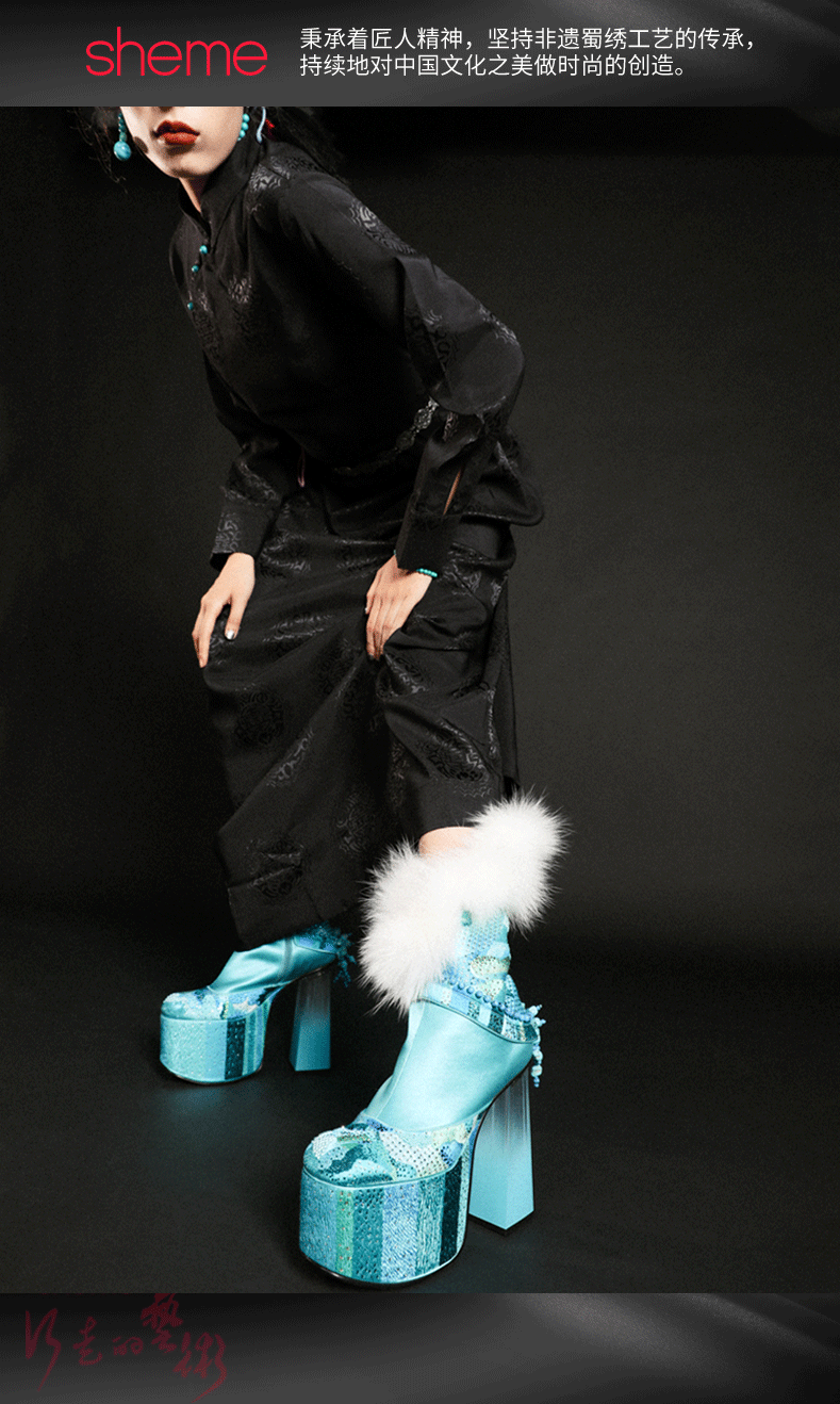 sheme藏族高原狂想曲雪域之巅全球限量版时尚奢华新中式女士短靴可定制
