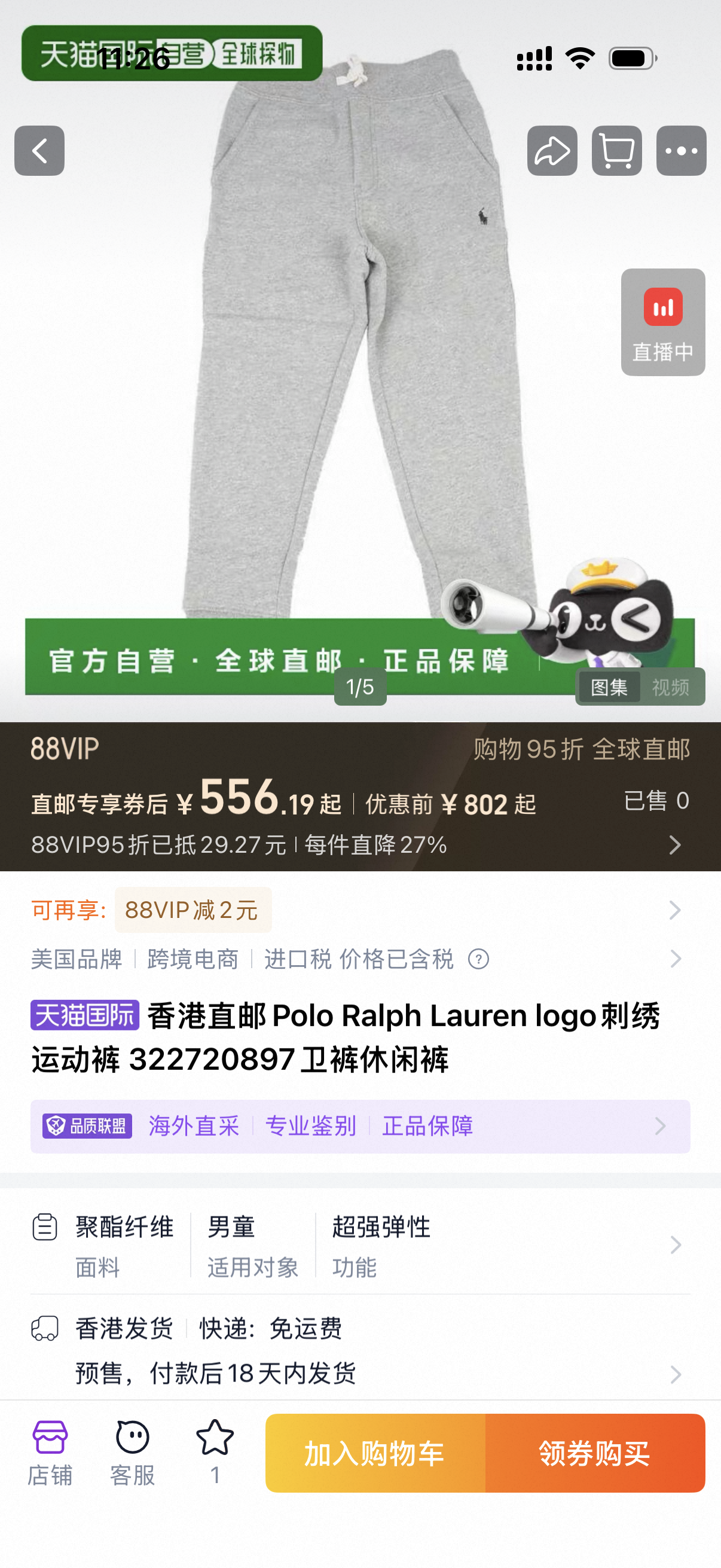 三色! Ralph Lauren(拉夫劳伦)经典小马标刺绣束脚卫裤