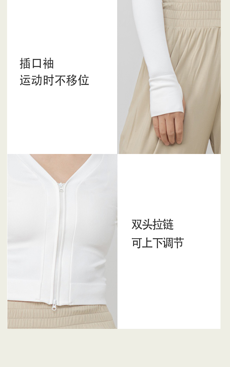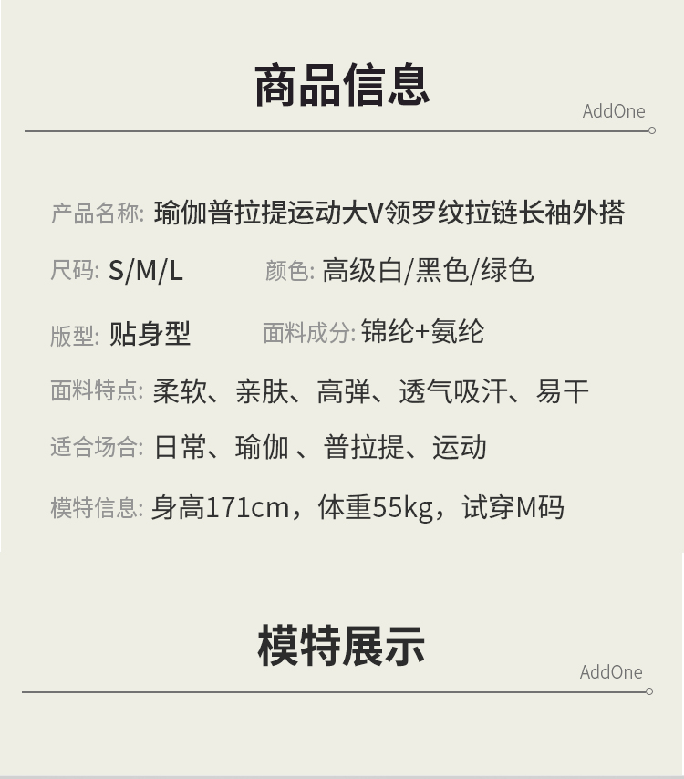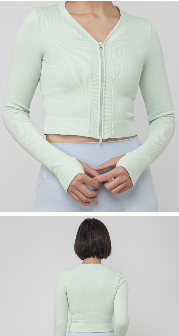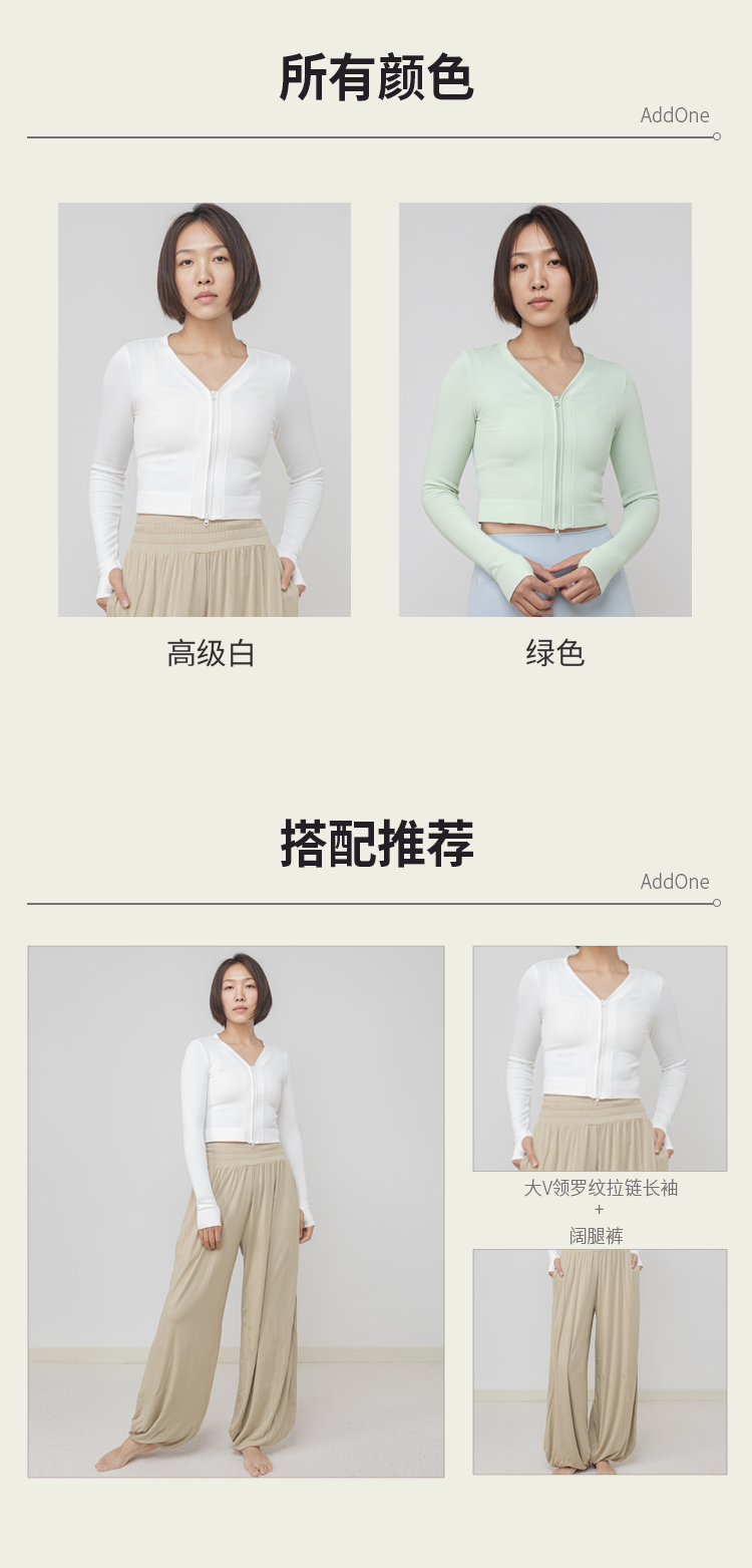 AddOne +1瑜伽普拉提运动大V领罗纹高弹短款拉链长袖外搭