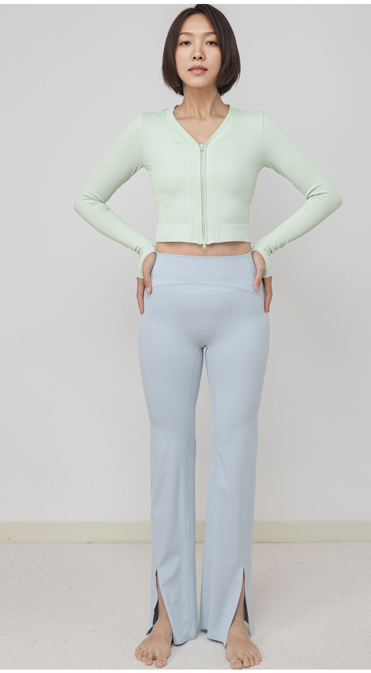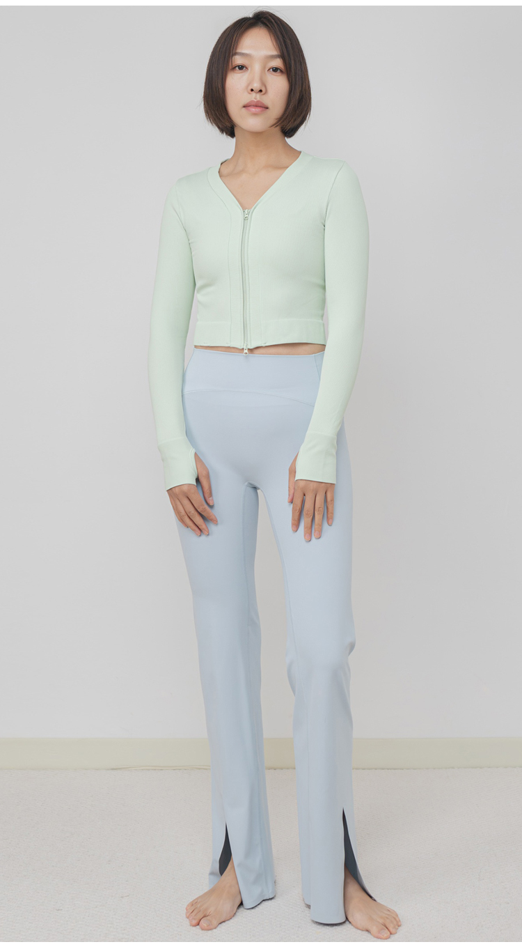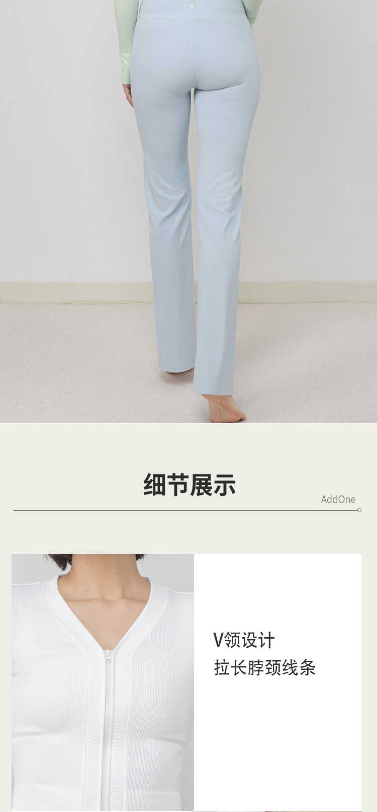 AddOne +1瑜伽普拉提运动大V领罗纹高弹短款拉链长袖外搭