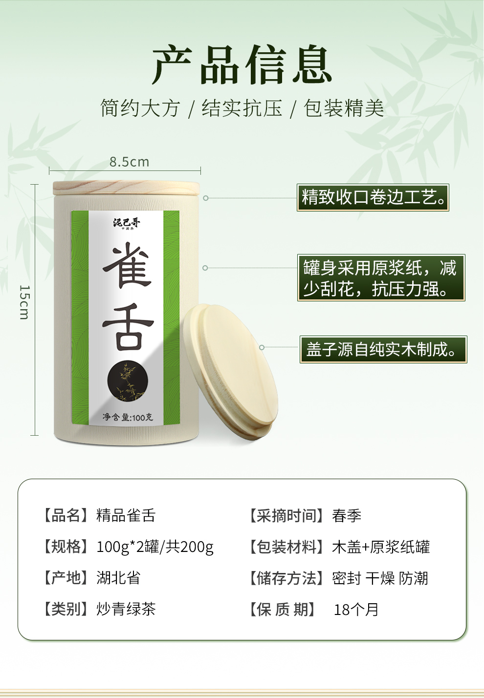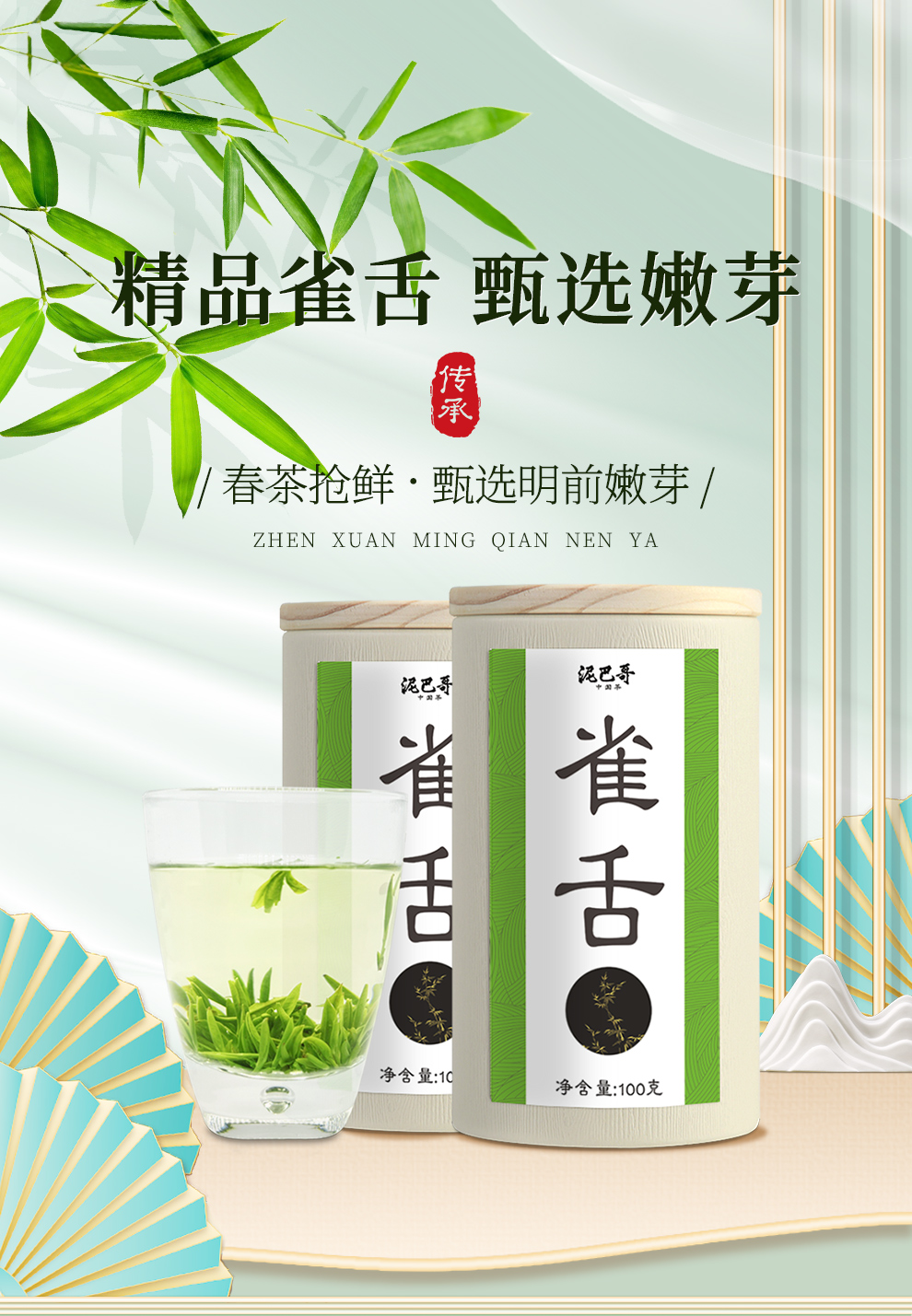 【2026新茶上市】泥巴哥精品雀舌烘青绿茶明前青叶甘露100g*2罐