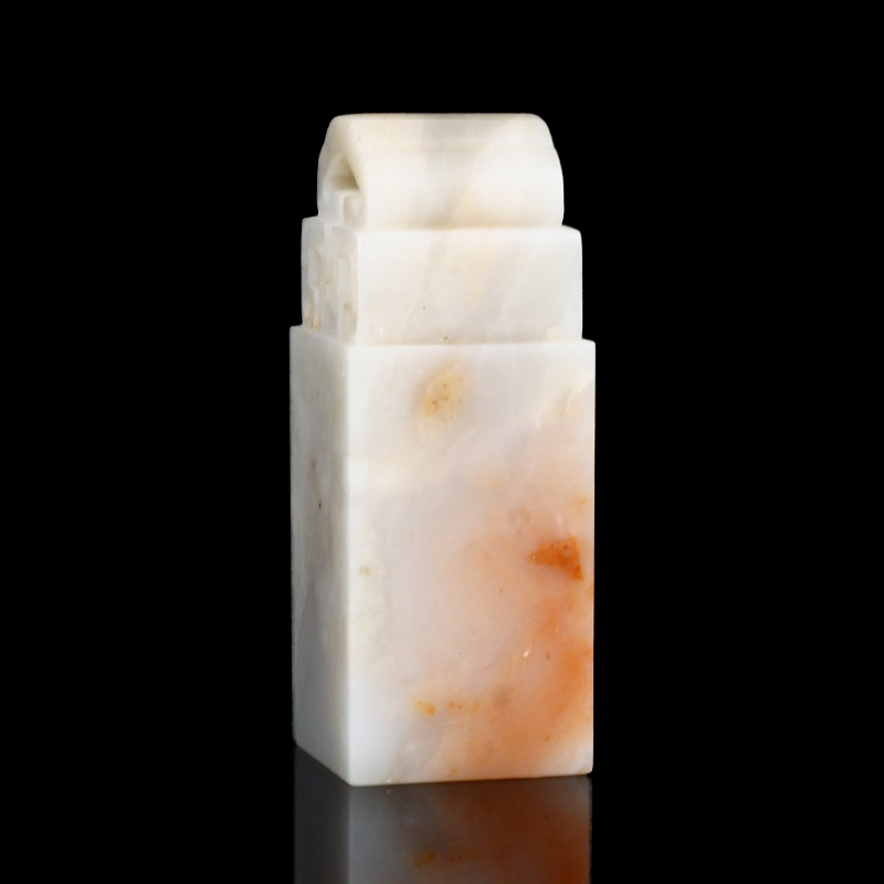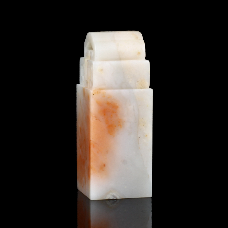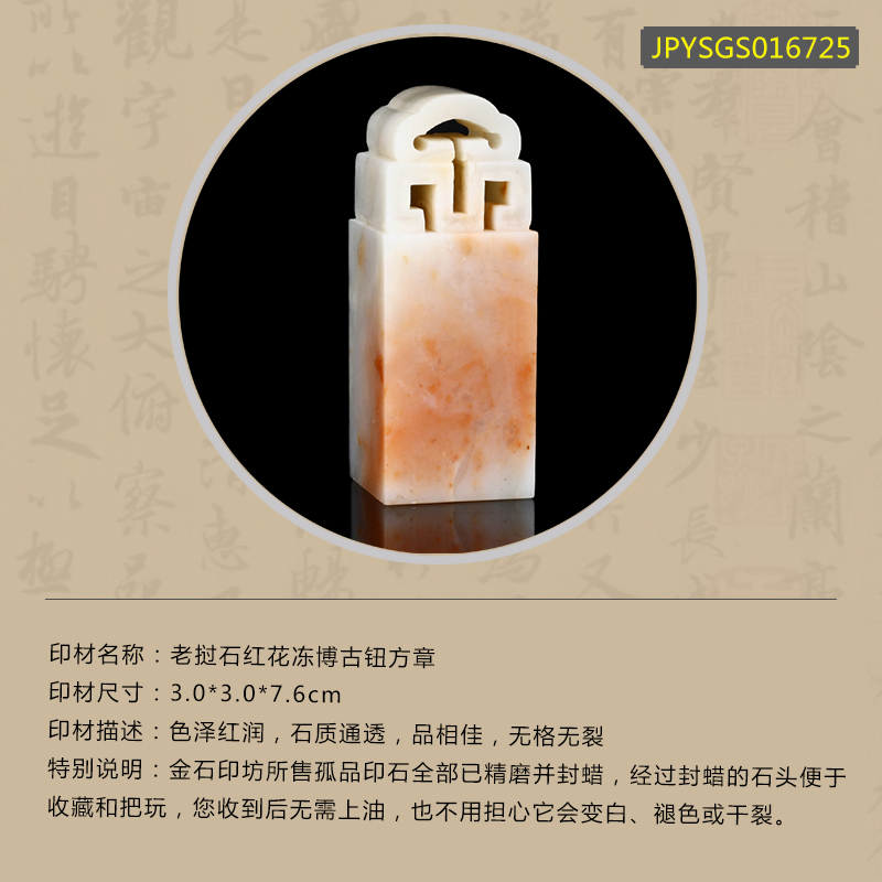 孤品016725-老挝石红花冻博古钮方章-3.0*3.0*7.6cm