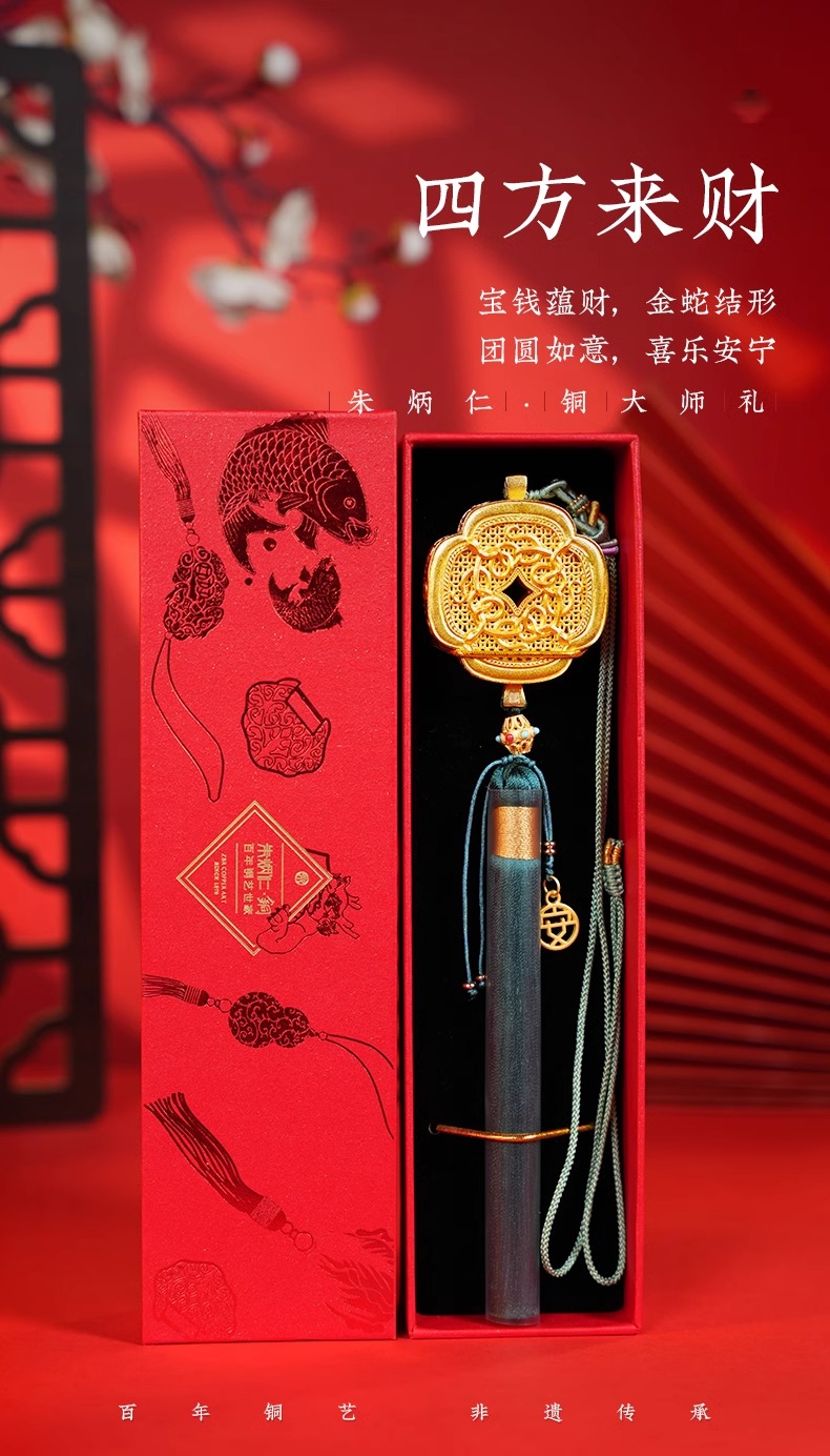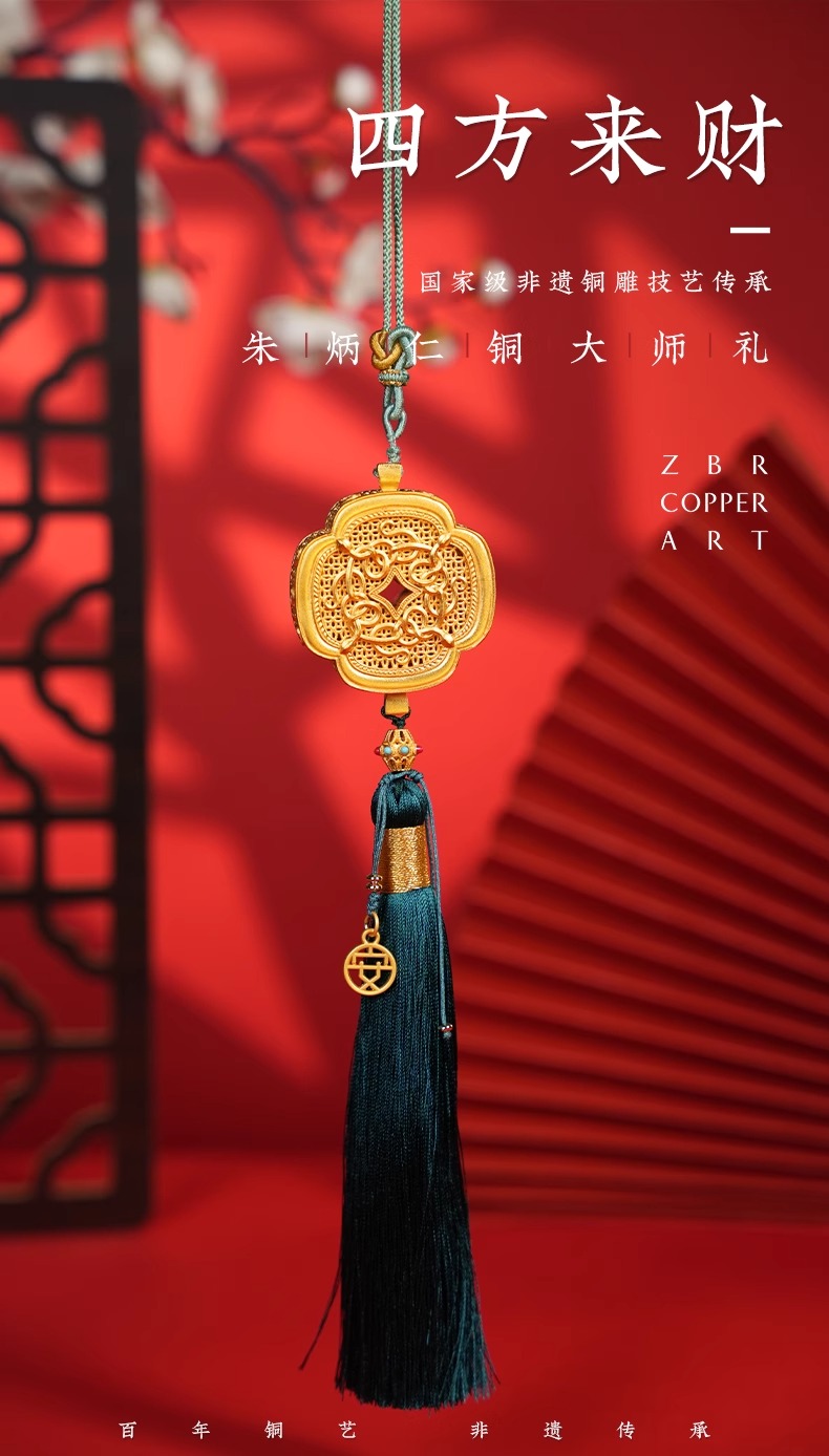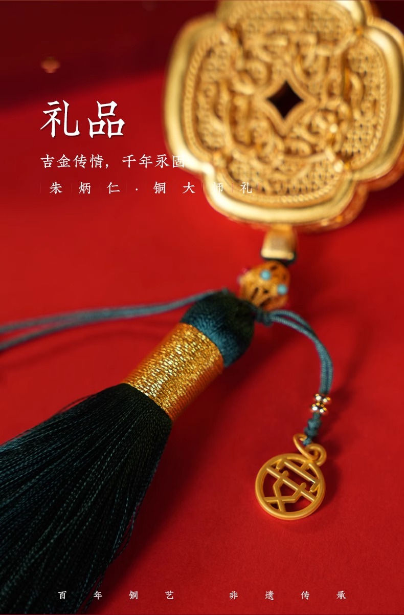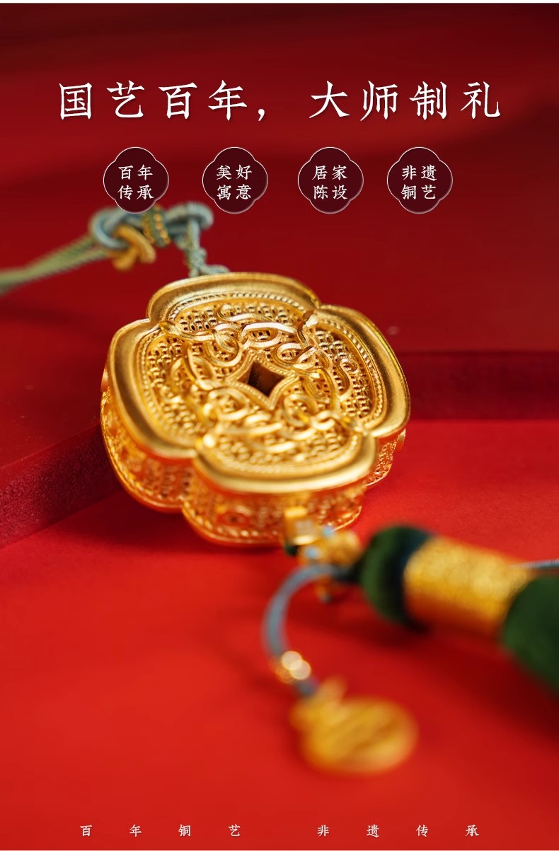 朱炳仁铜 花丝 挂件 伴手礼生日礼物 配饰 产品名称:四方来财