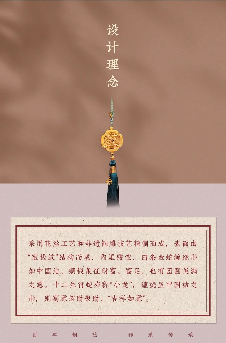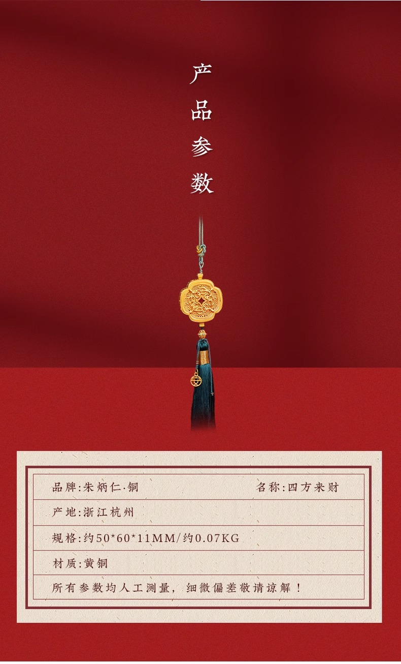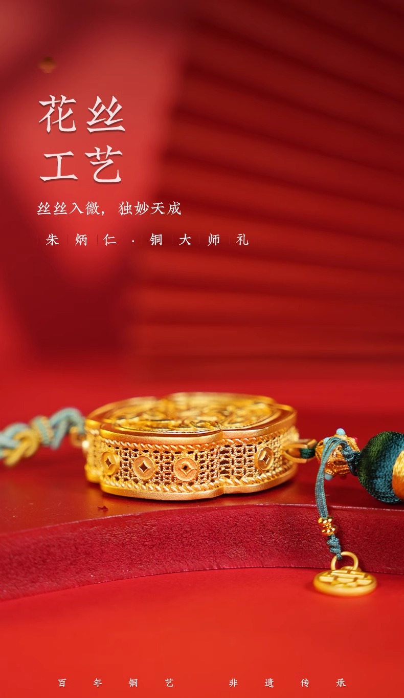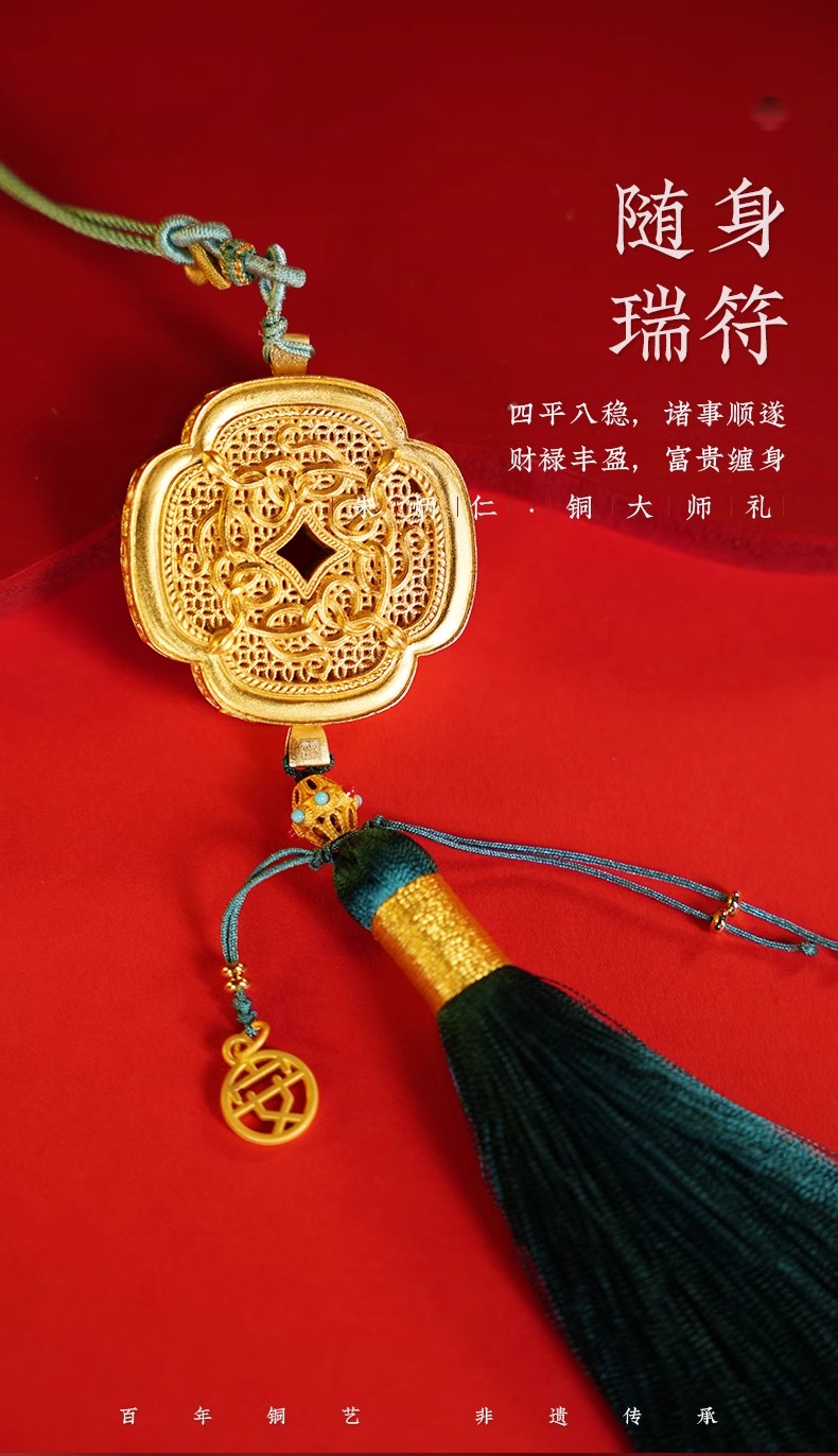 朱炳仁铜 花丝 挂件 伴手礼生日礼物 配饰 产品名称:四方来财