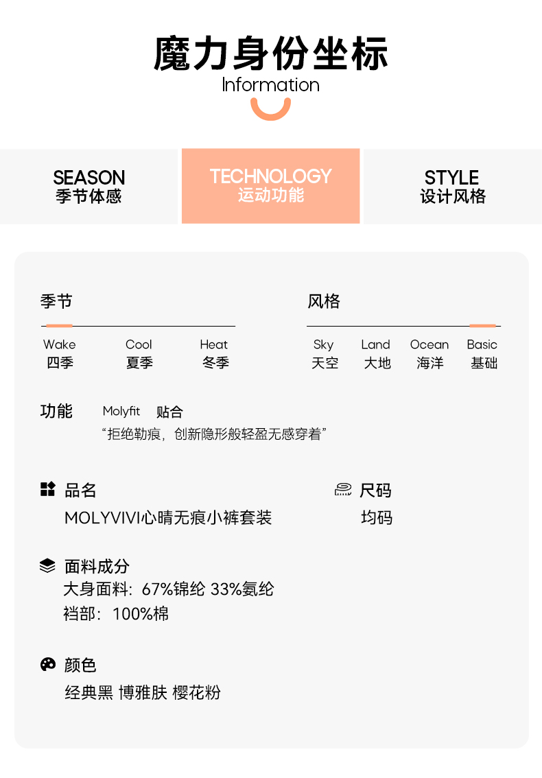 MOLYVIVI运动瑜伽专用抗菌无痕内裤三色三件装