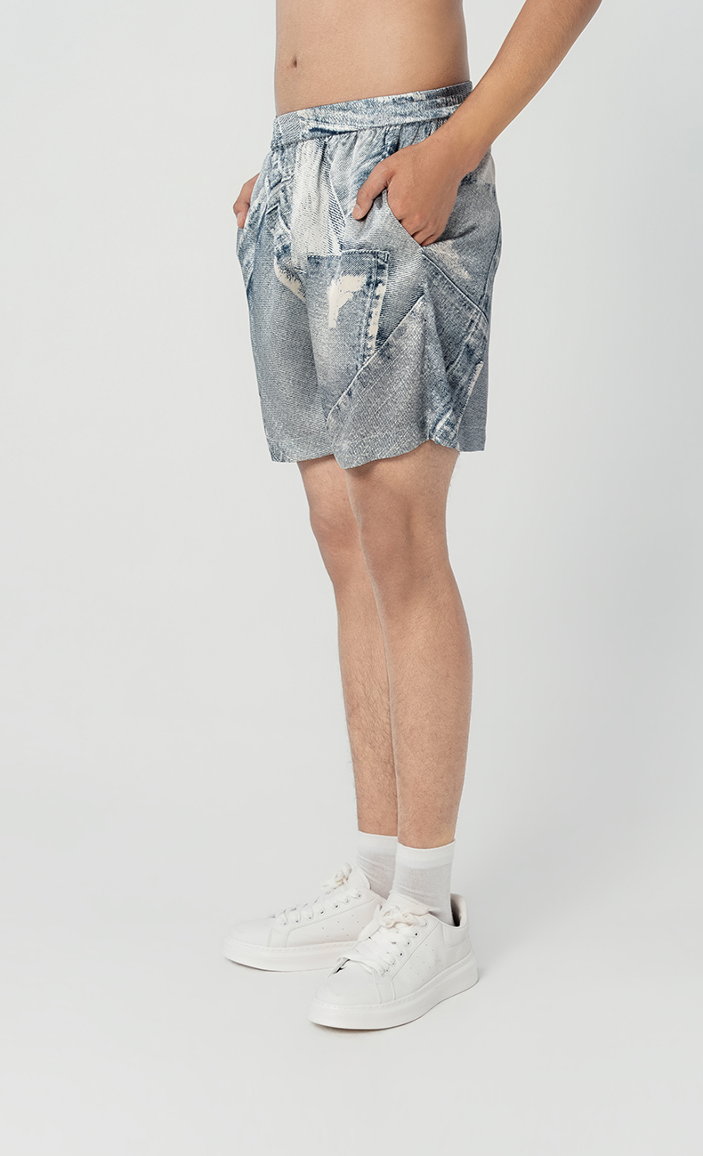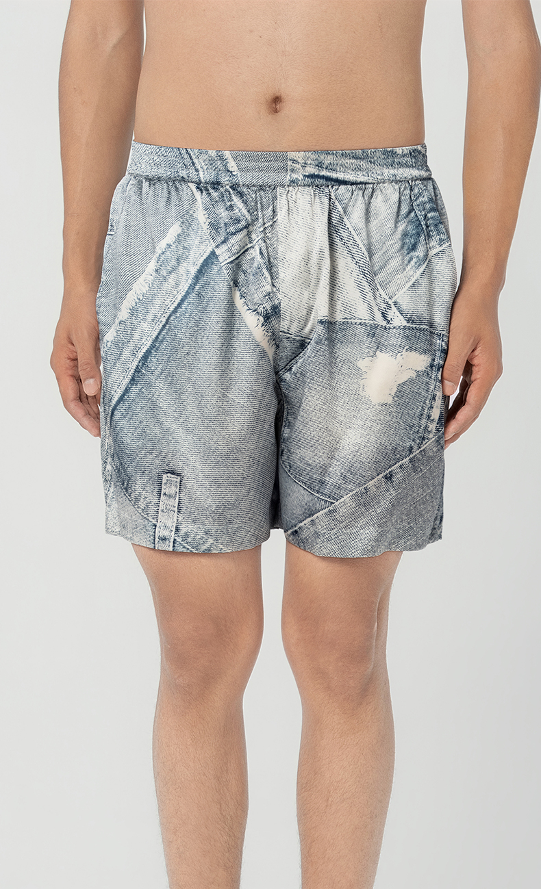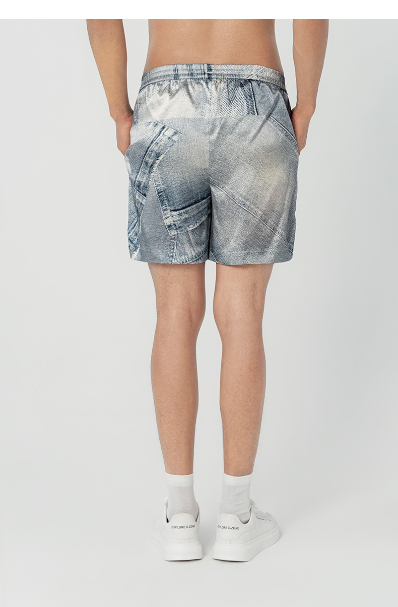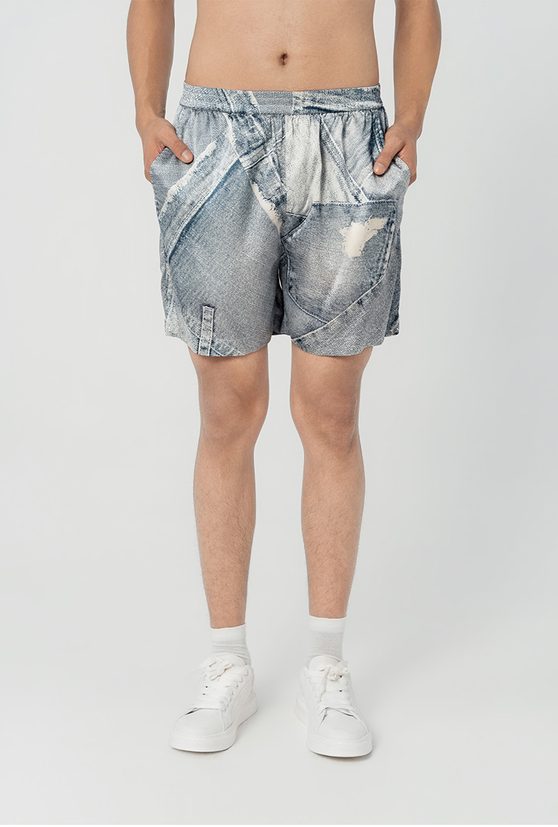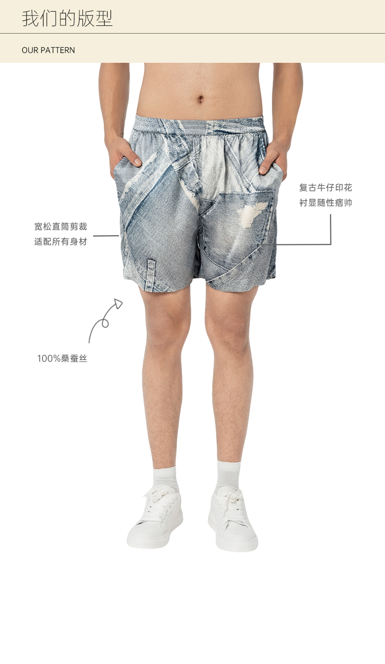 颠覆丹宁』桑罗复古牛仔印花短裤桑蚕丝男女同穿2026新款