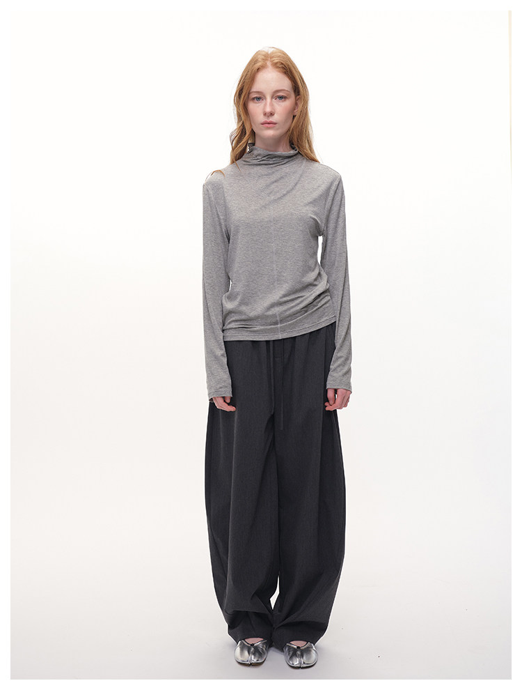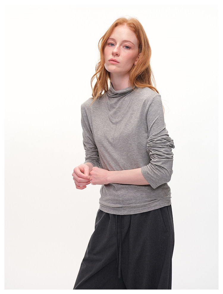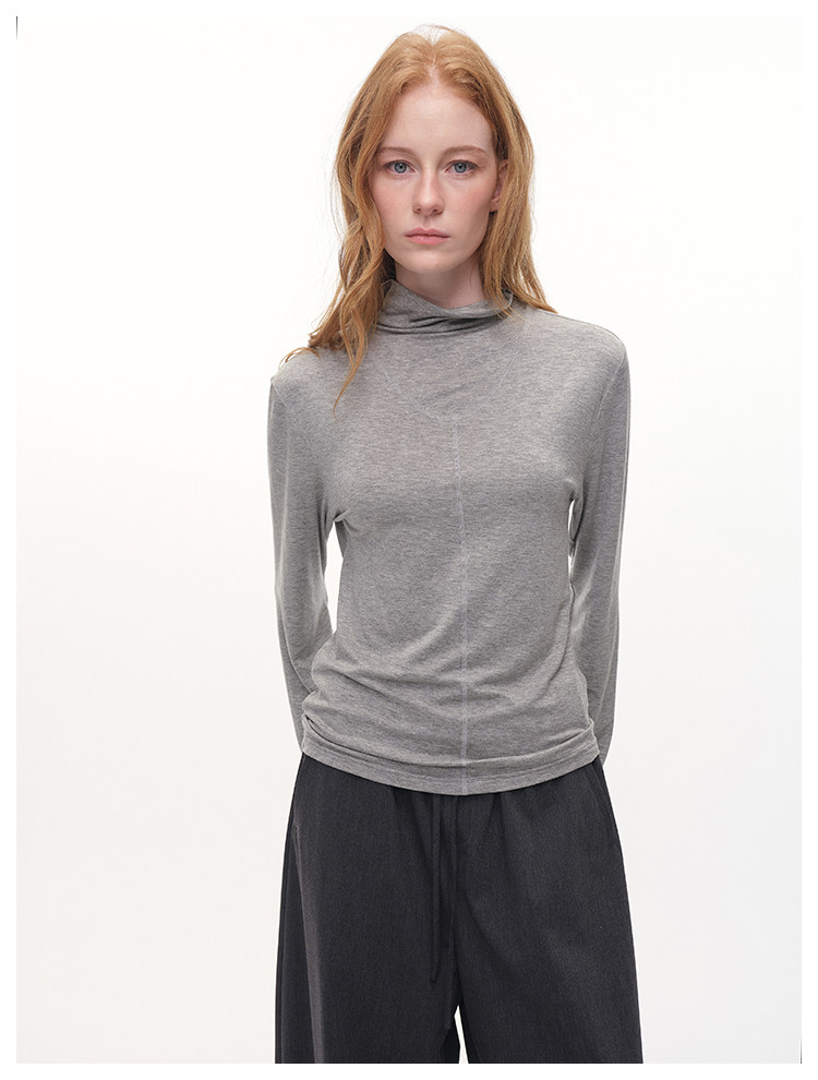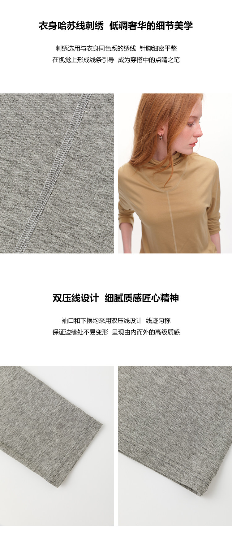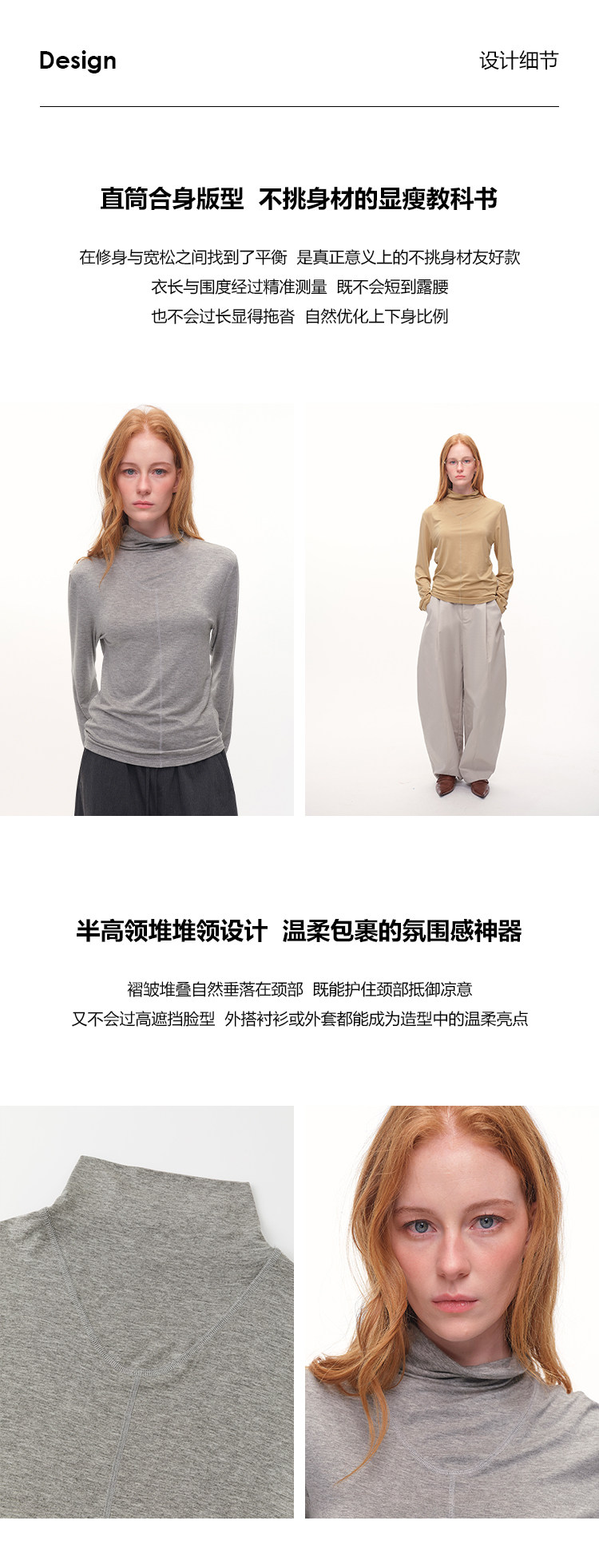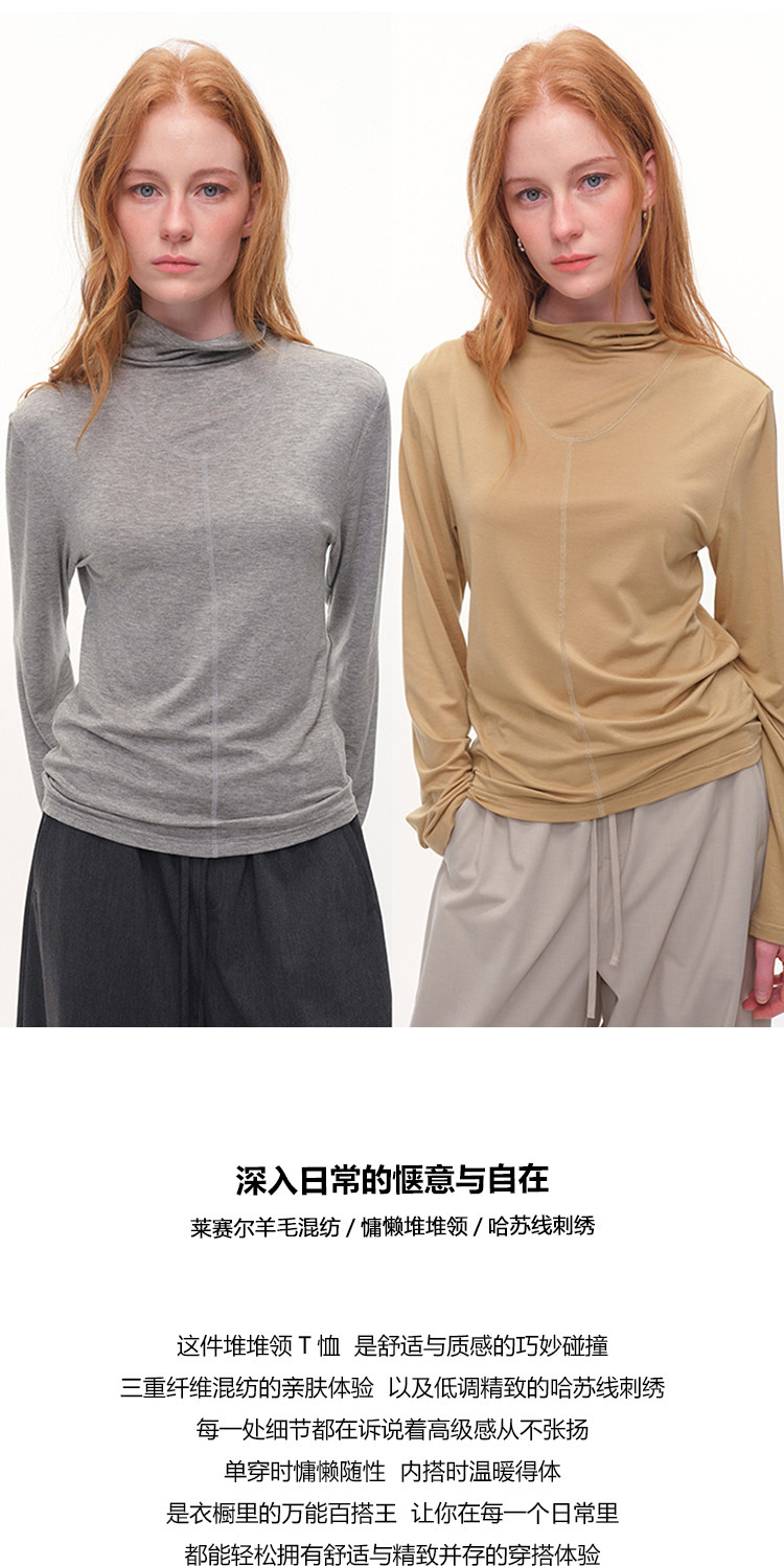 UMILAB|裸感T*时髦哈苏线 天丝羊毛轻肤 小堆领万搭叠穿T恤T800V