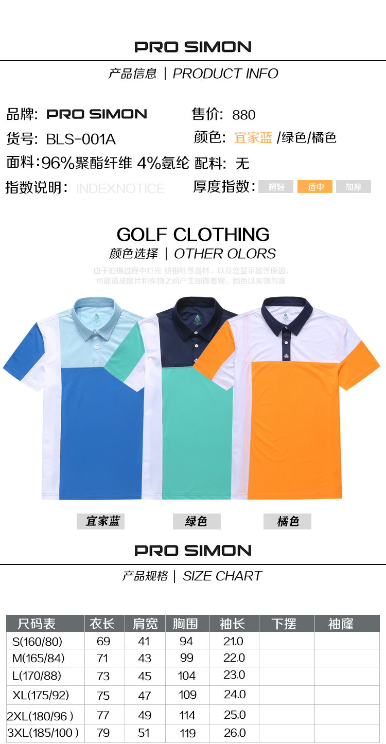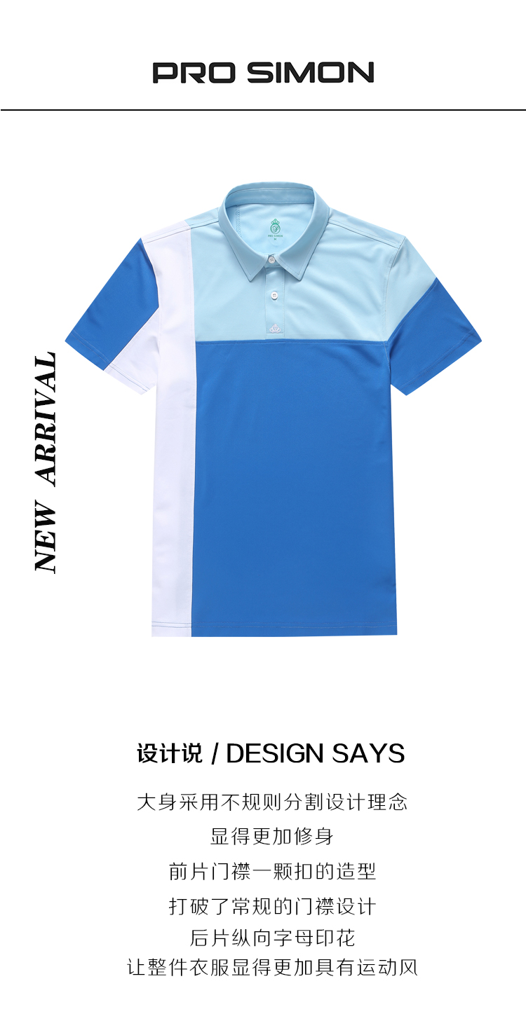 BLS-001A(PROSIMON高尔夫男款春夏短袖不对成拼接翻领Polo衫)