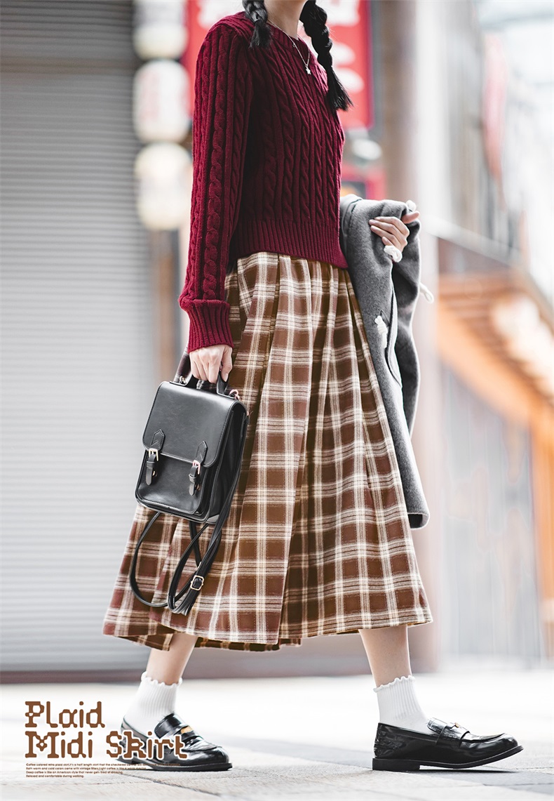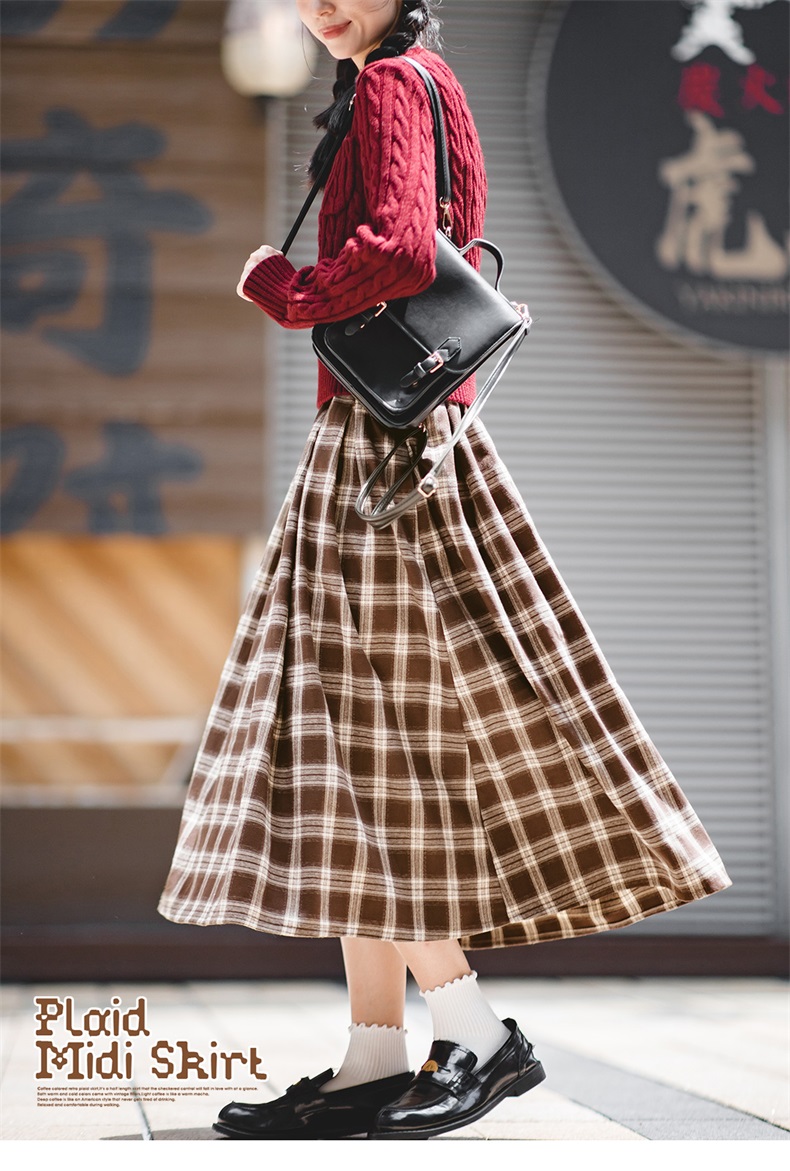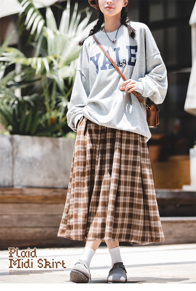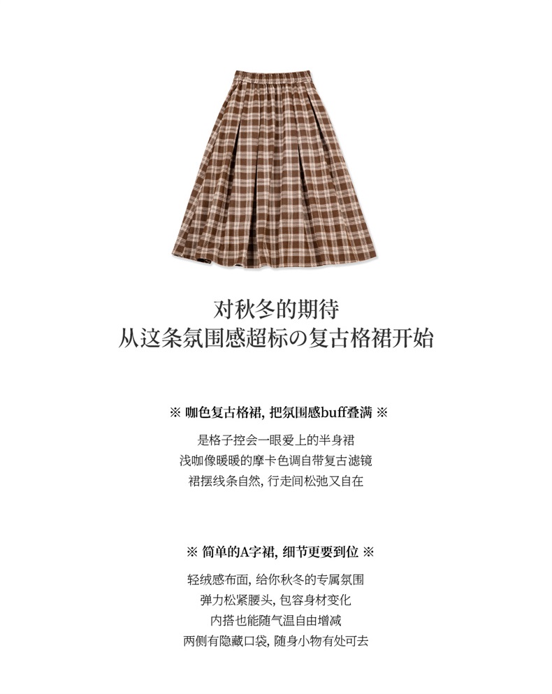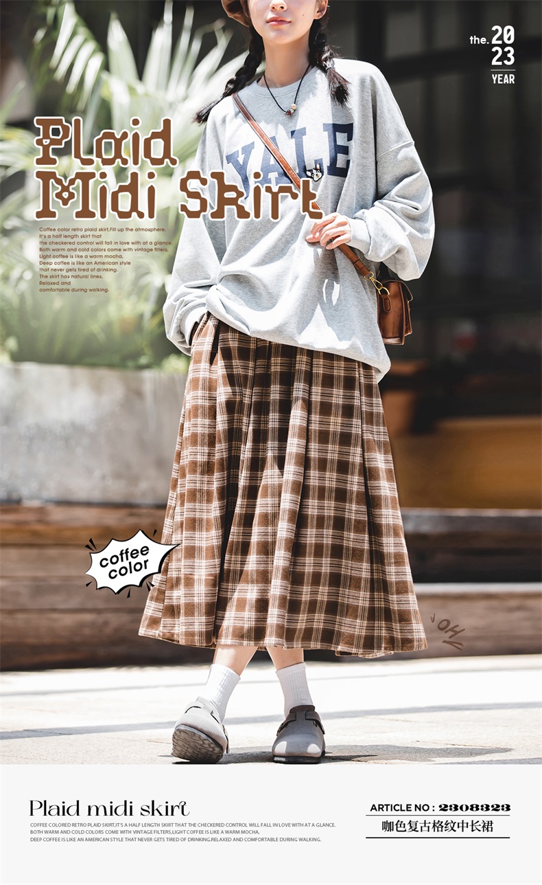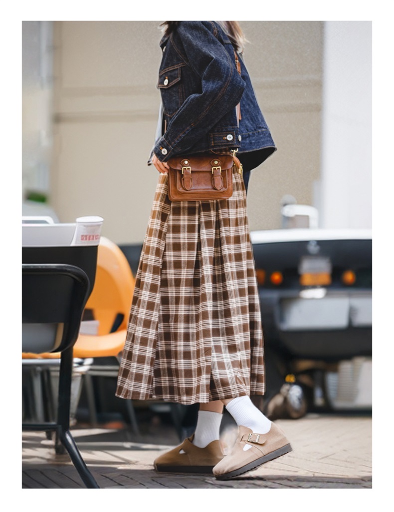 马登女装美式格子半身裙宽松休闲显瘦显高复古格纹长裙2023秋季