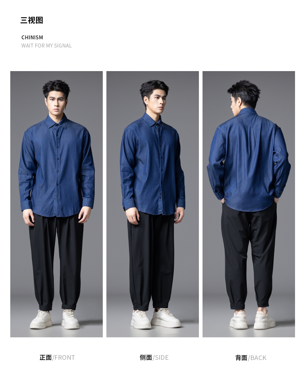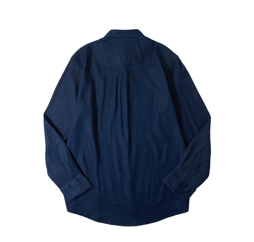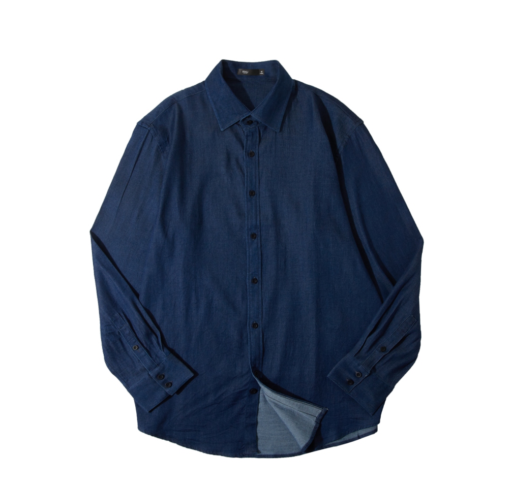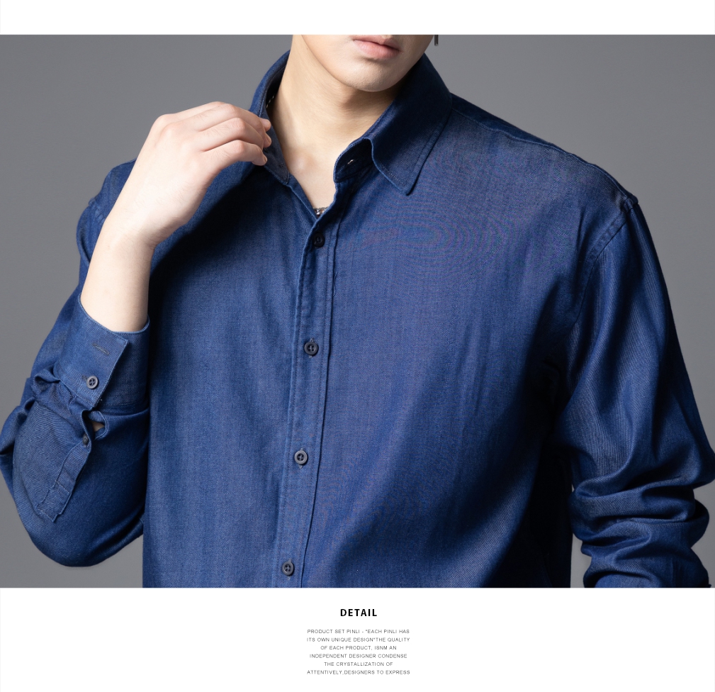 PINLI品立春季新款蓝色牛仔长袖衬衫宽松方领休闲百搭男衬衣GD253113061