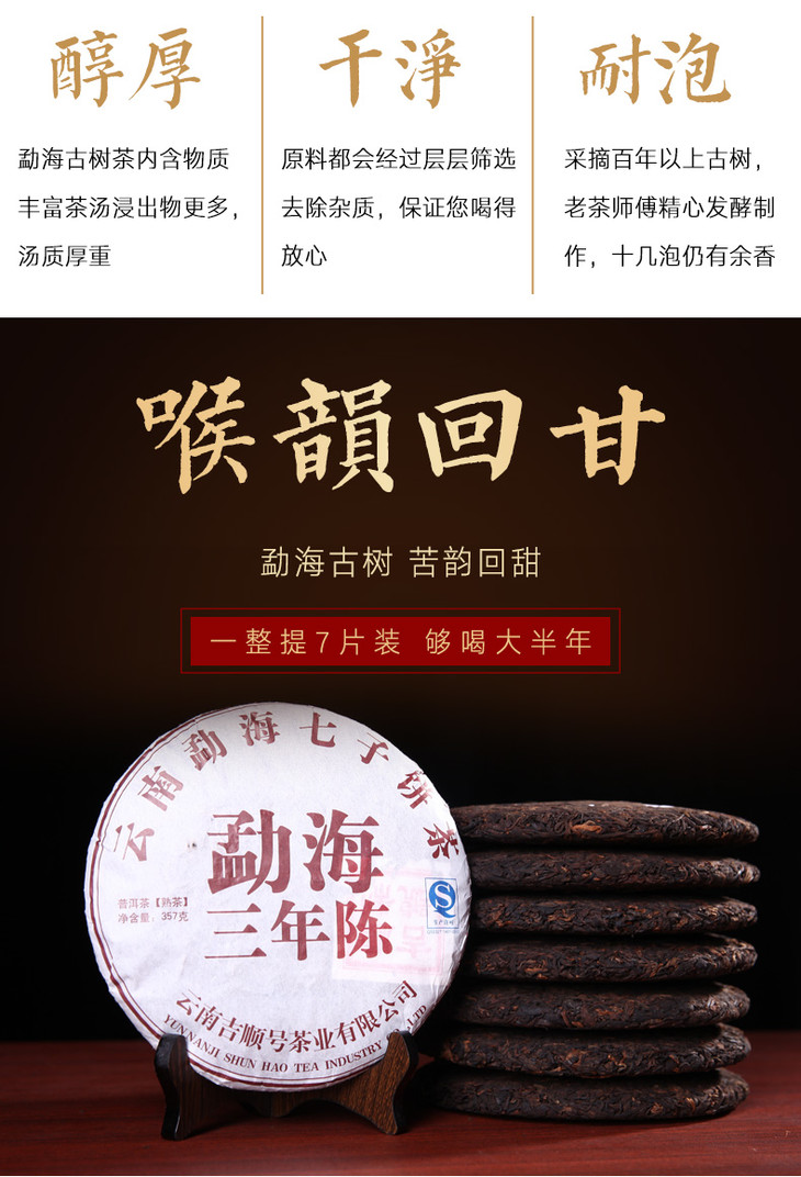 吉顺号勐海三年陈普洱熟茶七片整提购2499g
