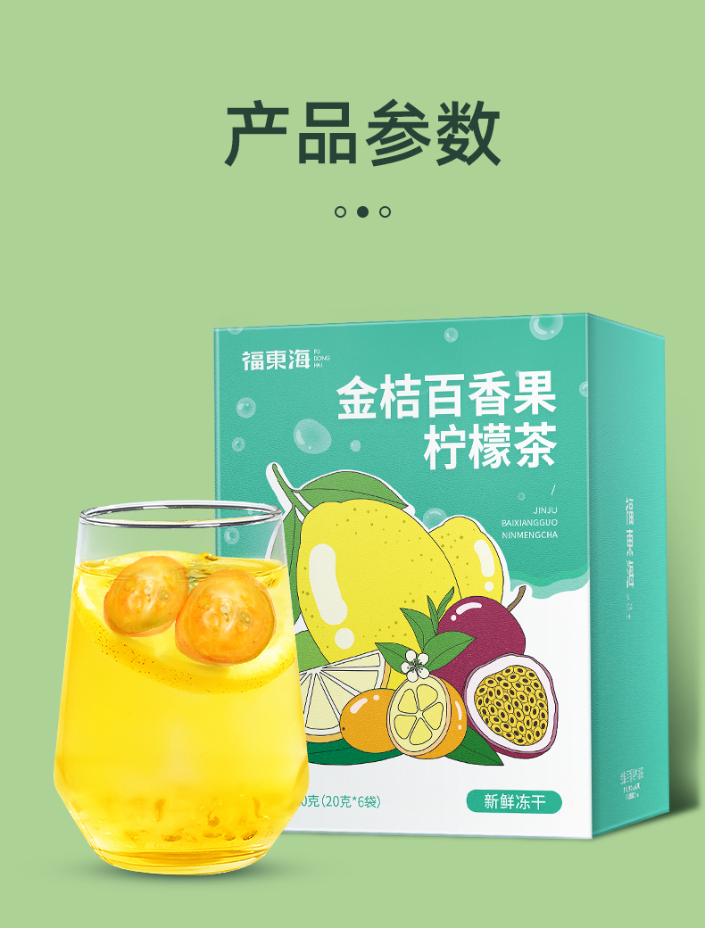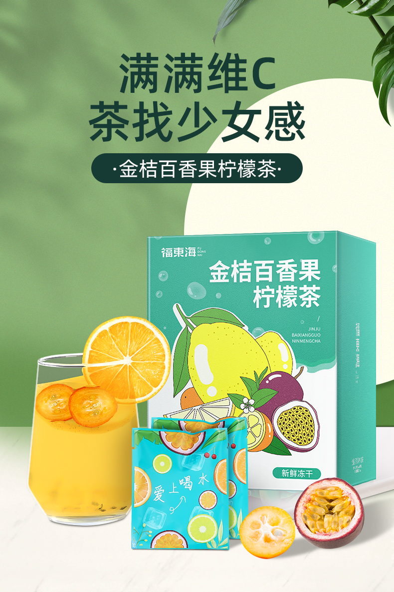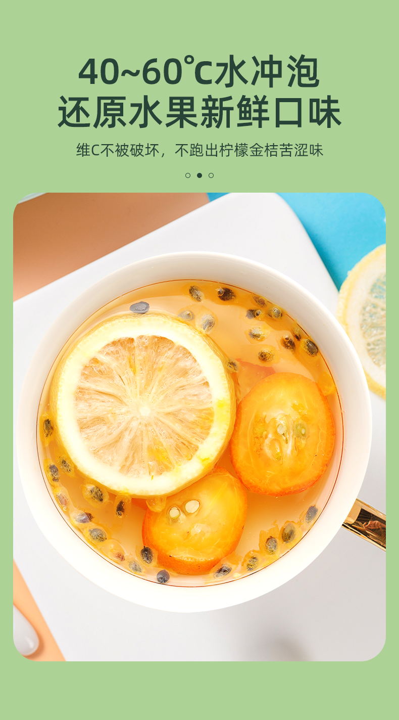 福东海 金桔百香果茶 120g /盒冻干柠檬片蜂蜜花果冷泡水果茶包花茶 独立小袋