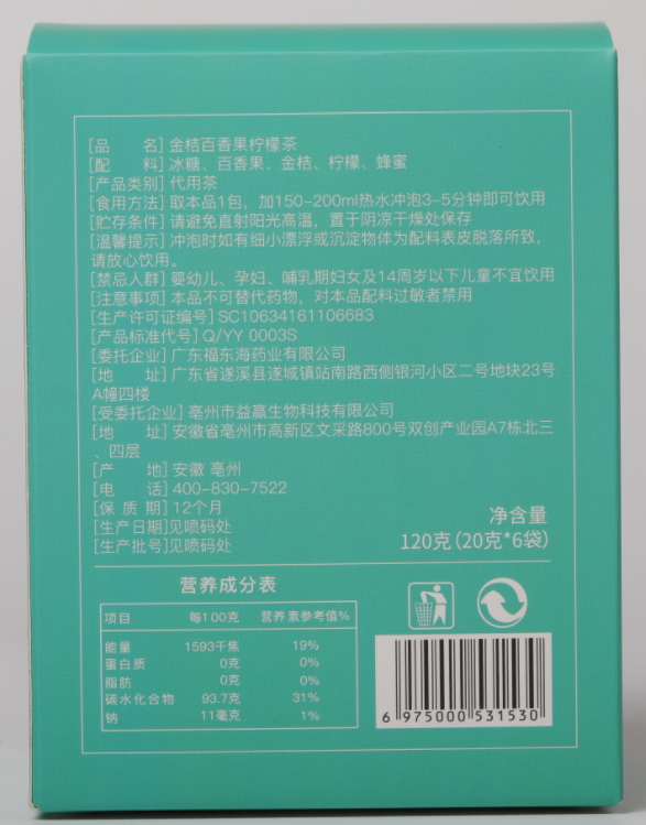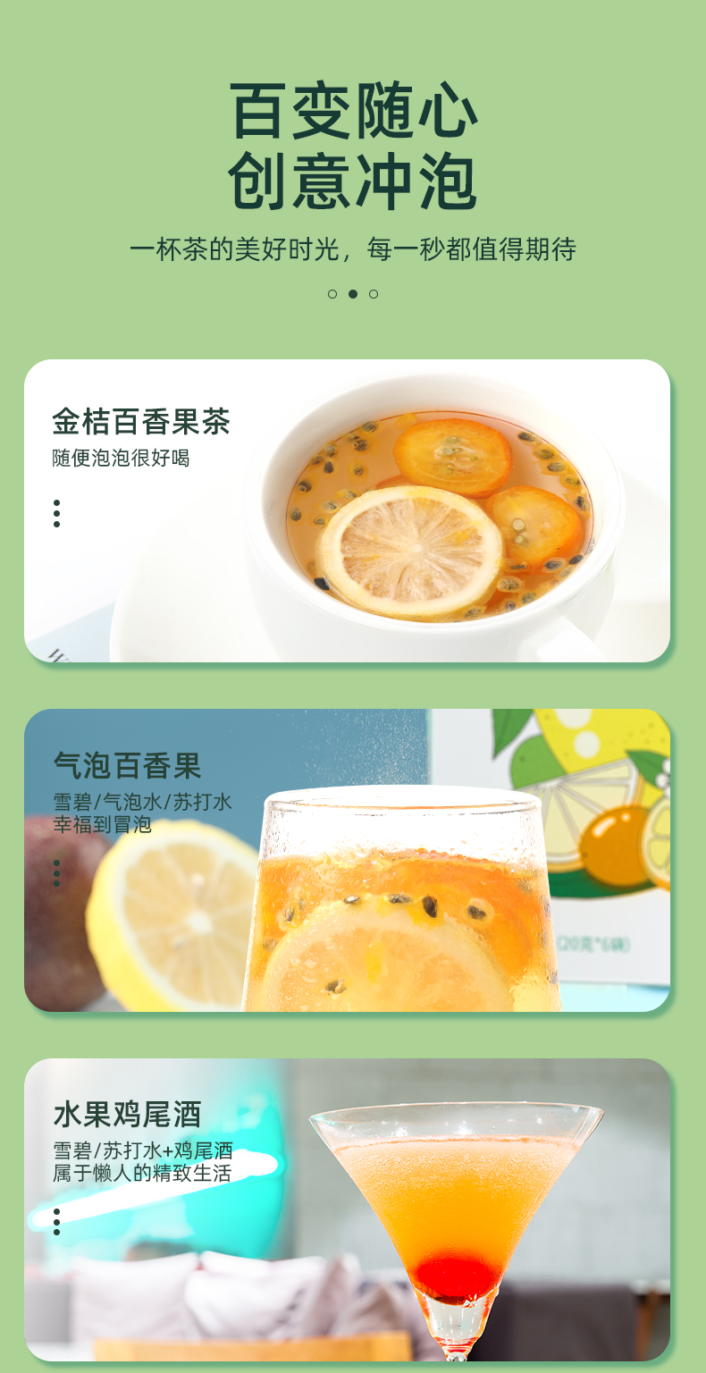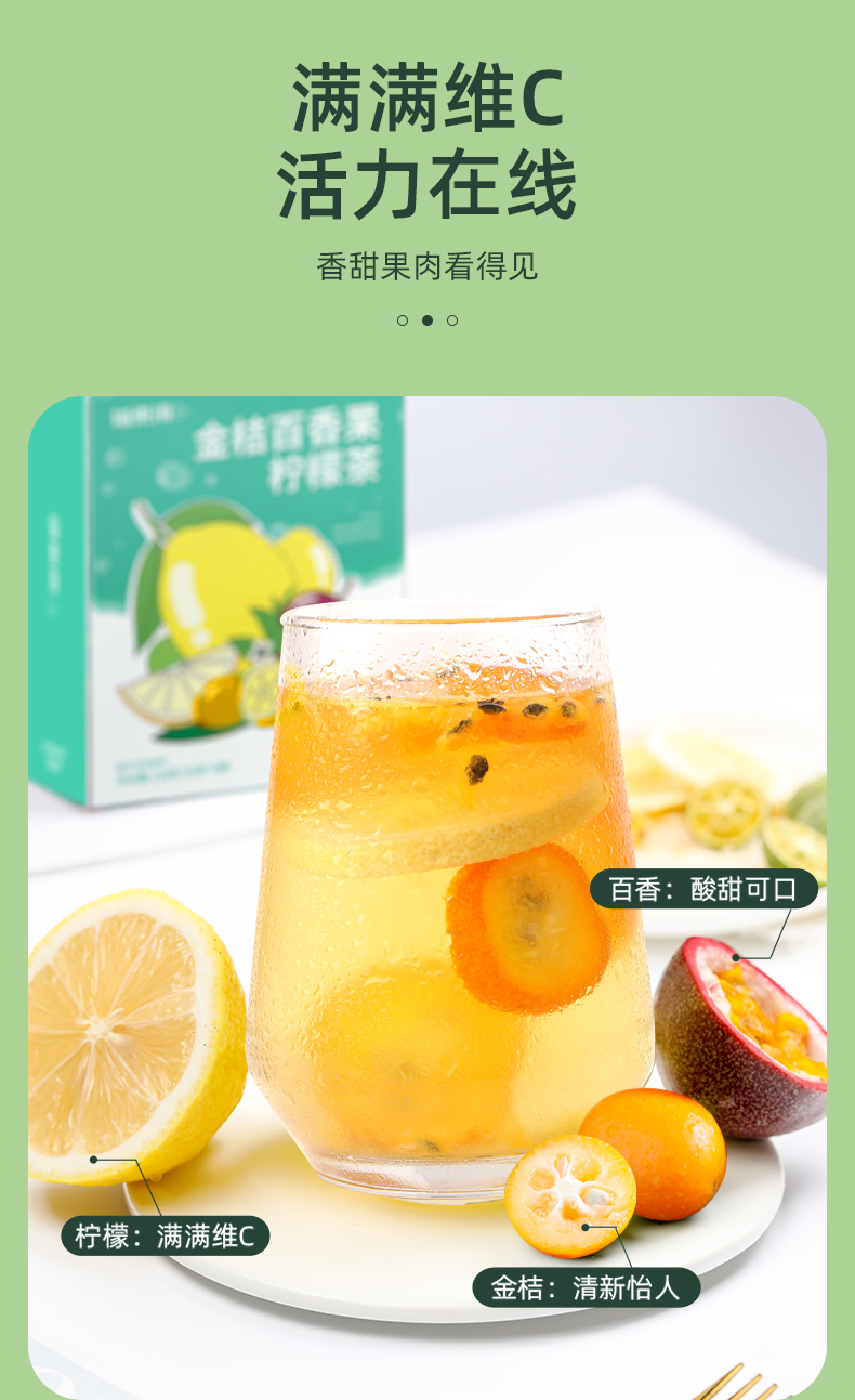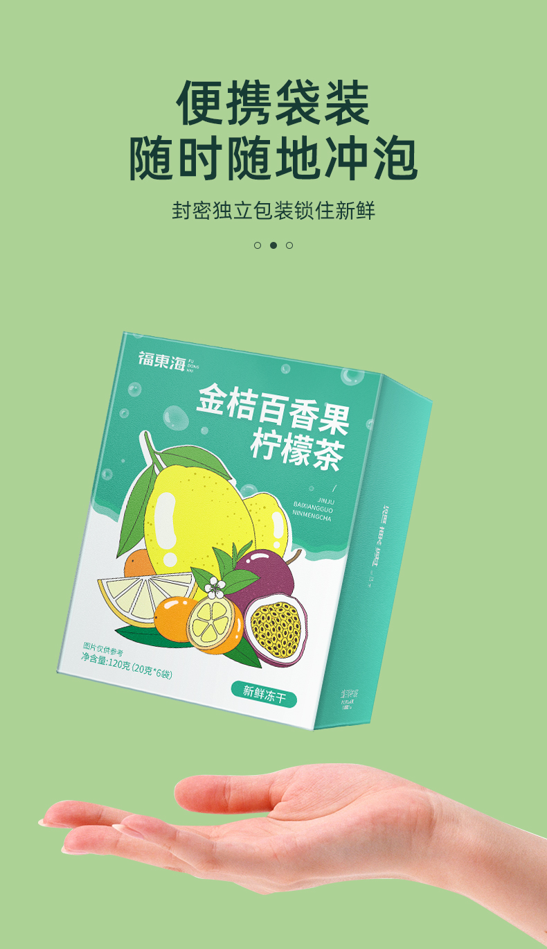 福东海 金桔百香果茶 120g /盒冻干柠檬片蜂蜜花果冷泡水果茶包花茶 独立小袋