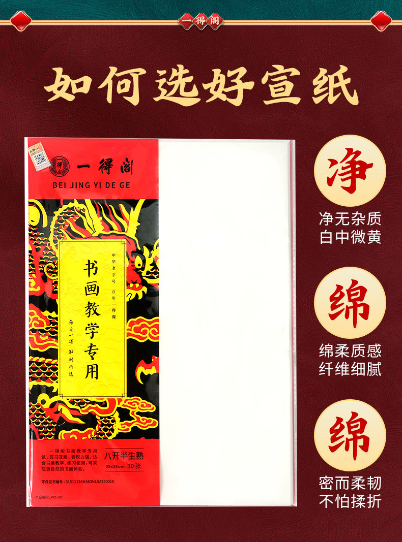 书法宣纸四尺对开宣纸半生半熟白色熟宣纸毛笔书法专用