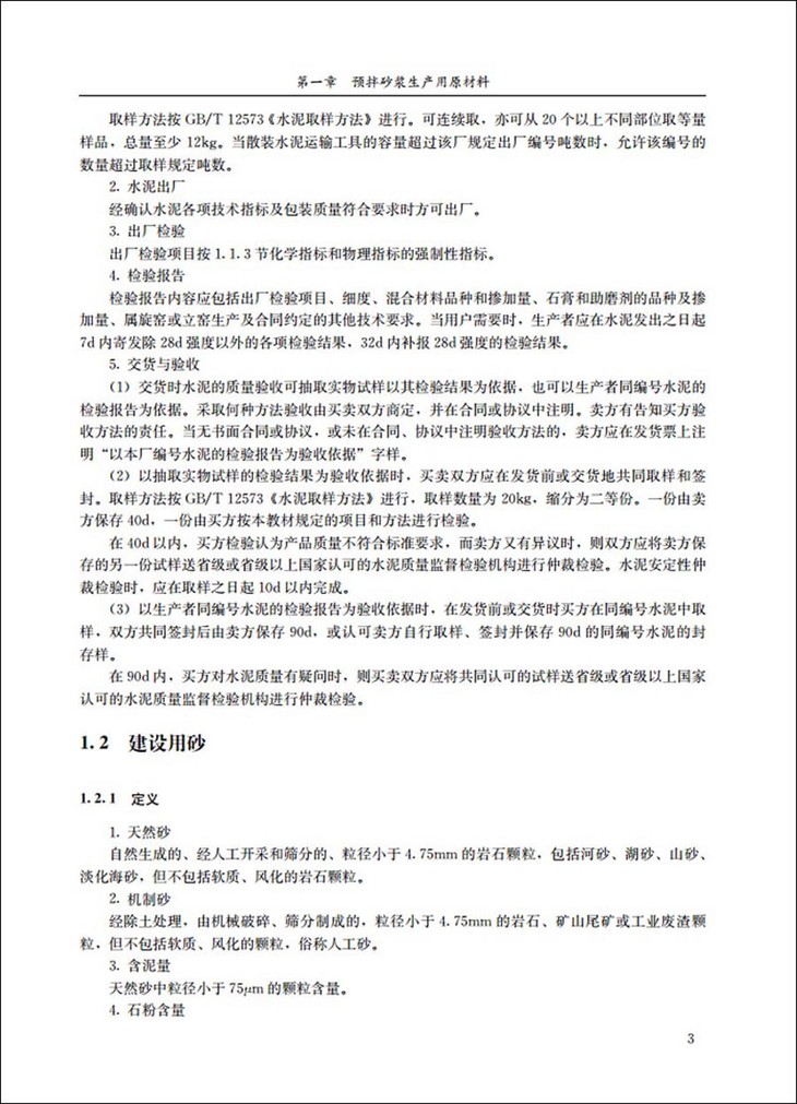 《预拌砂浆企业生产技术人员实操培训教材》一书包括文本、视频两部分,文本部分分为6章,系统地介绍了企业生产技术人员应掌握的实际操作相关内容;视频部分介绍了12个实际操作项目,重点演示了砂浆基本性能试验方法。