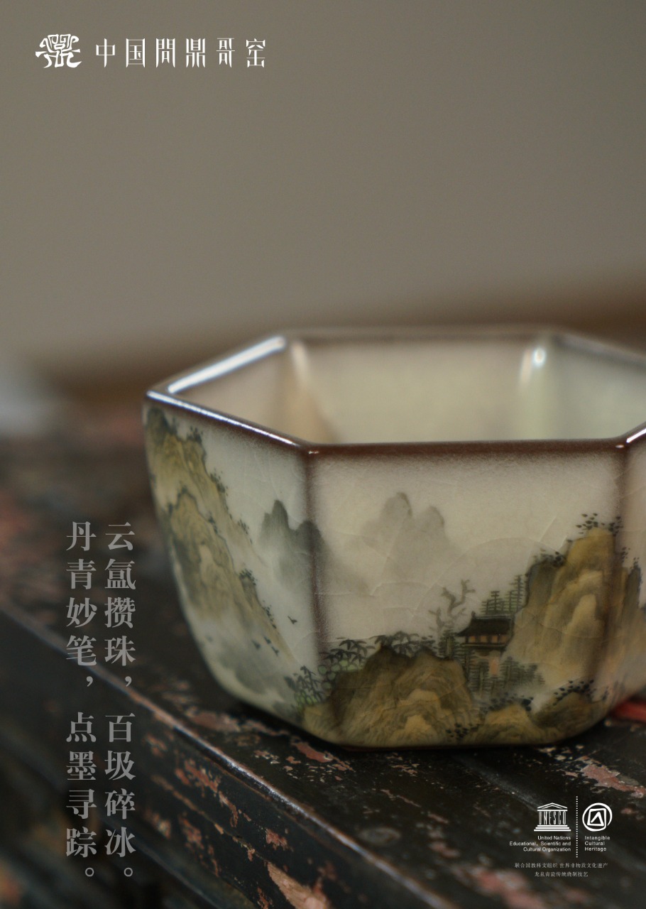 问鼎哥窑致巧款静空杯(山水)