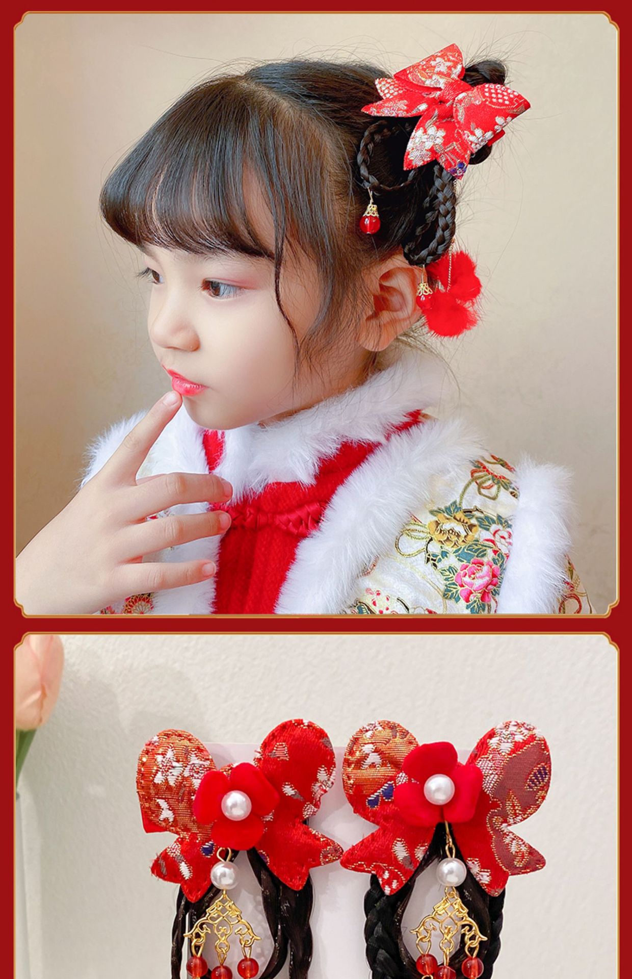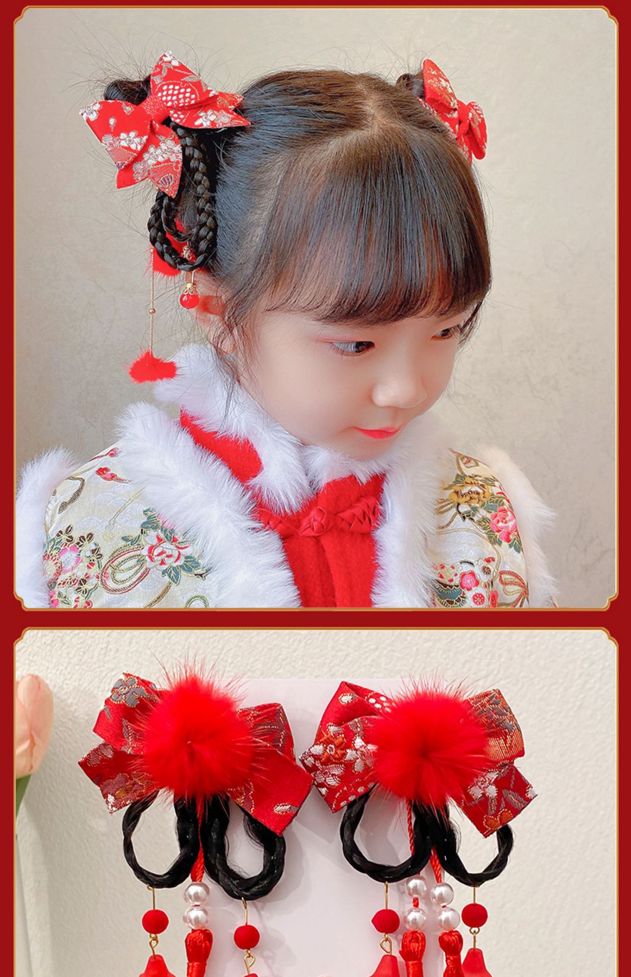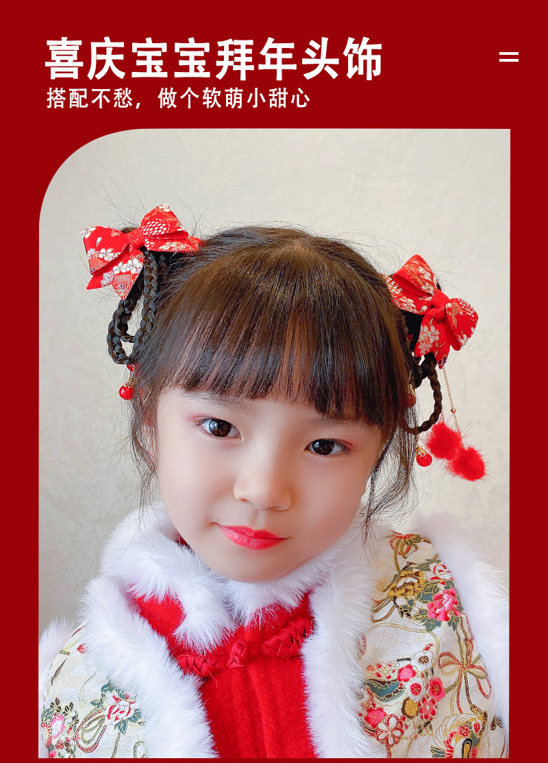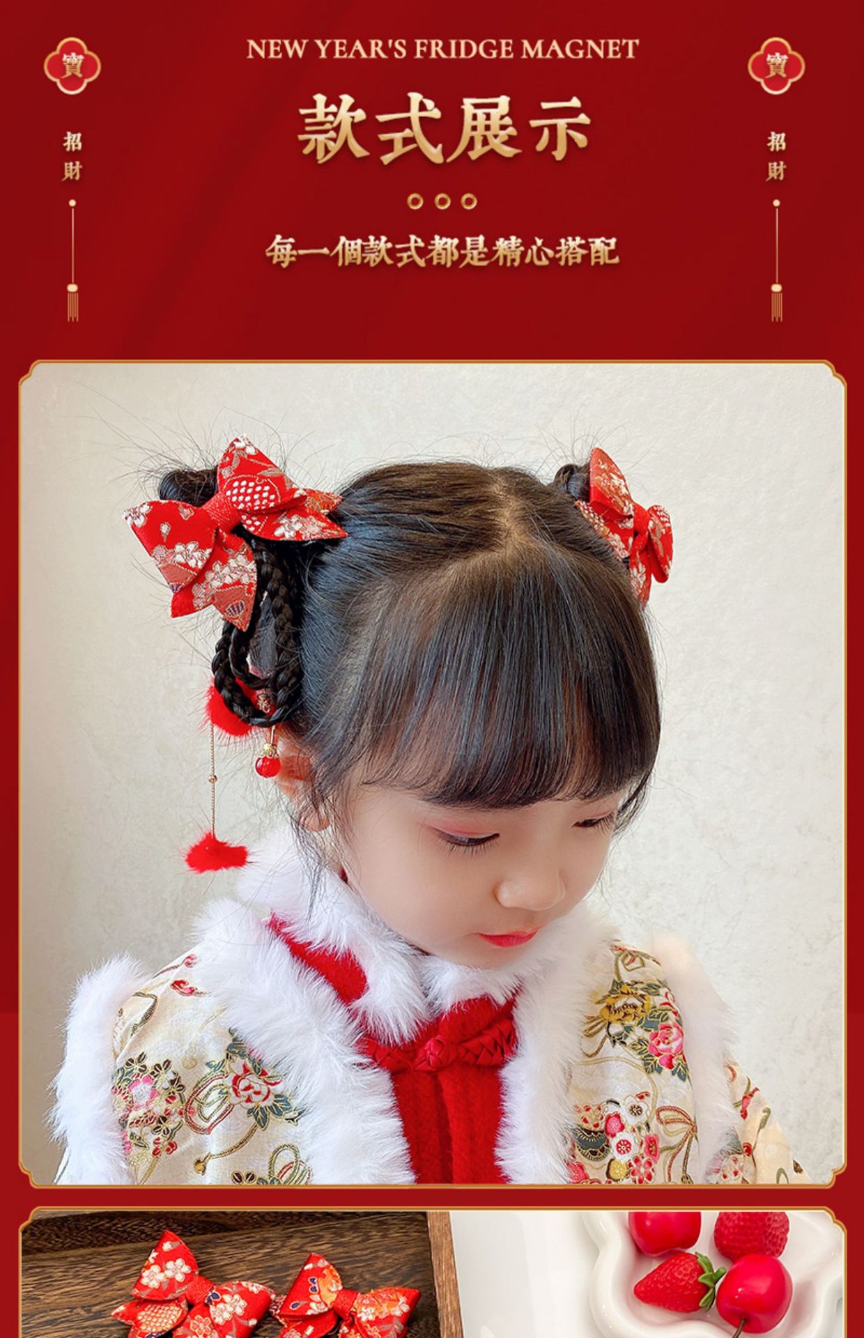 【喜庆宝宝拜年头饰】女童过年发饰假发蝴蝶结拜年发卡宝宝喜庆发夹中国风儿童新年头饰