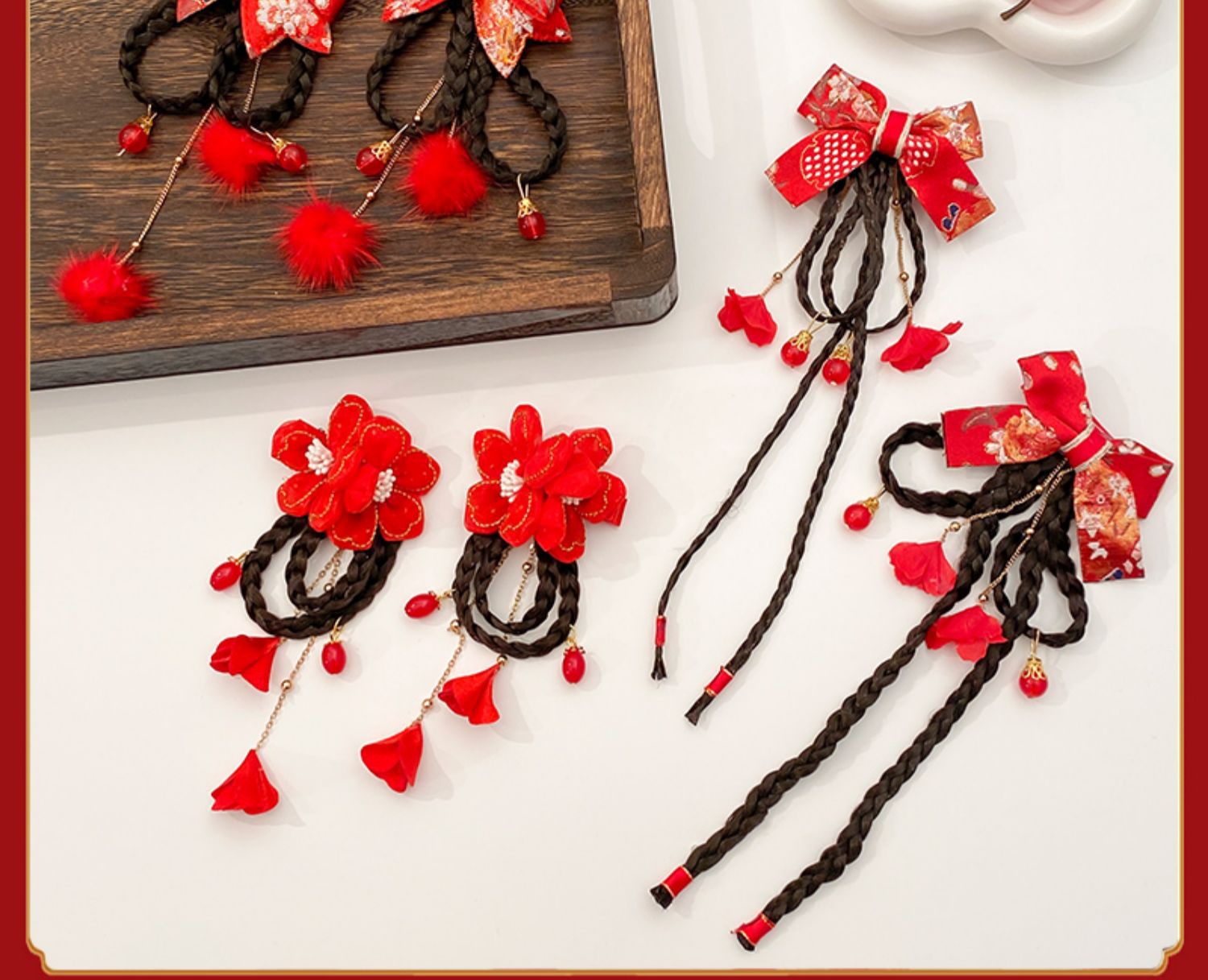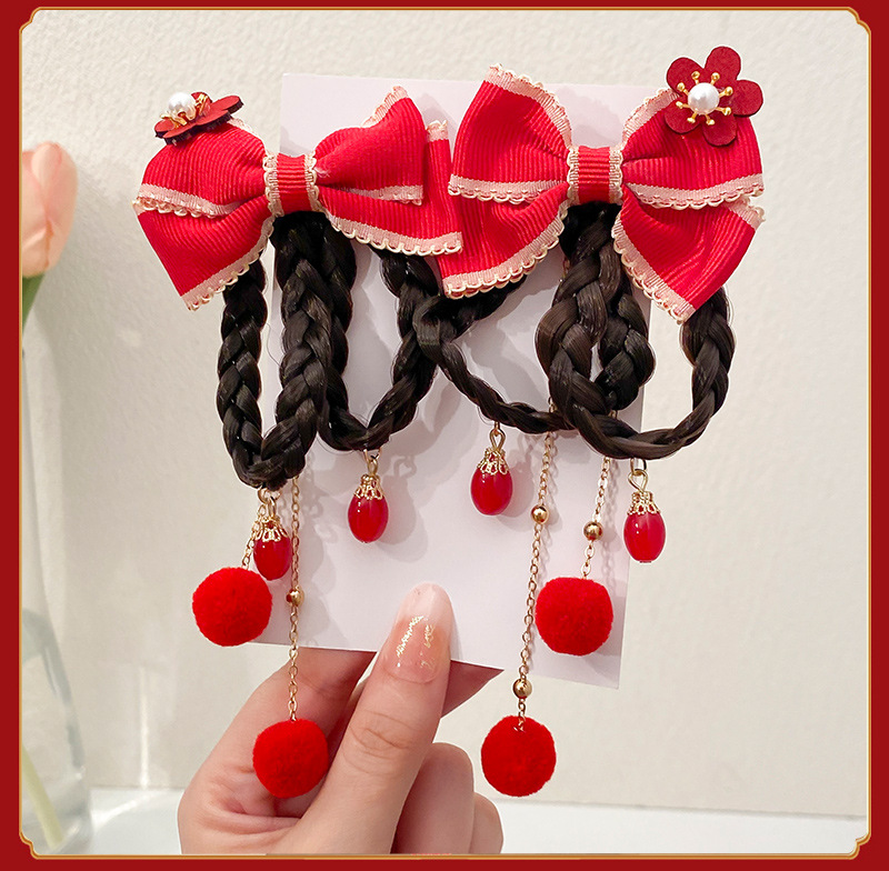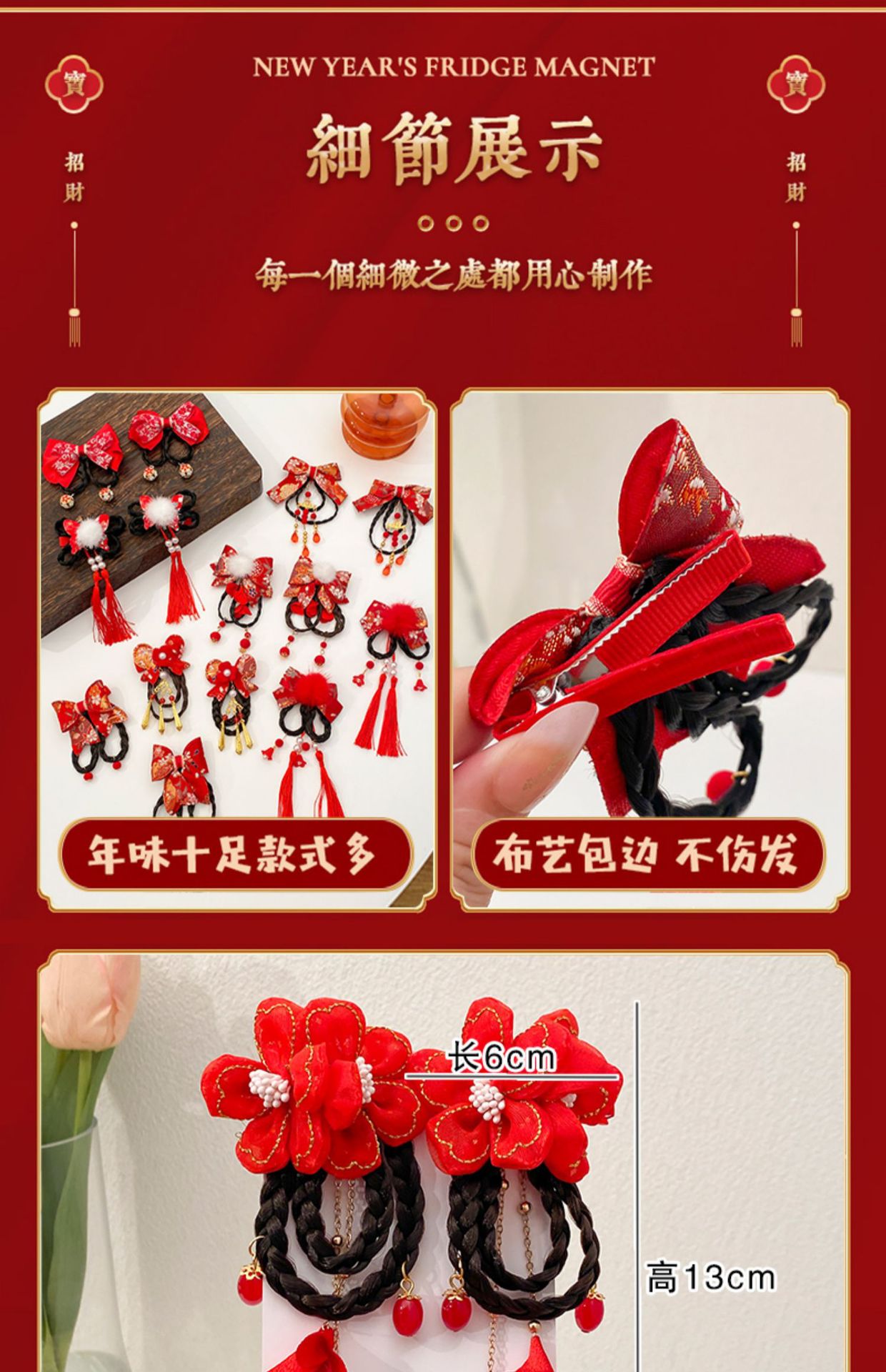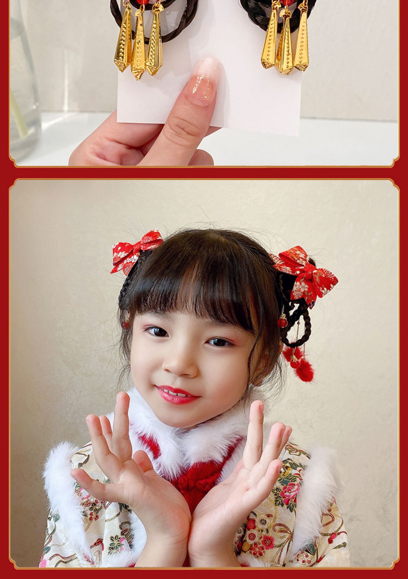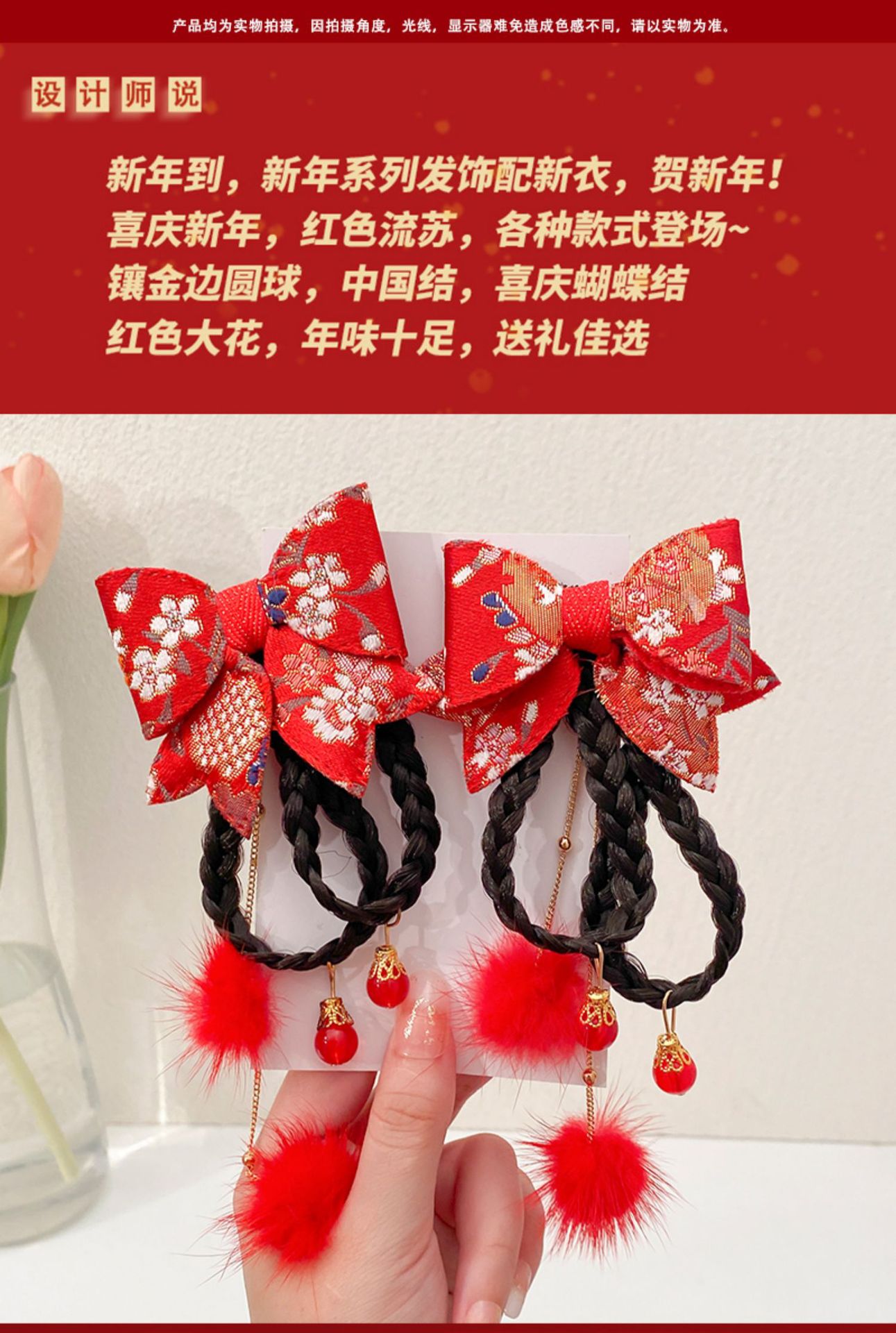 【喜庆宝宝拜年头饰】女童过年发饰假发蝴蝶结拜年发卡宝宝喜庆发夹中国风儿童新年头饰