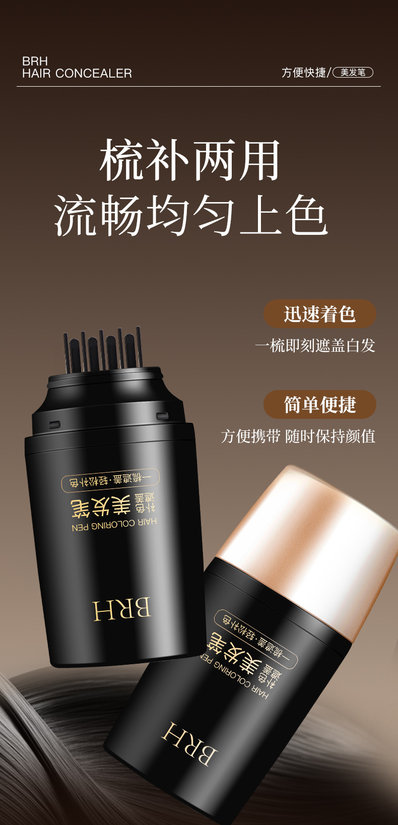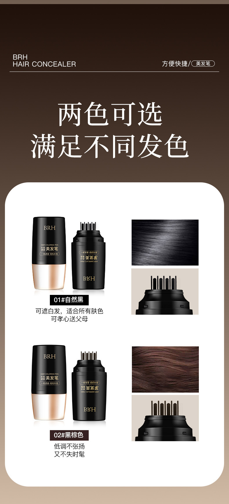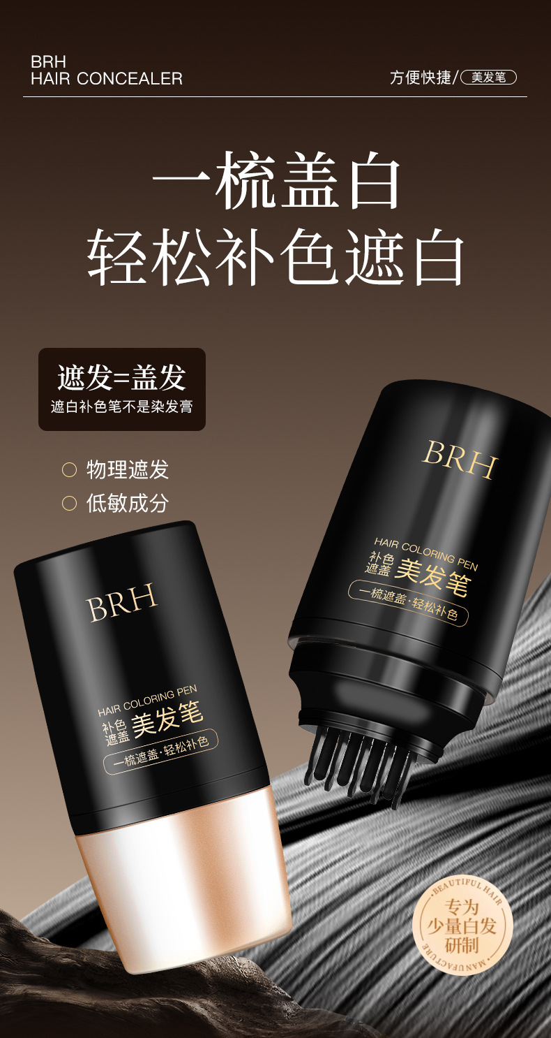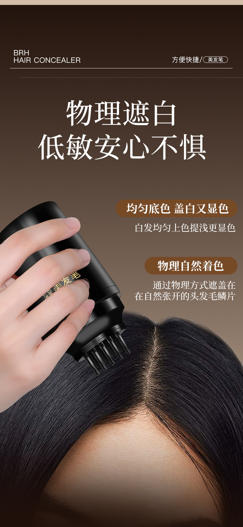 【一梳盖白❗BRH美发笔】「遮发=盖发」轻松补色遮白,物理遮发/低敏成分,流畅均匀上色,一梳即可遮盖白发,不伤头皮遮盖白发,不脱色不伤头皮L