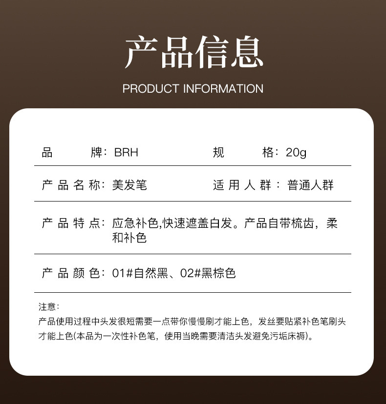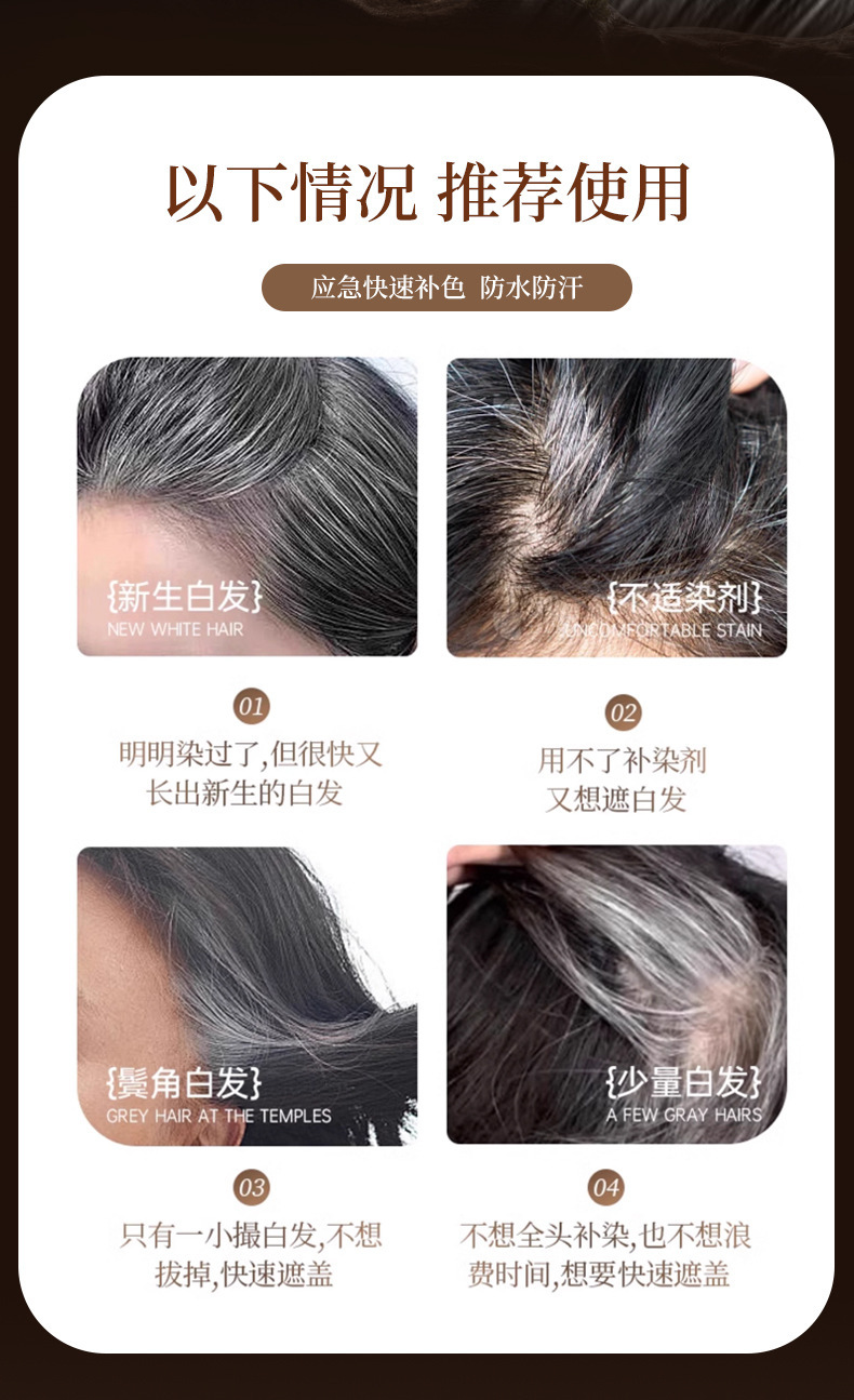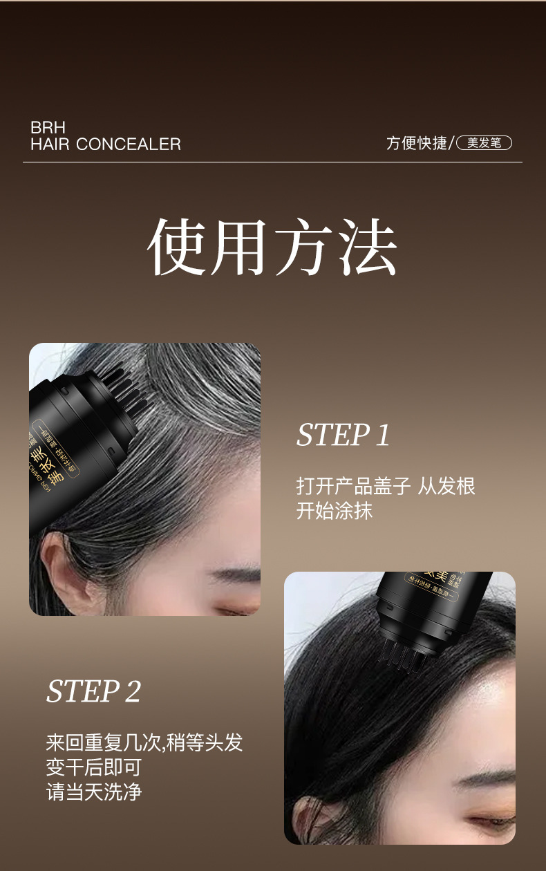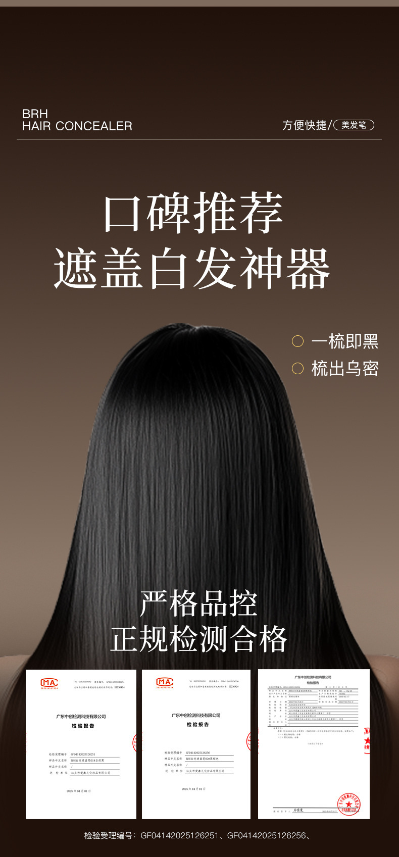 【一梳盖白❗BRH美发笔】「遮发=盖发」轻松补色遮白,物理遮发/低敏成分,流畅均匀上色,一梳即可遮盖白发,不伤头皮遮盖白发,不脱色不伤头皮L