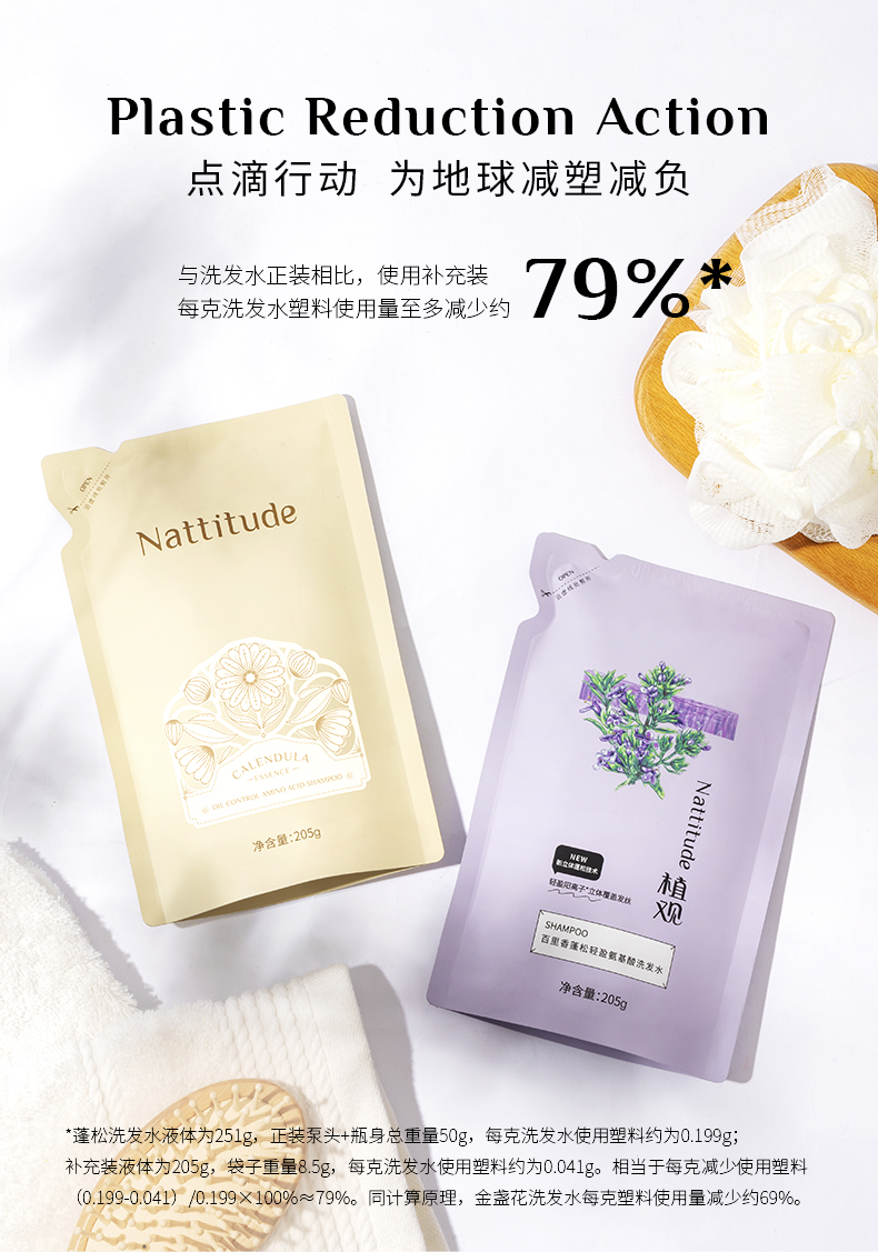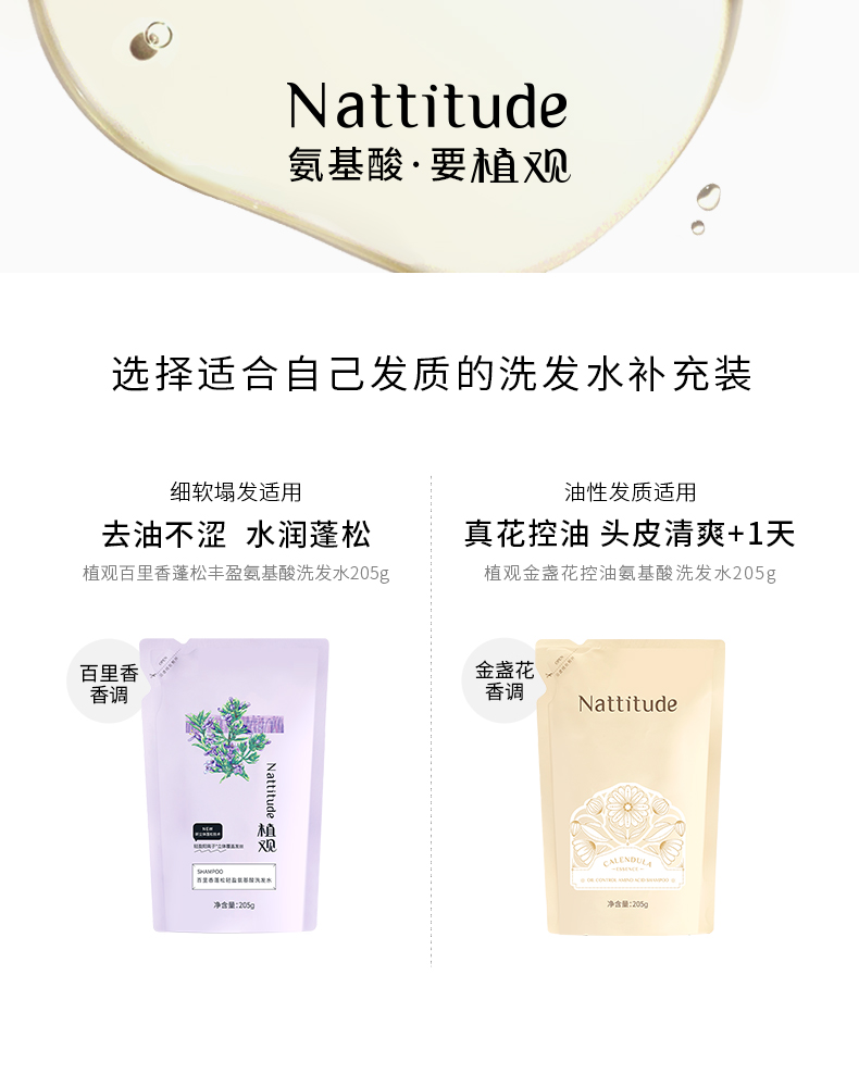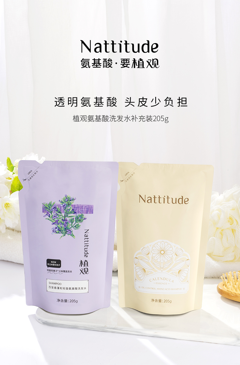【12月社群秒杀】(¥49.9秒2袋 !) 植观氨基酸洗发水补充装205g(袋装)*2 | 配方一致 减塑79% |(不参加实付满赠/优惠券等活动)