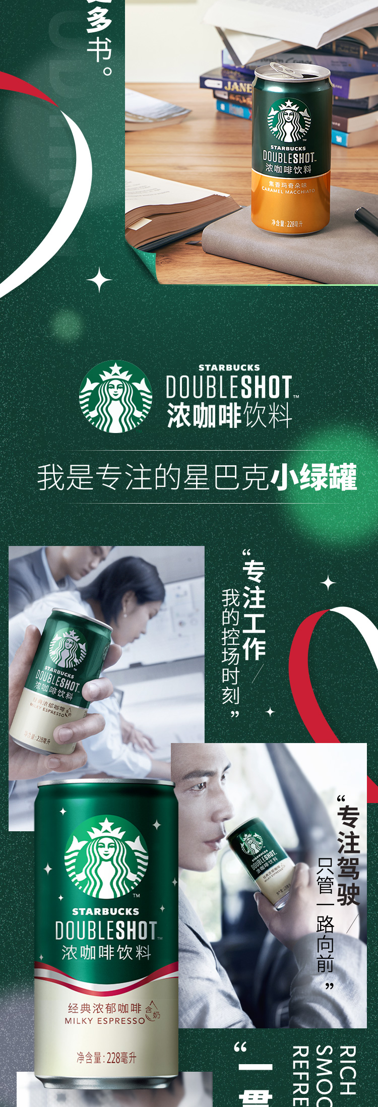 星巴克即饮咖啡饮料228ml*6瓶 星倍醇 美式 罐装 咖啡 饮料 包邮