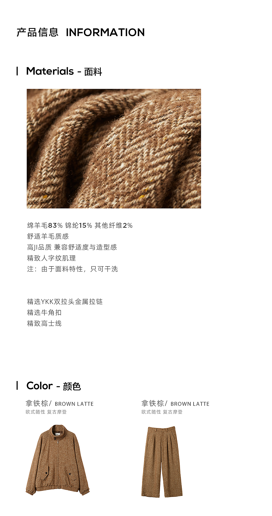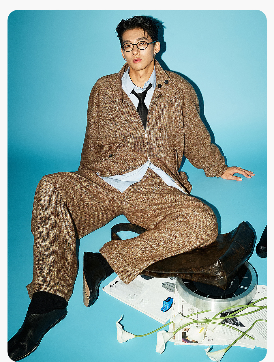 棉仓3571011001-1-【复古频道】 LAB含羊毛立领质感链式宽松插肩袖哈灵顿毛呢夹克