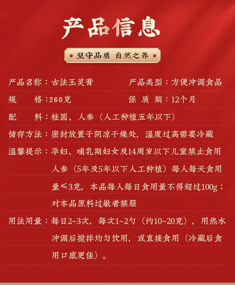 优品 人参版玉灵膏 古法蒸制手工玉灵膏 260克/瓶