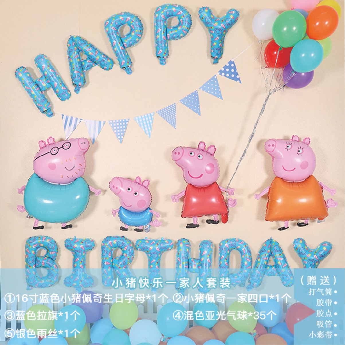生日派对|宝宝生日派对蛋糕装饰用品儿童生日卡通小猪佩奇铝膜气球套餐