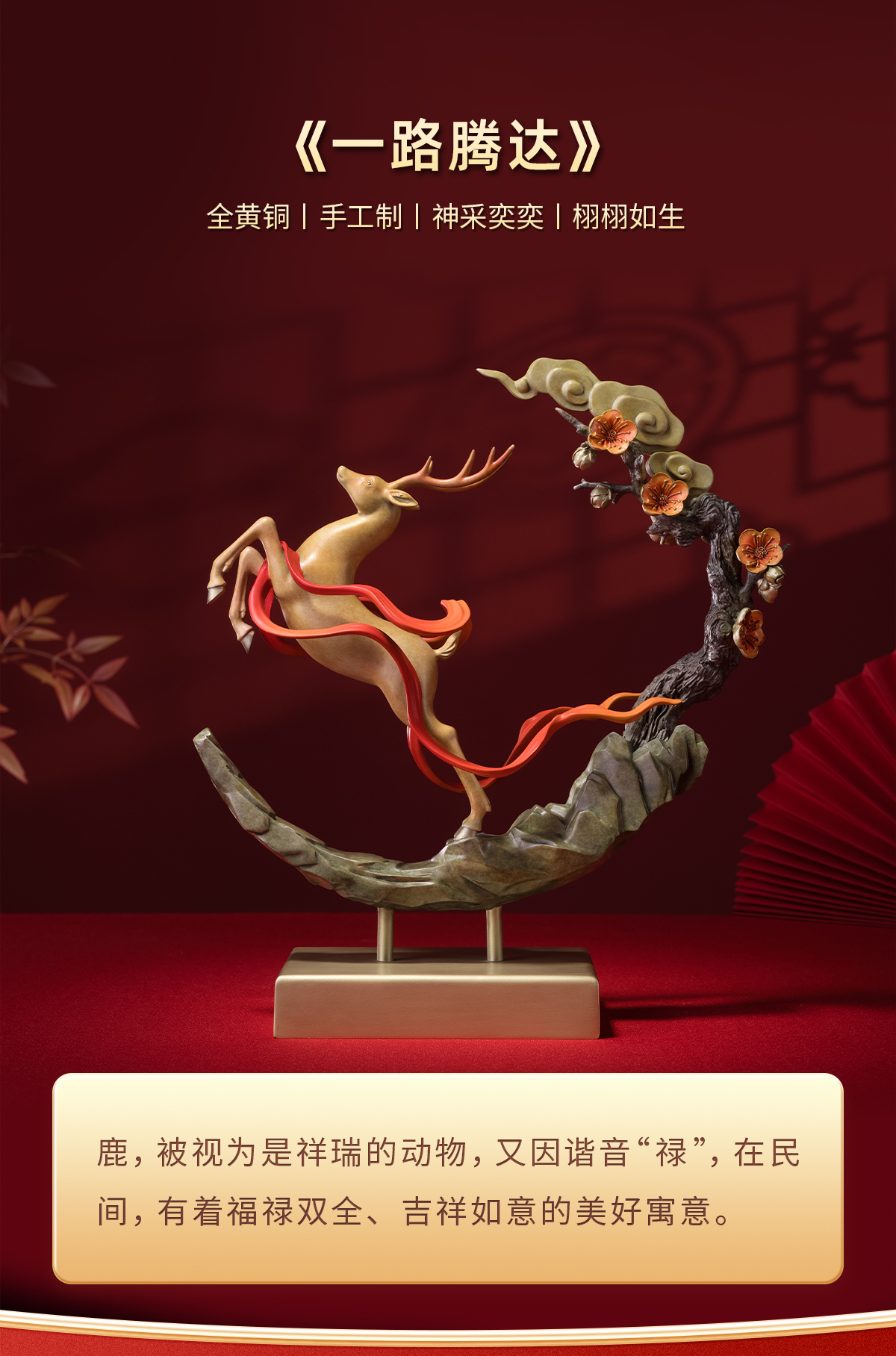 铜师傅《一路腾达》客厅桌面铜鹿摆件 家居装饰工艺品摆件