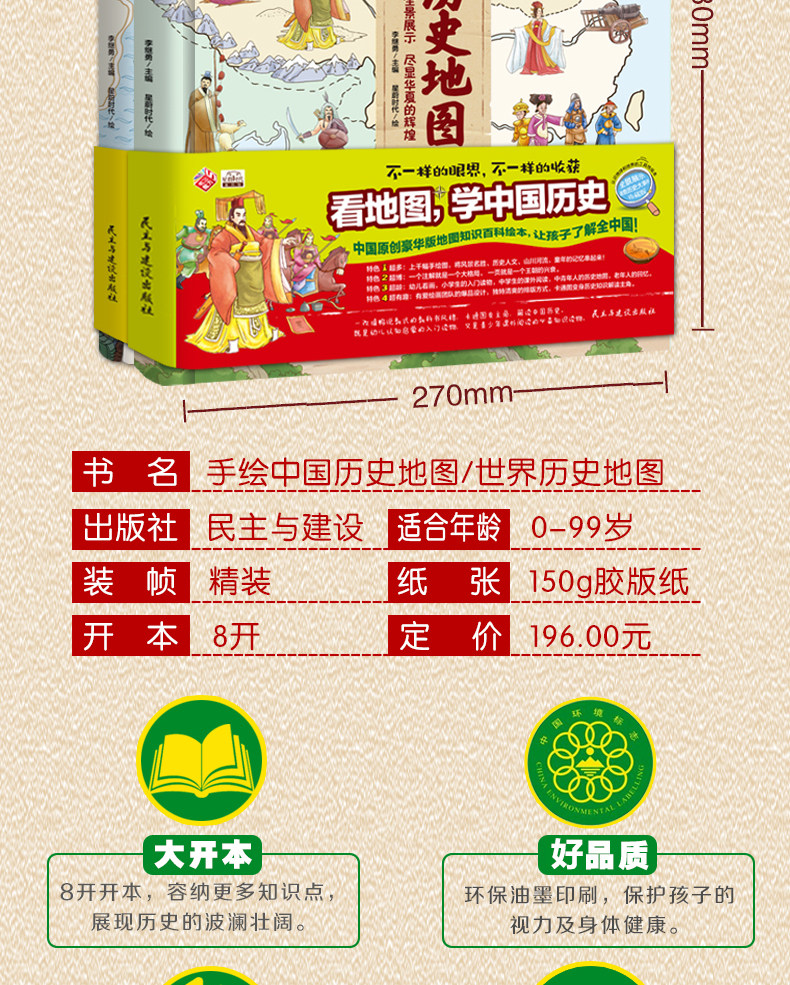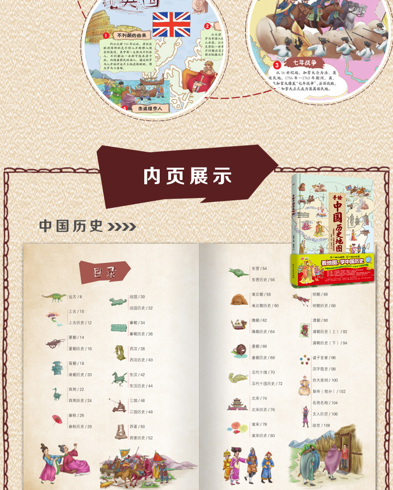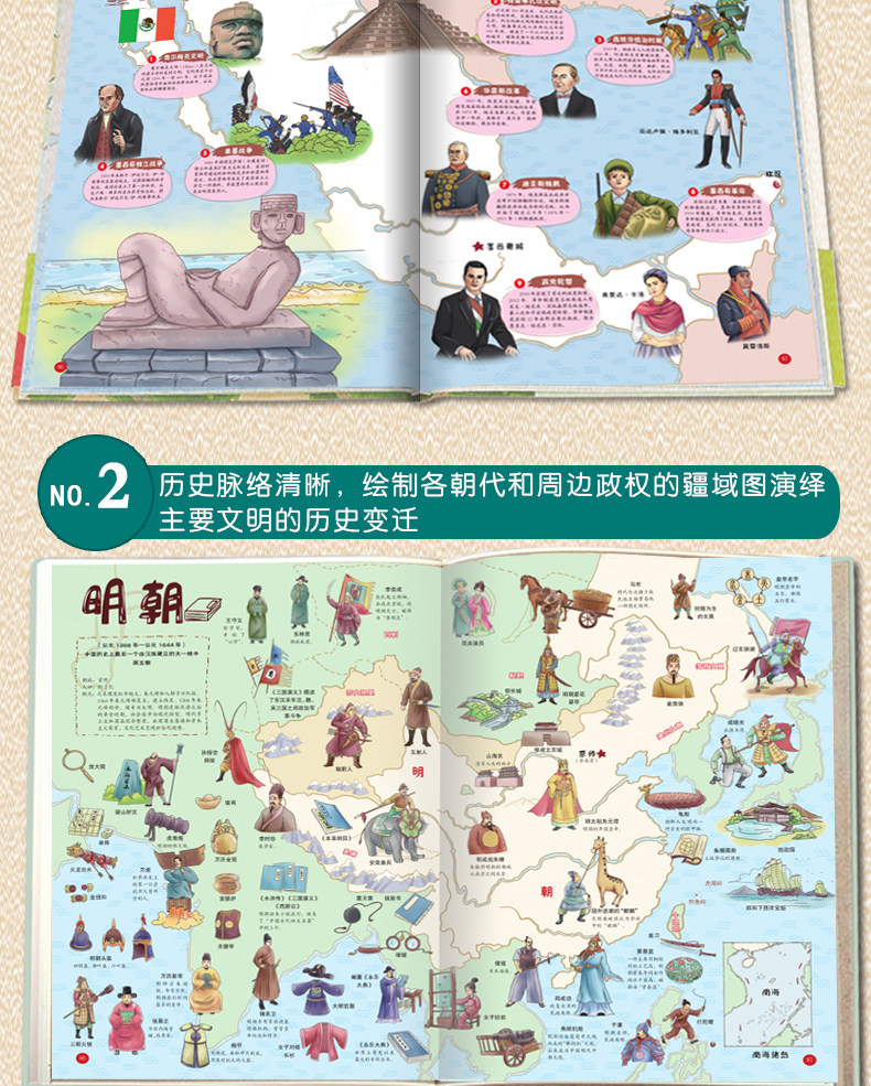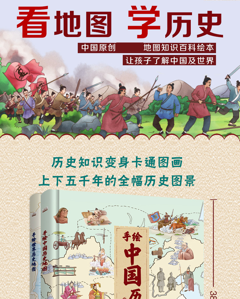 【秒杀价】世界中国历史地图绘本全套2册 儿童历史百科全书科普知识大全 开拓视野课外手绘版图画书 写给孩子的上下五千年大开本精装正版畅销