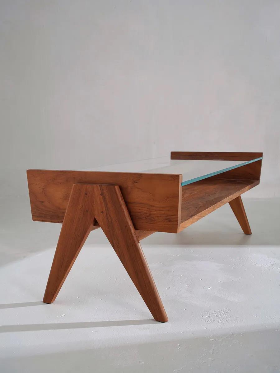 茶几简约耐看又实用,由大块柚木实木拼接而成