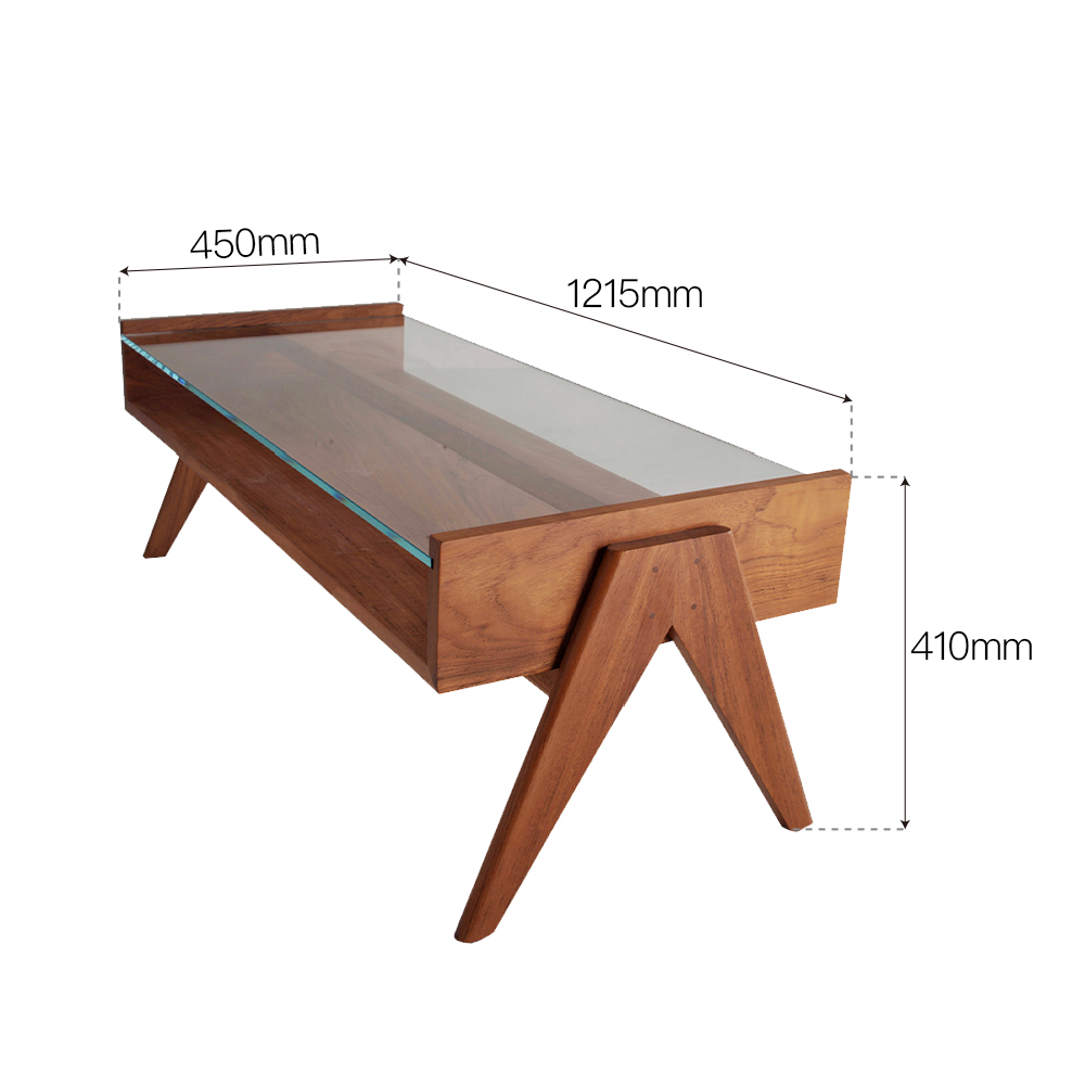 茶几使用了10mm的超白钢化玻璃,即使木材在气温变化中产生缩涨,玻璃也不会发生伤人的爆裂