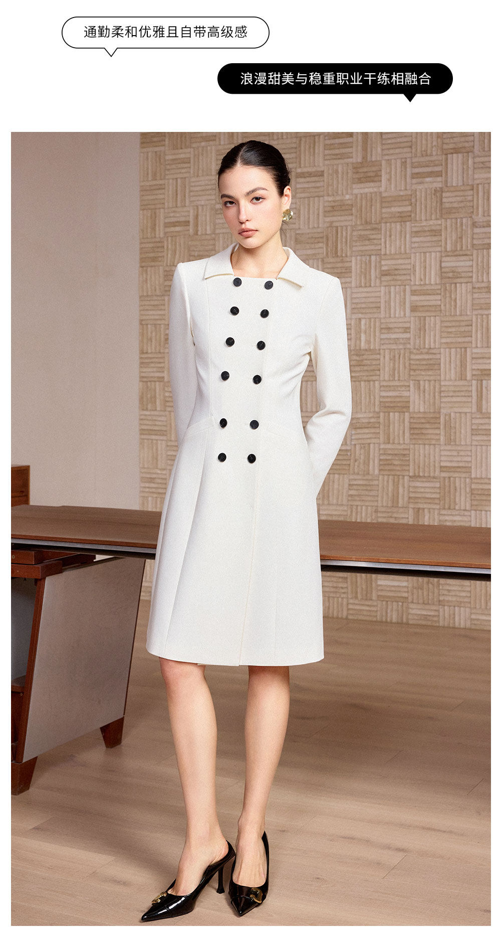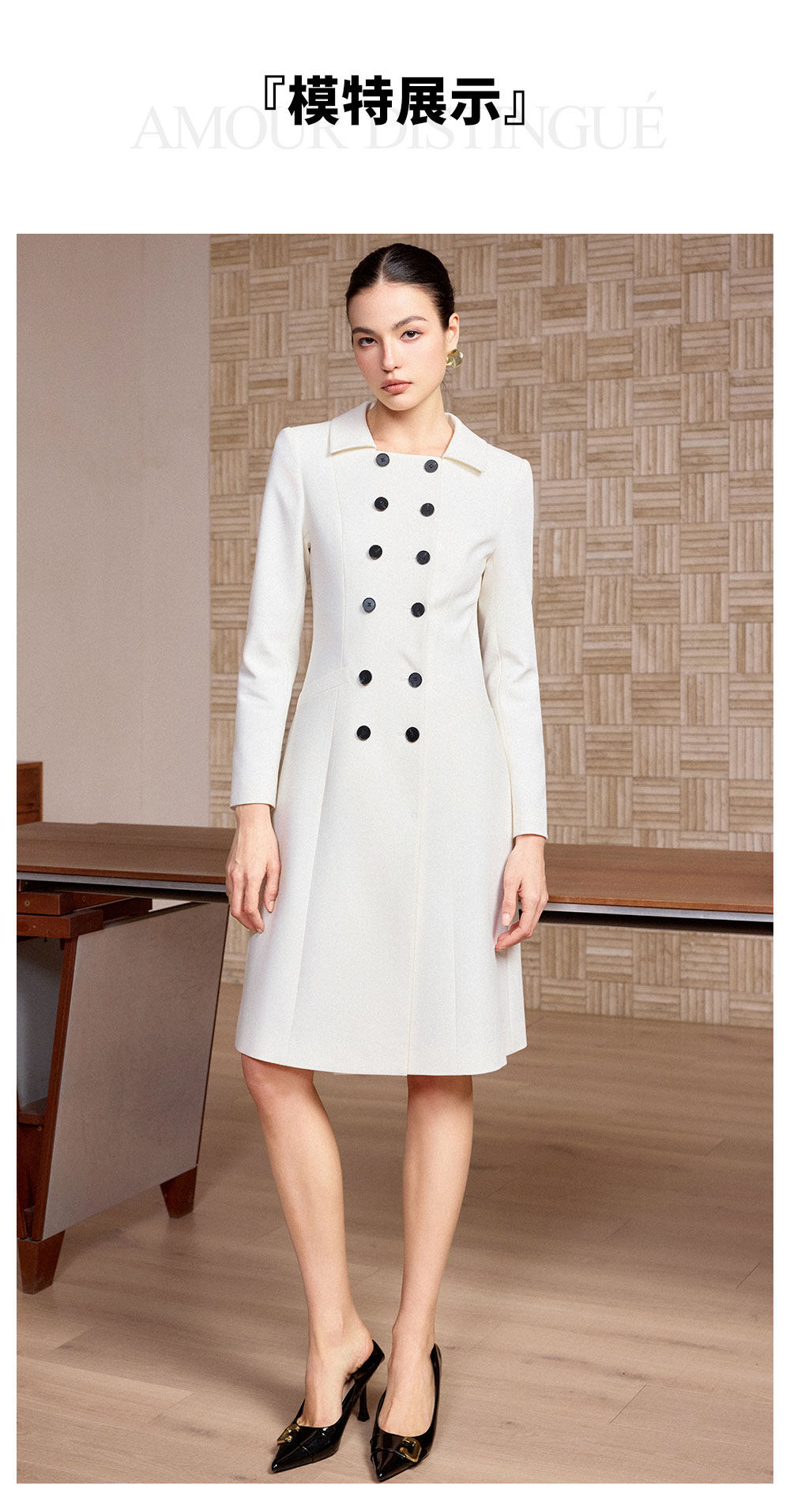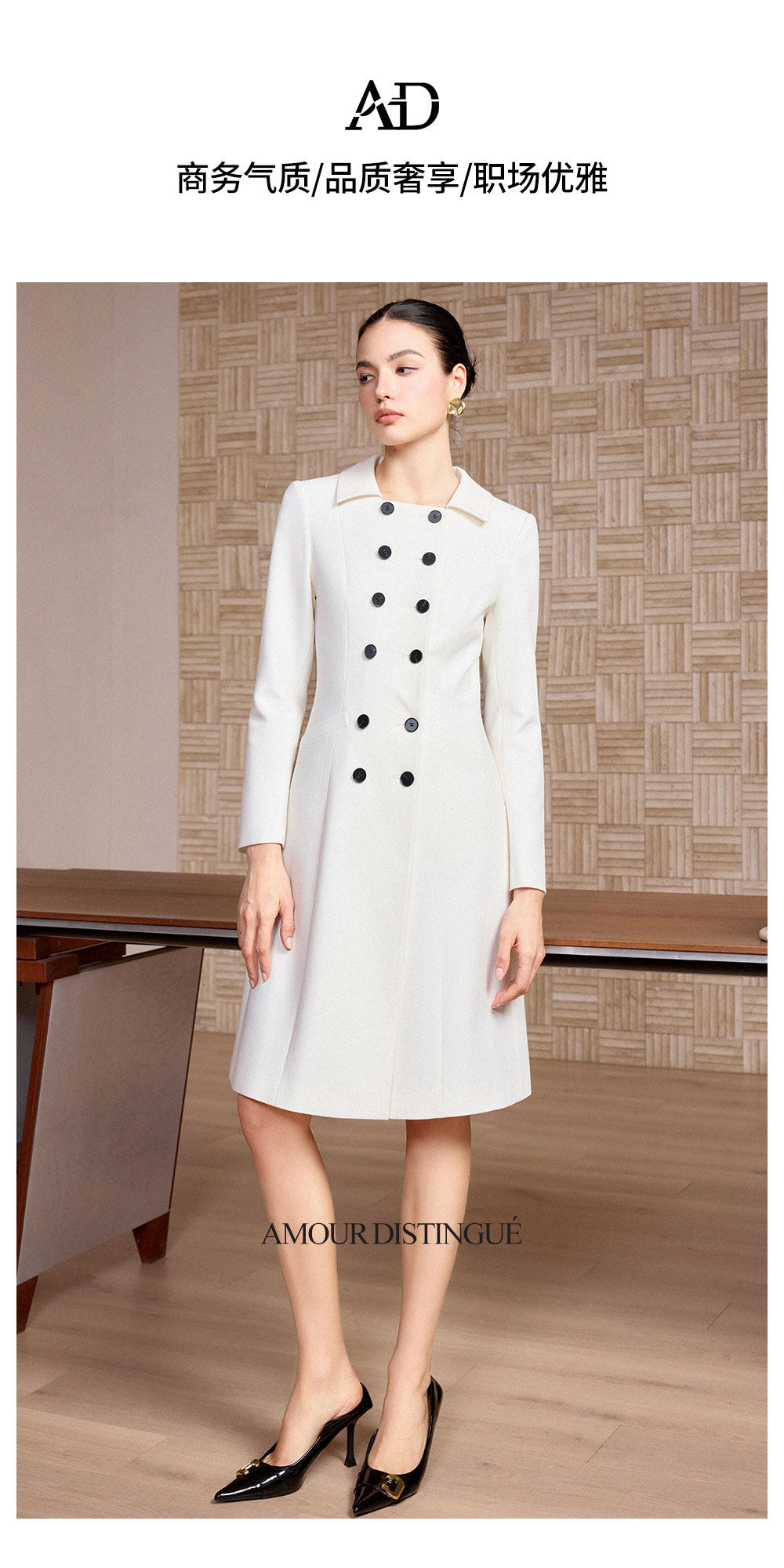 AD高端精致连衣裙女春季2026新款轻奢高级感双排扣职业装爆款裙子