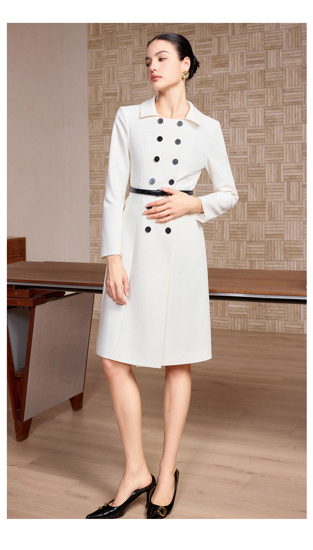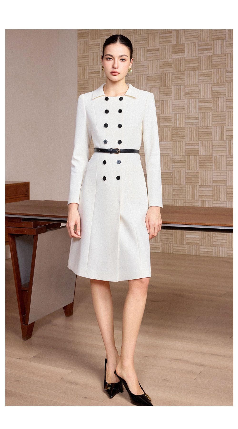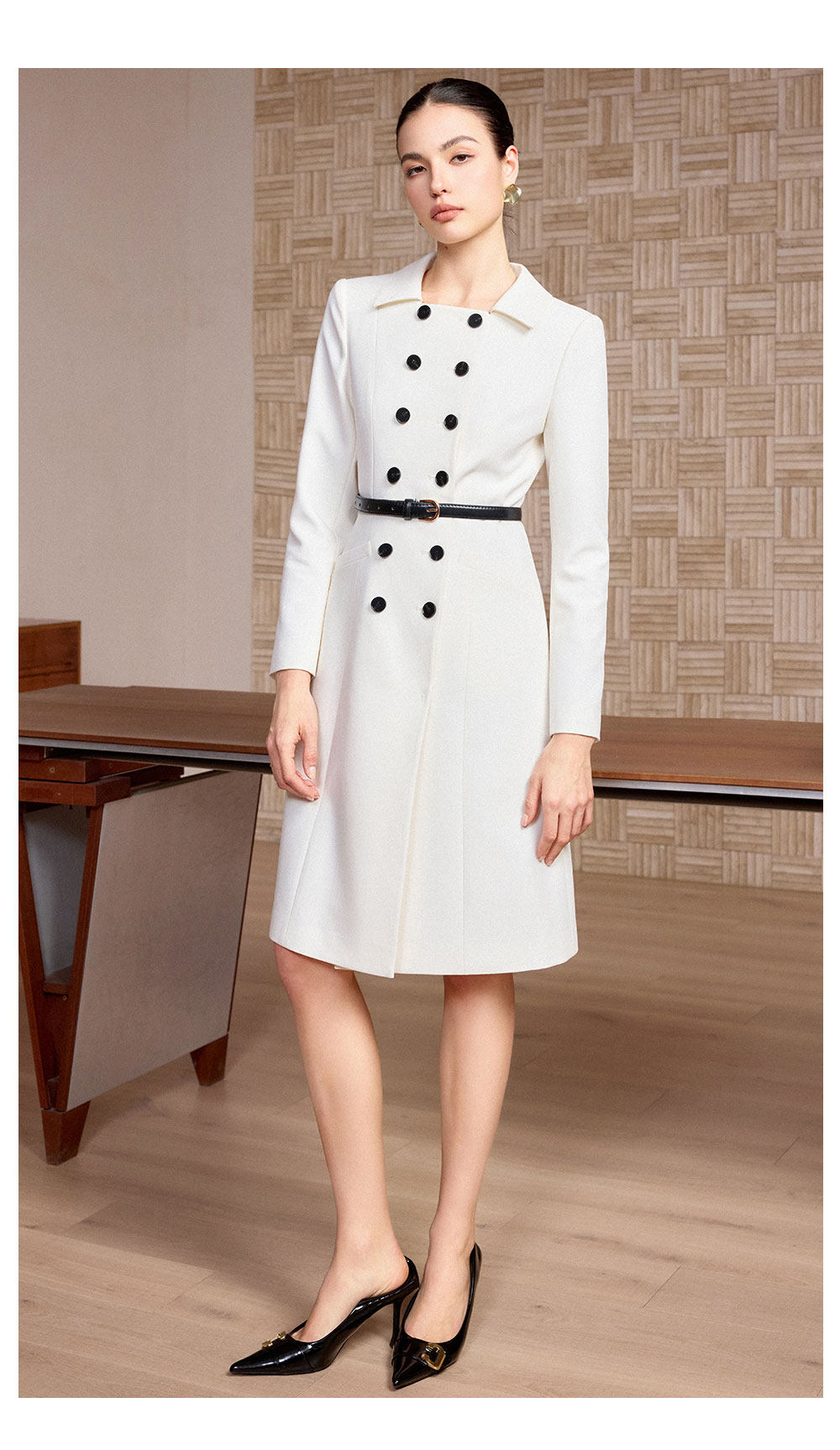 AD高端精致连衣裙女春季2026新款轻奢高级感双排扣职业装爆款裙子
