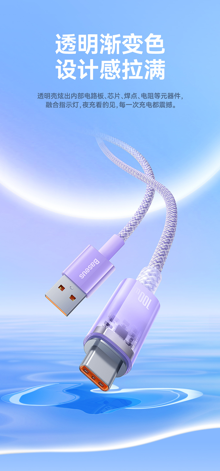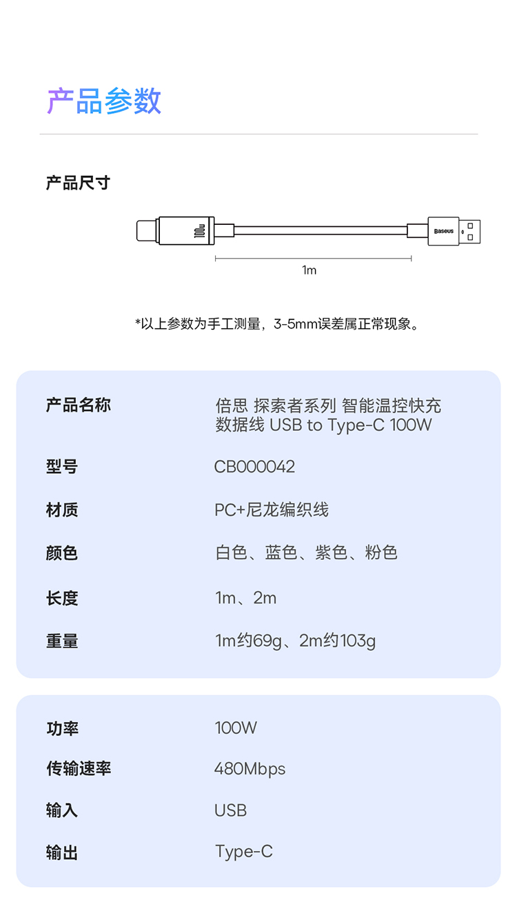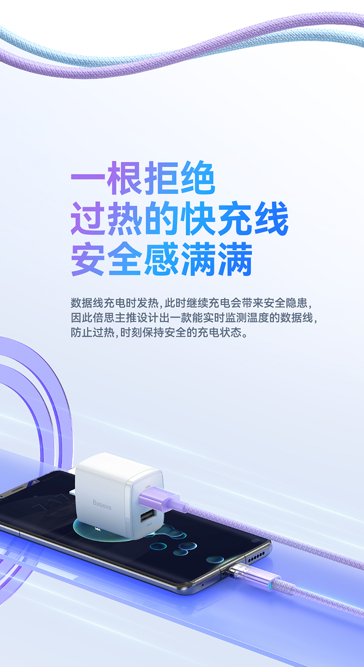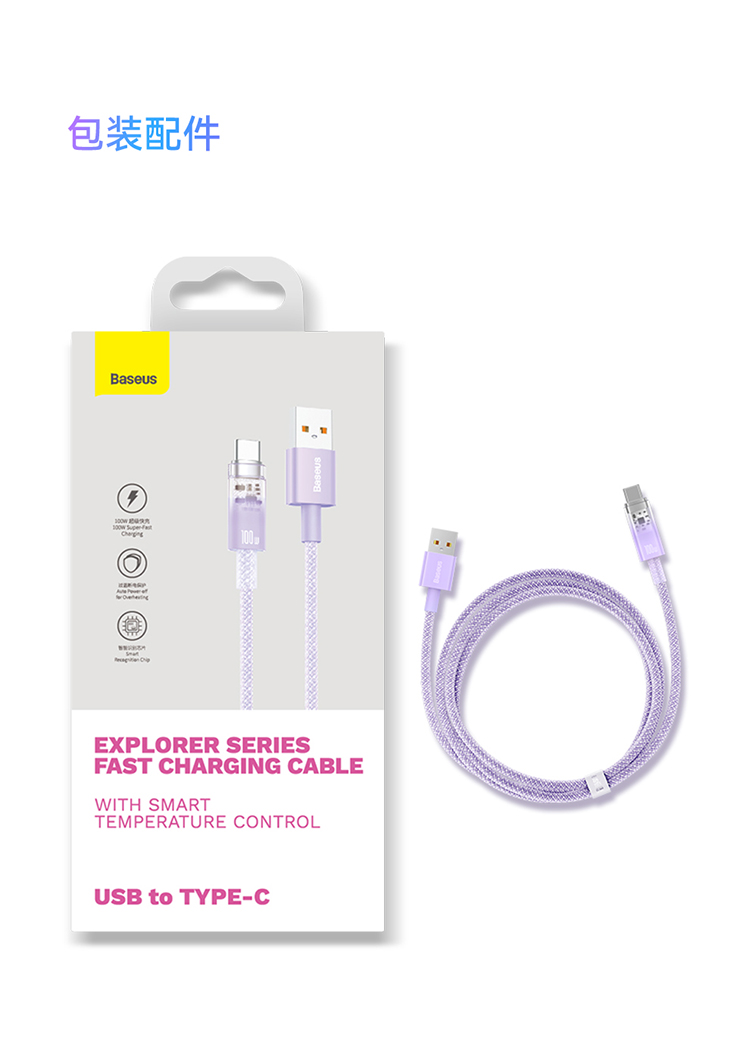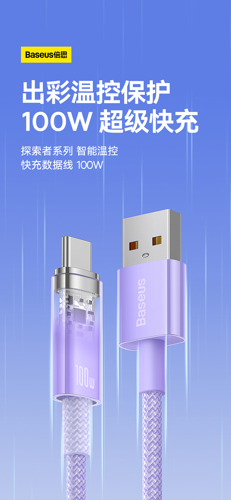 倍思 探索者系列 智能温控快充数据线Type-C 100W 安卓手机通用笔记本平板