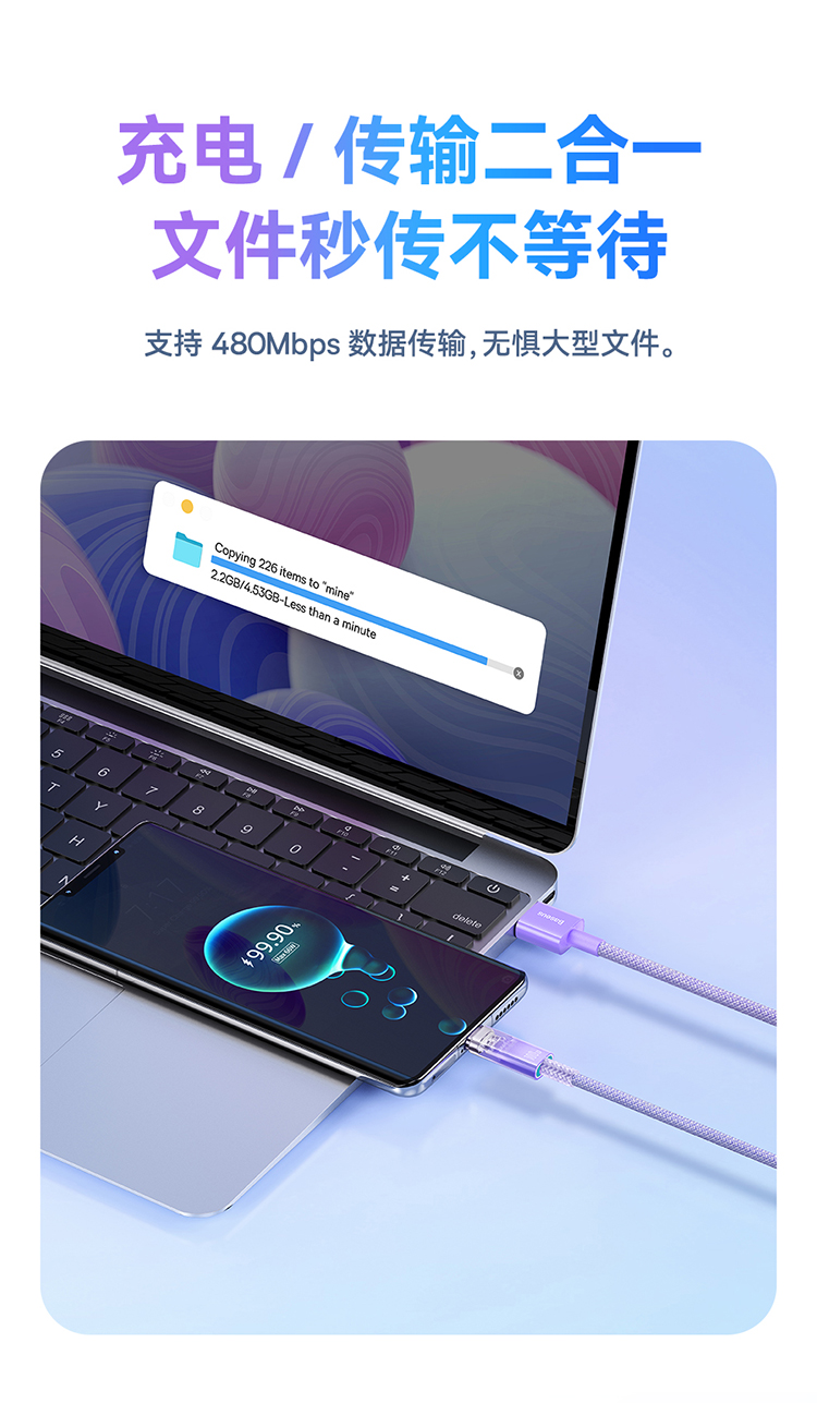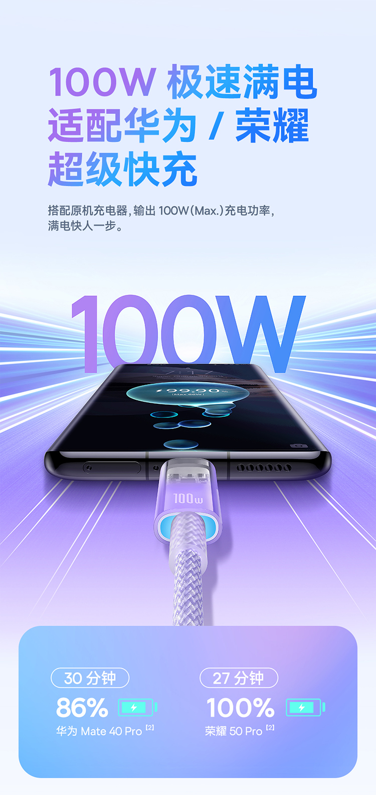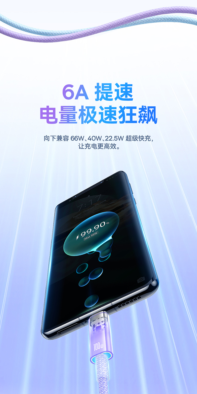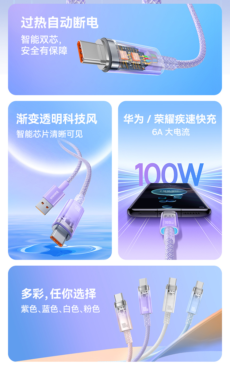 倍思 探索者系列 智能温控快充数据线Type-C 100W 安卓手机通用笔记本平板