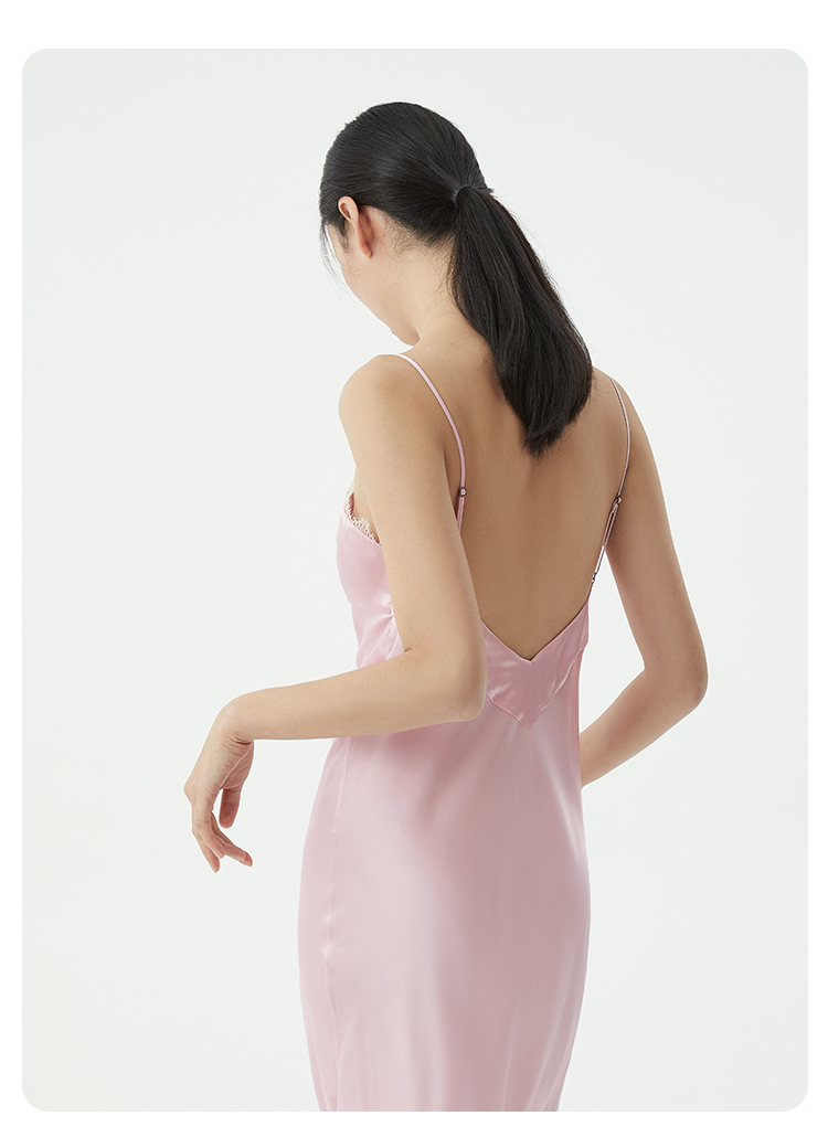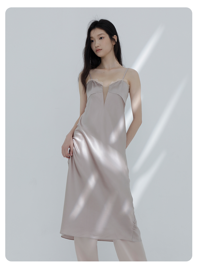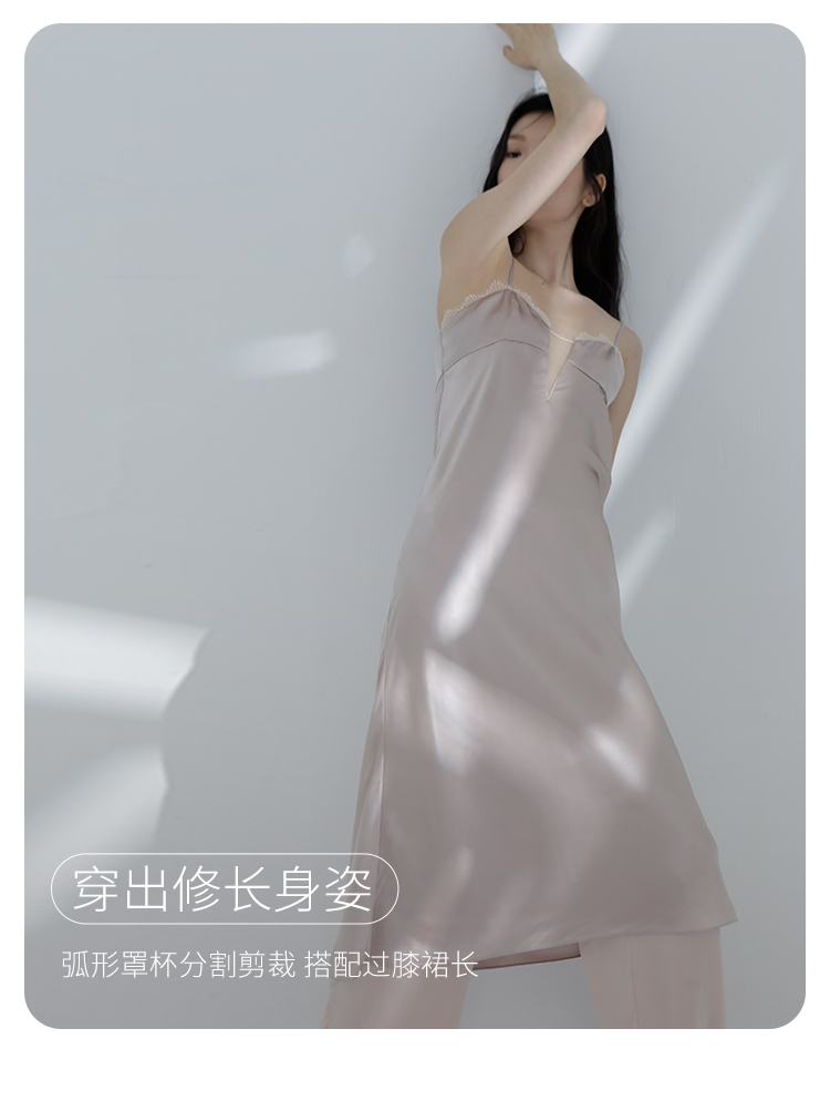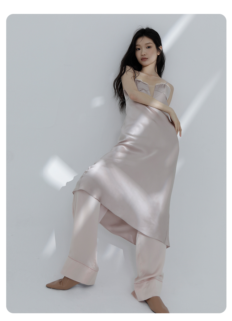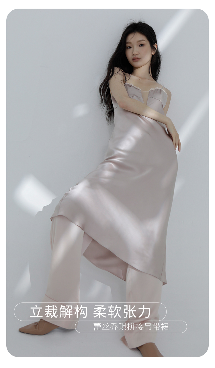 璀璨】桑罗重磅真丝吊带睡裙长乔其拼接桑蚕丝礼服裙派对睡衣03463252