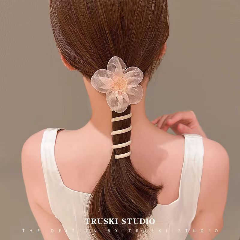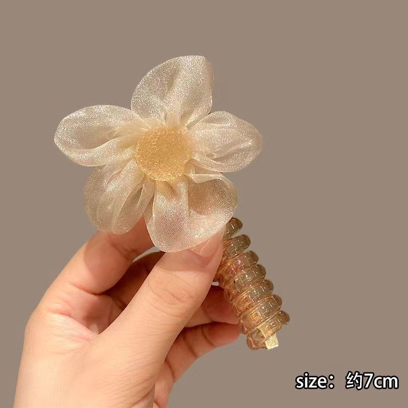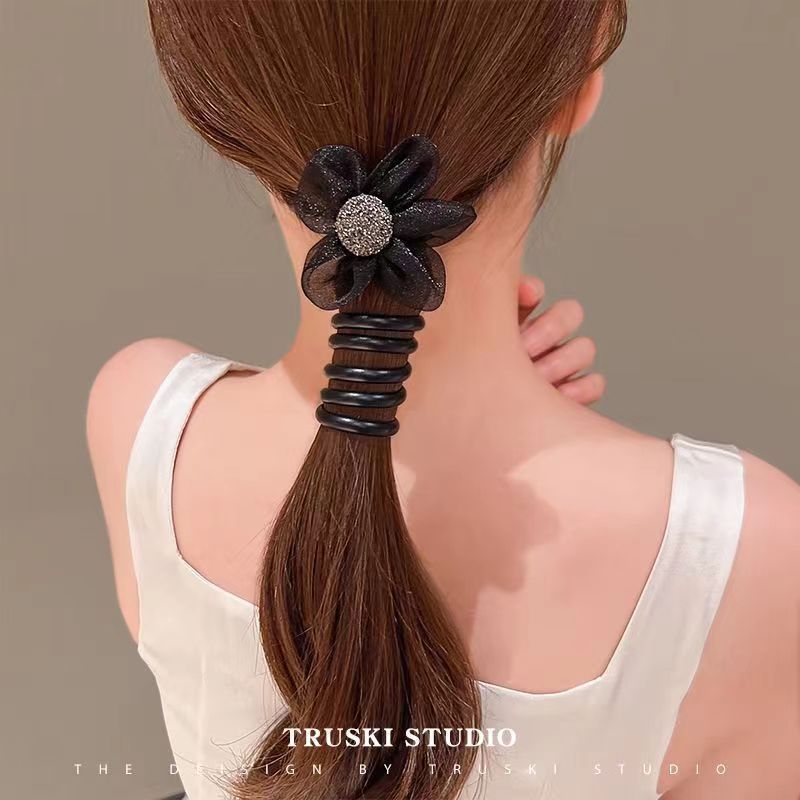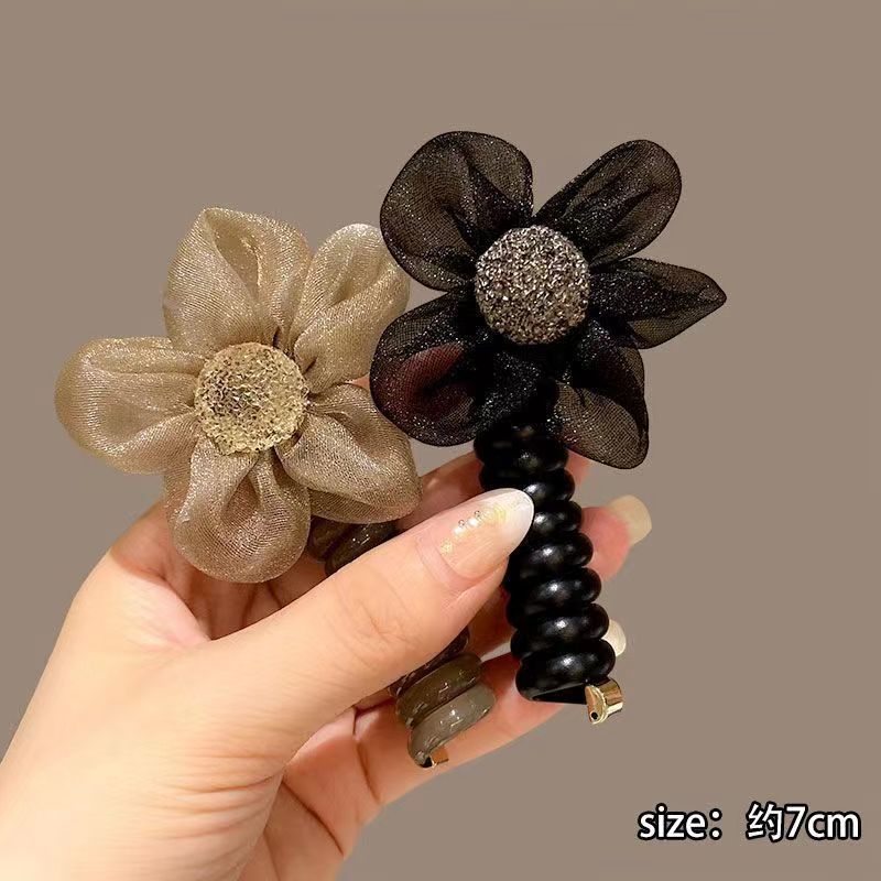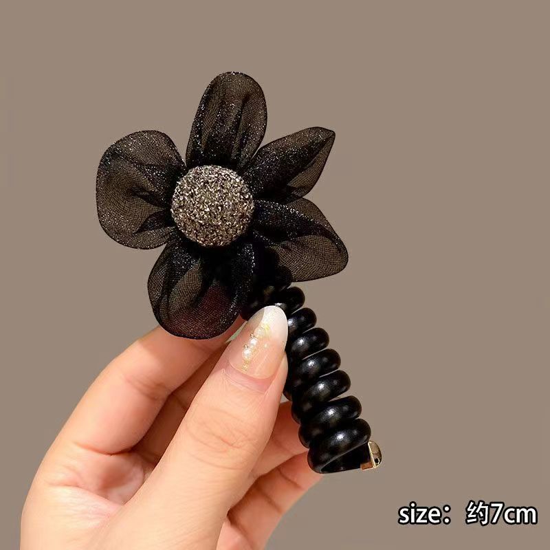 网纱水钻花朵电话线发圈女高弹力耐用头绳简约扎头发绳橡皮筋头饰